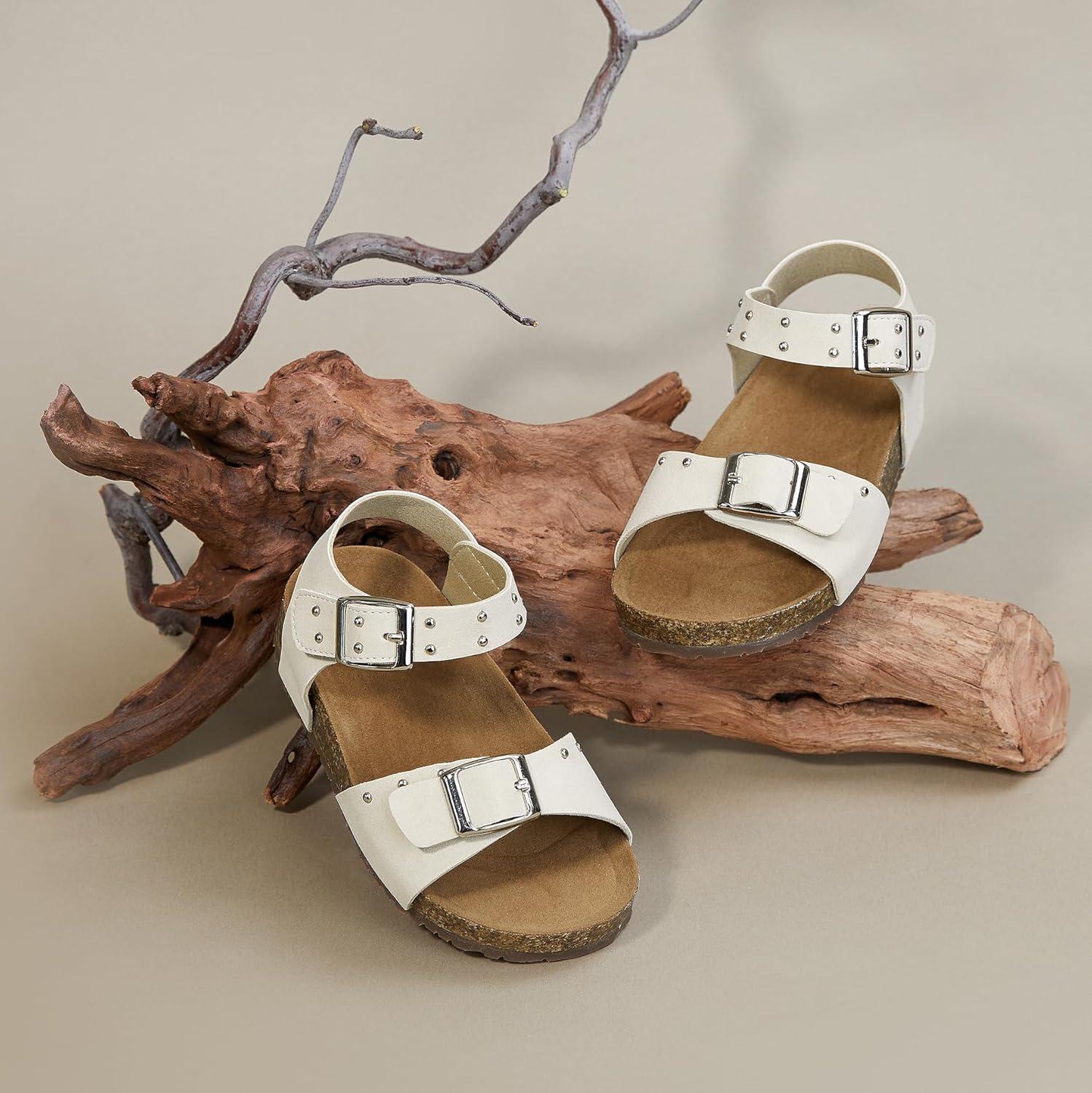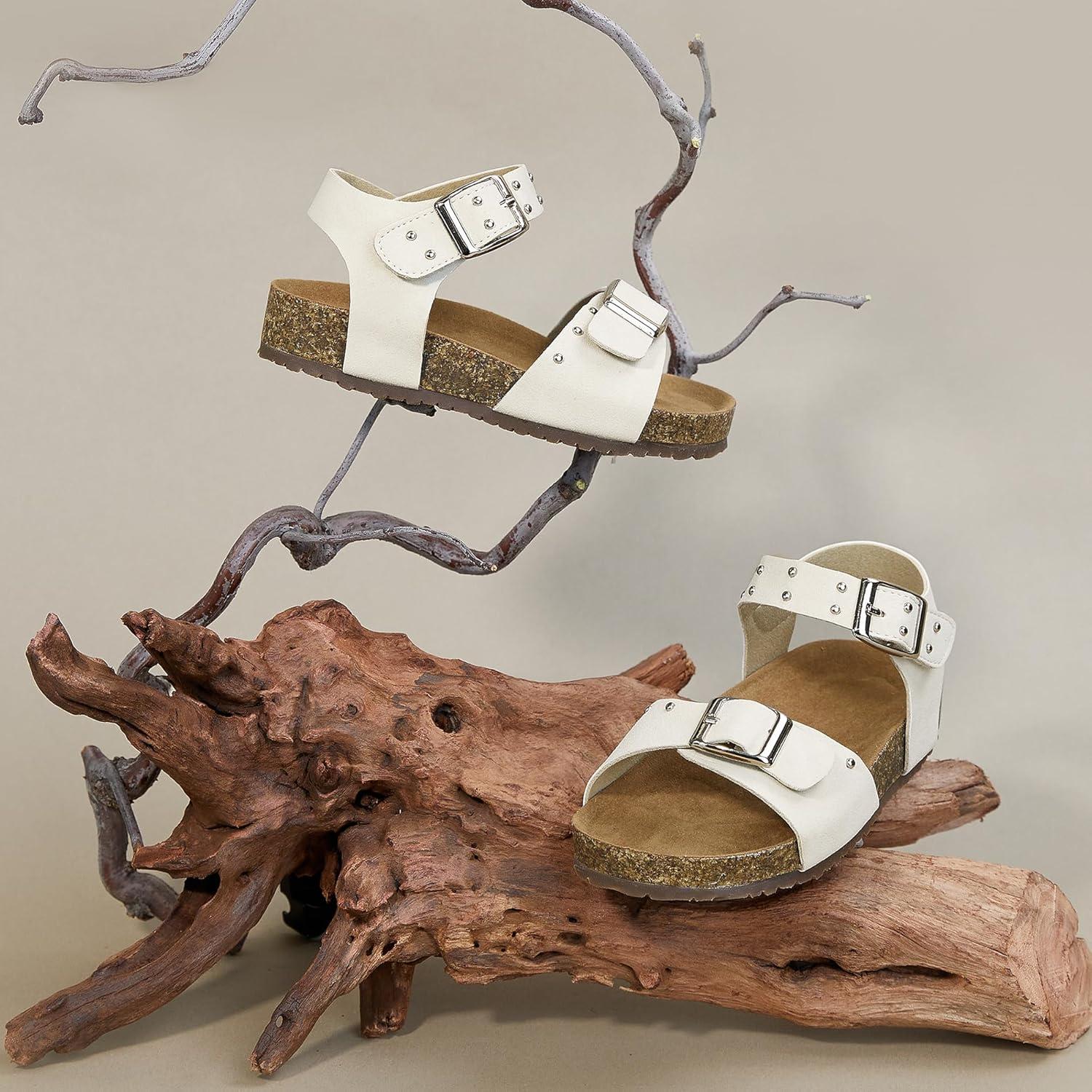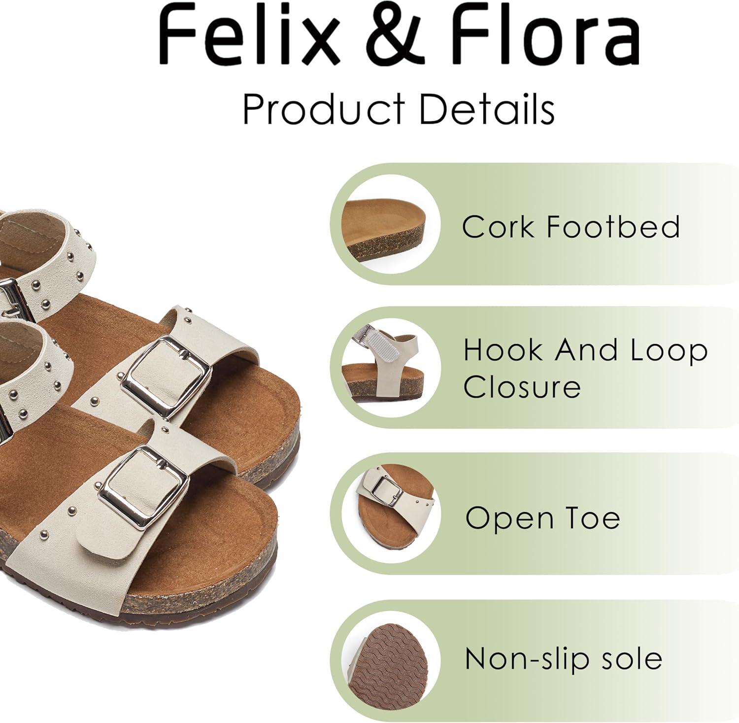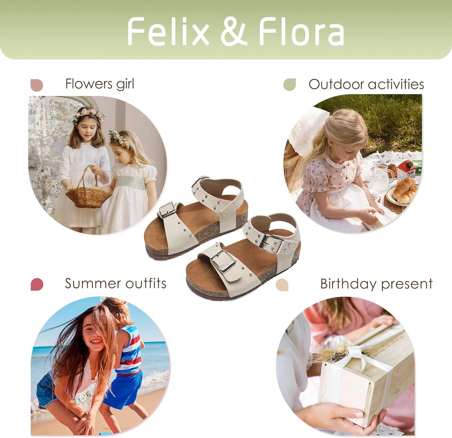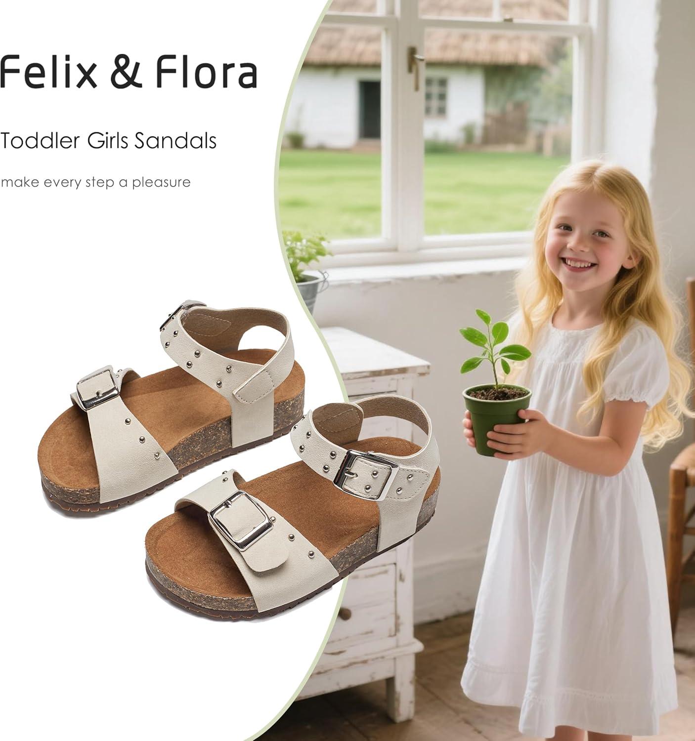 Felix & Flora Toddler Girls Sandals Flower Girl Cork Footbed Open Toe Comfort Princess Summer Flat Shoes(Bc329-white)