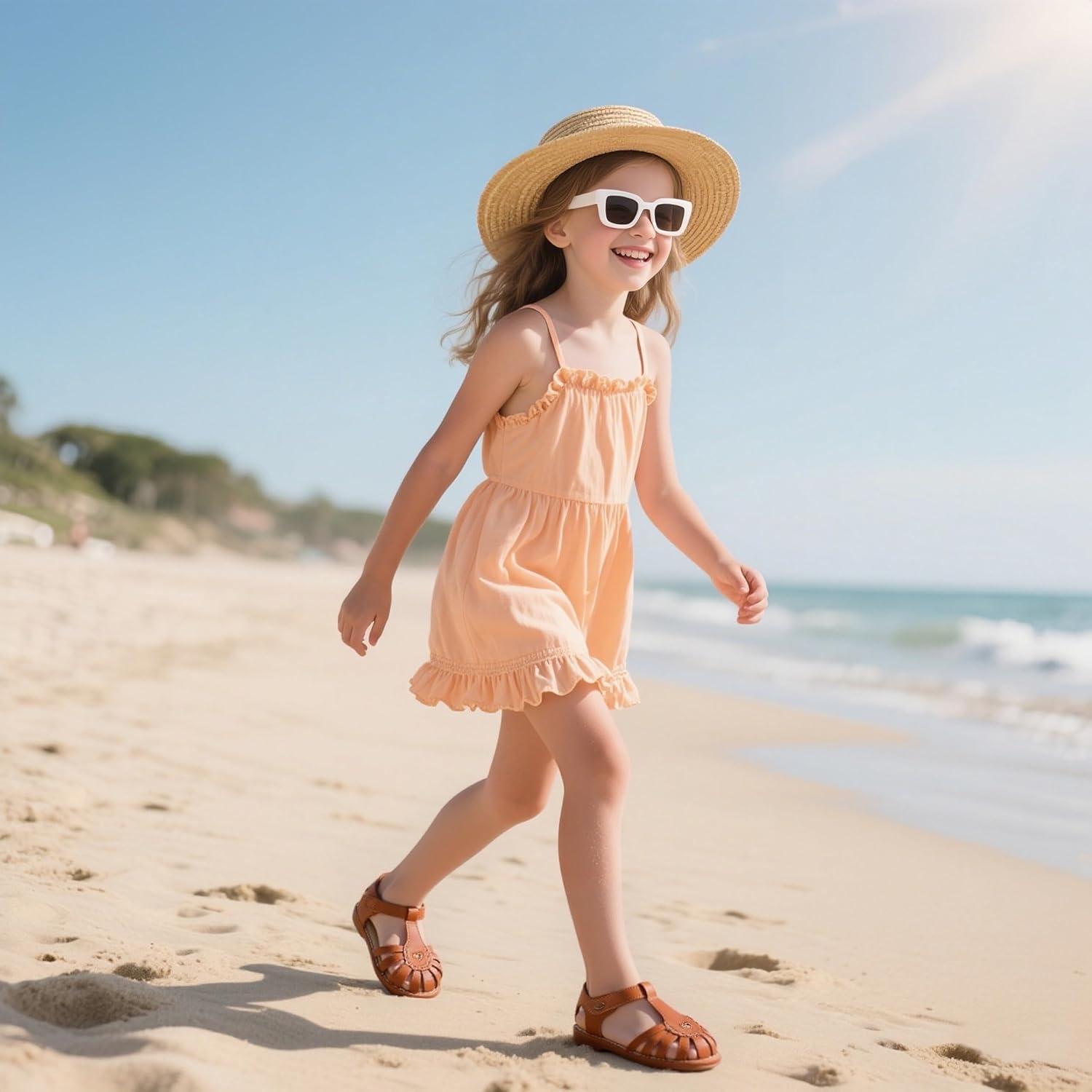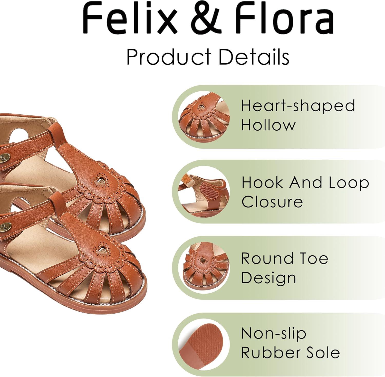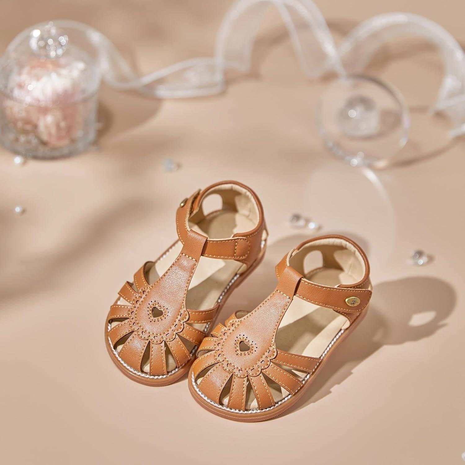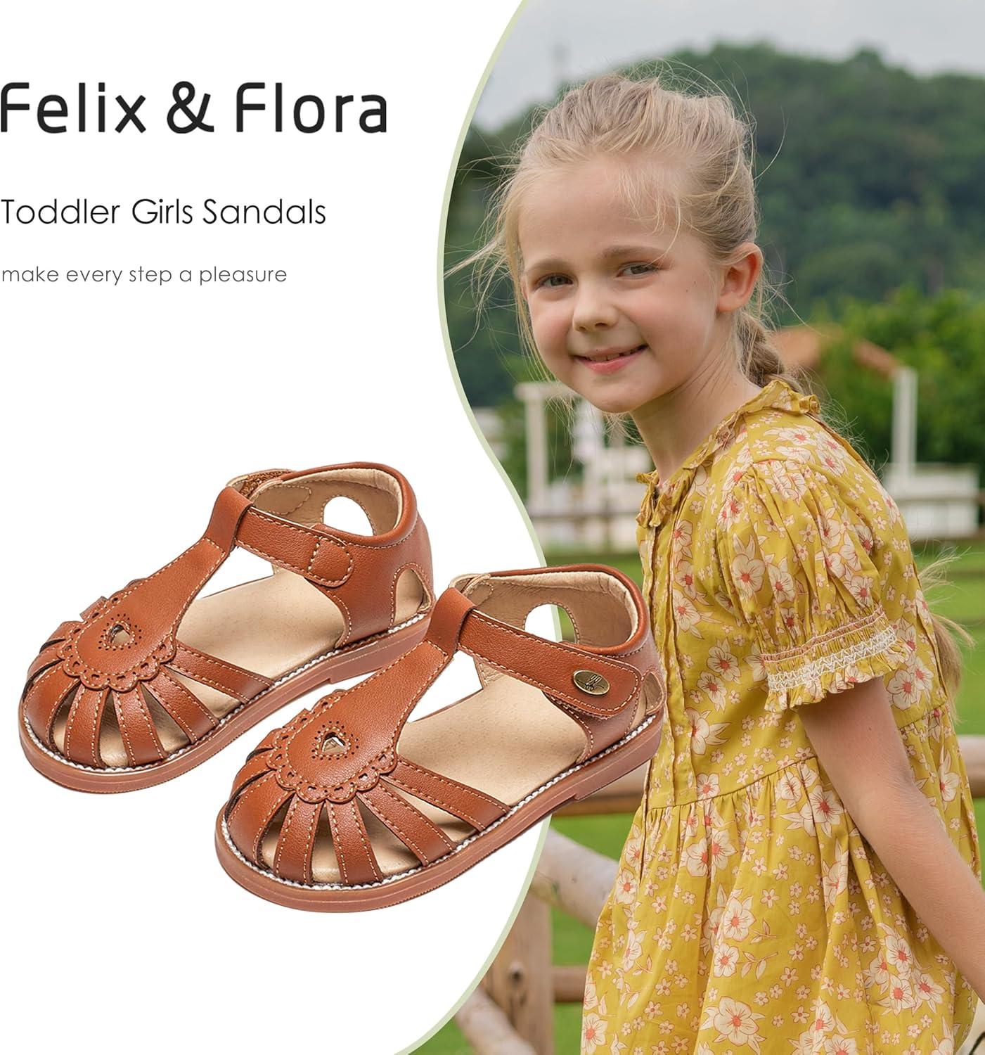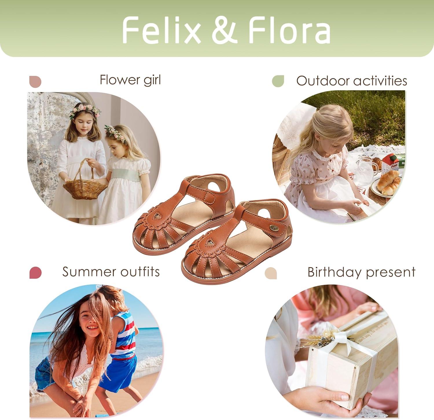 Felix & Flora Toddler Girls Sandals Flower Girl Shoes Soft Rubber Princess Summer Flat Shoes(Bc312-brown)