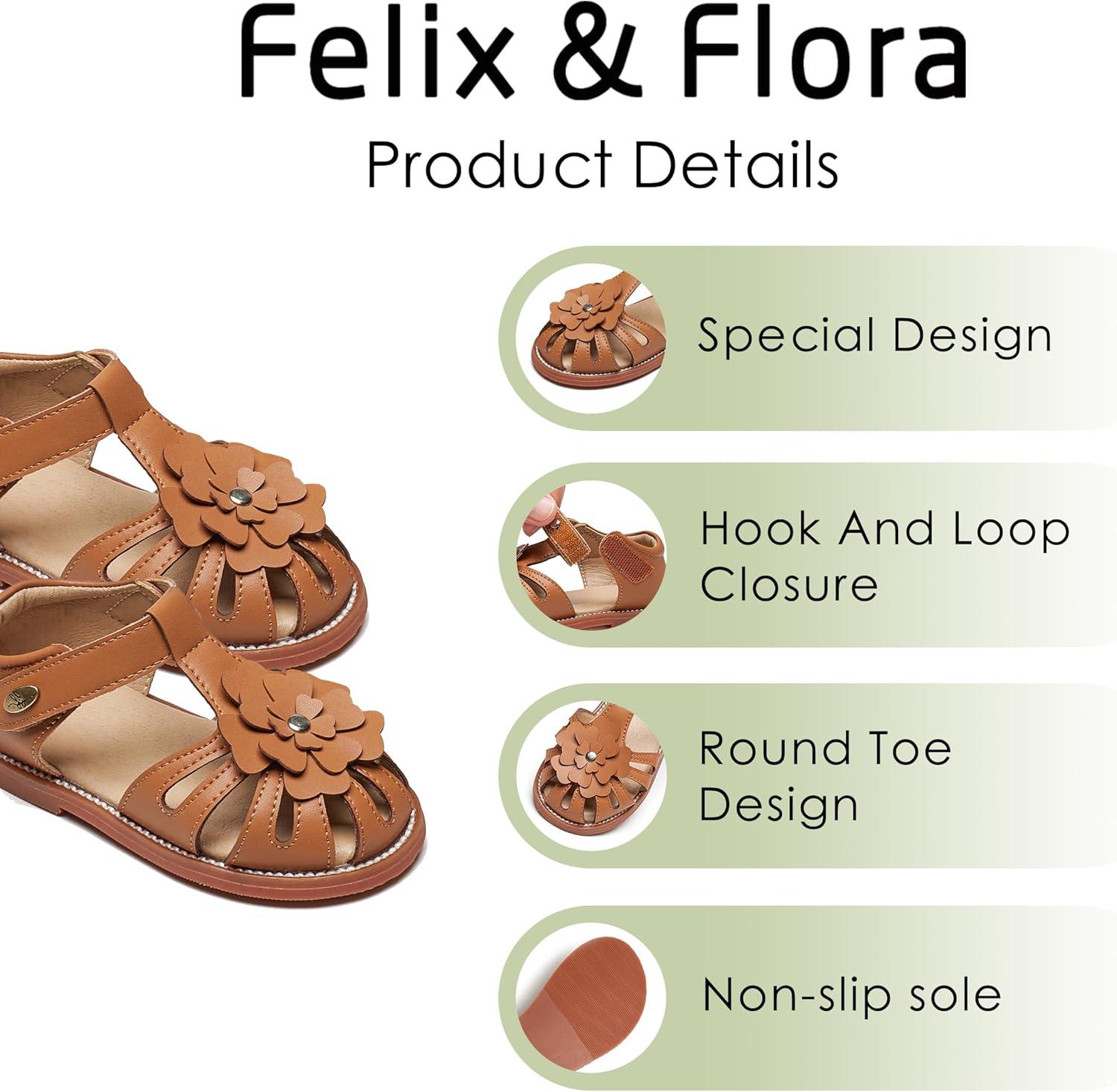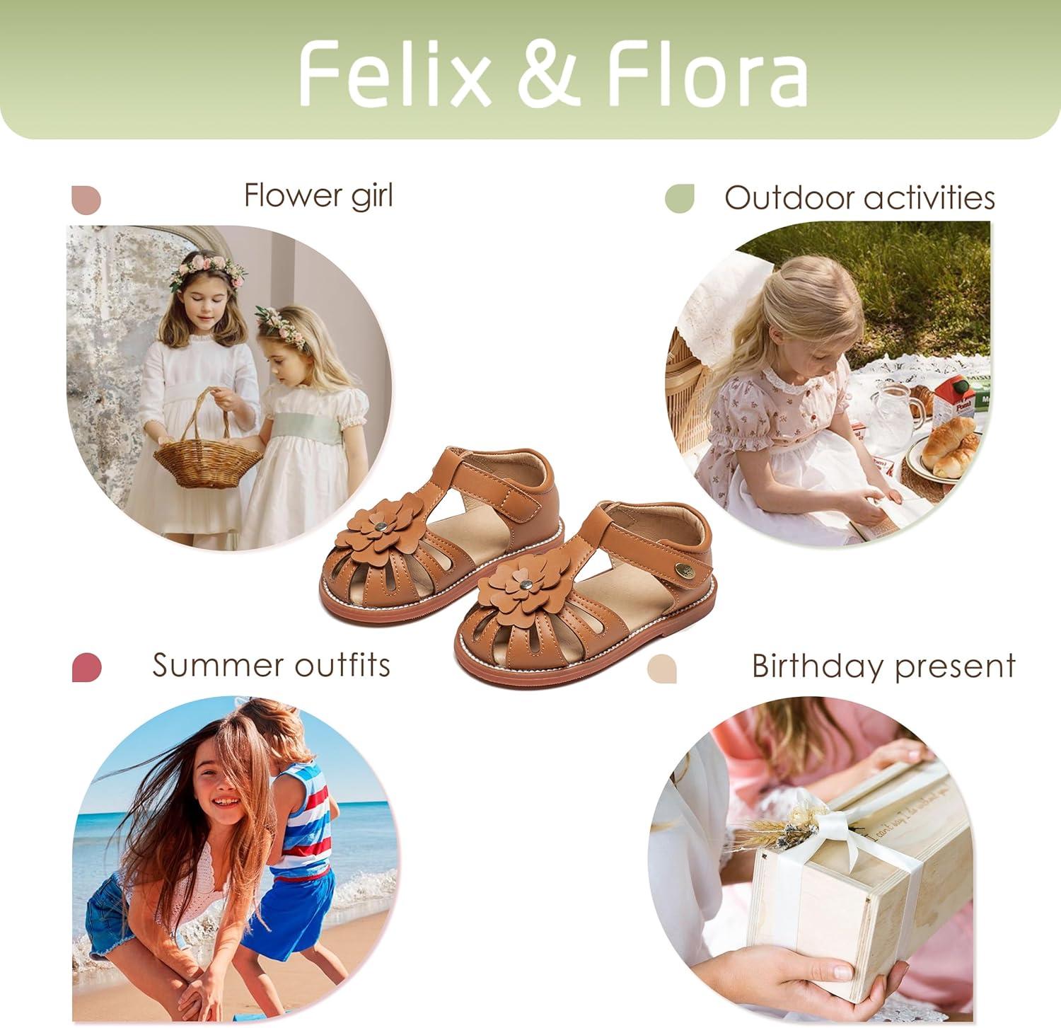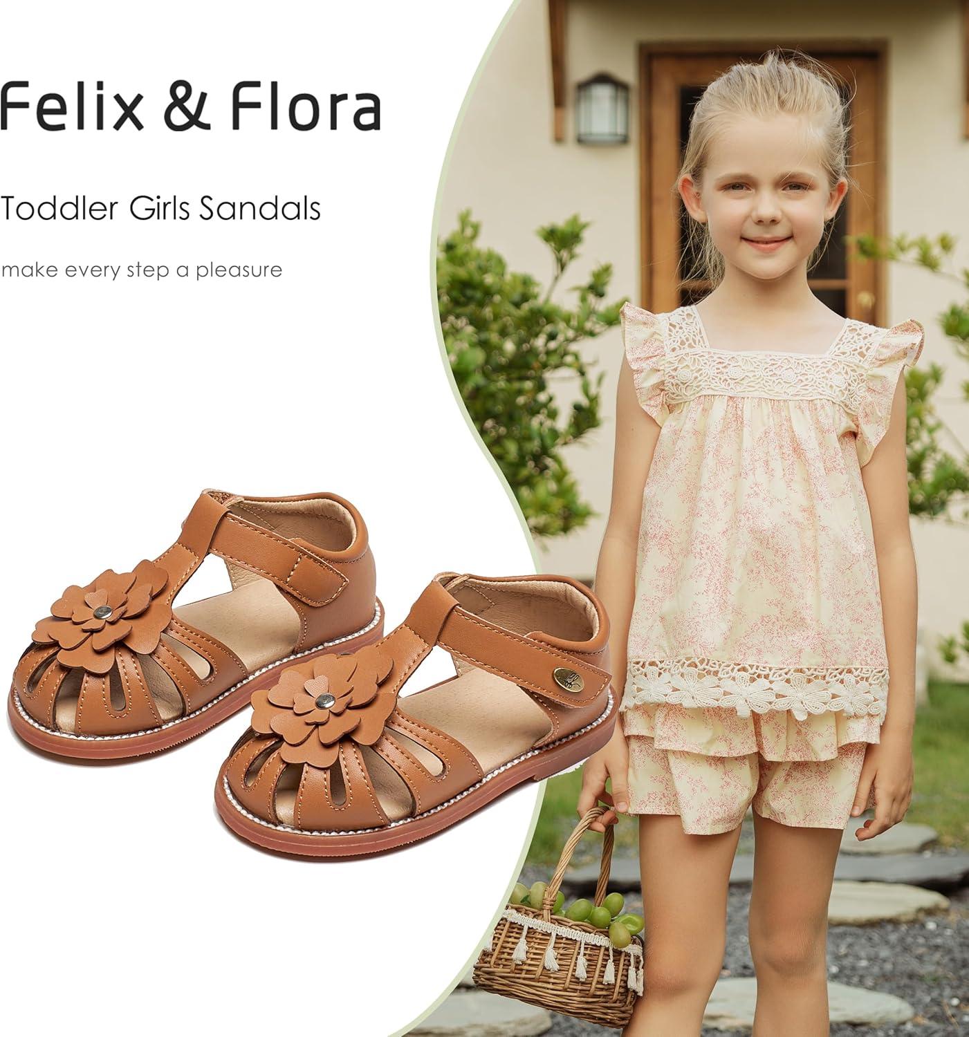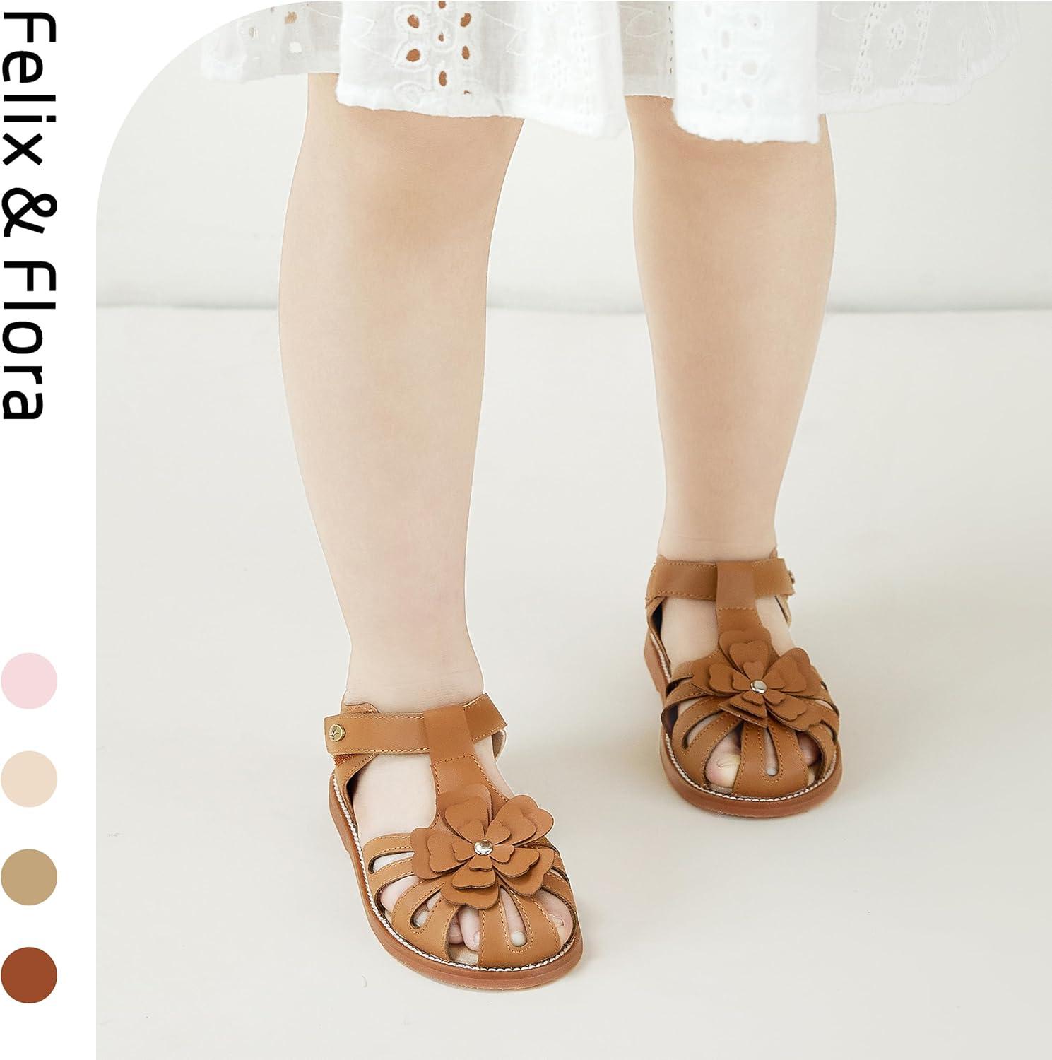 Felix & Flora Toddler Girls Sandals Flower Girl Shoes Soft Rubber Princess Summer Flat Shoes(Bc314-brown)
