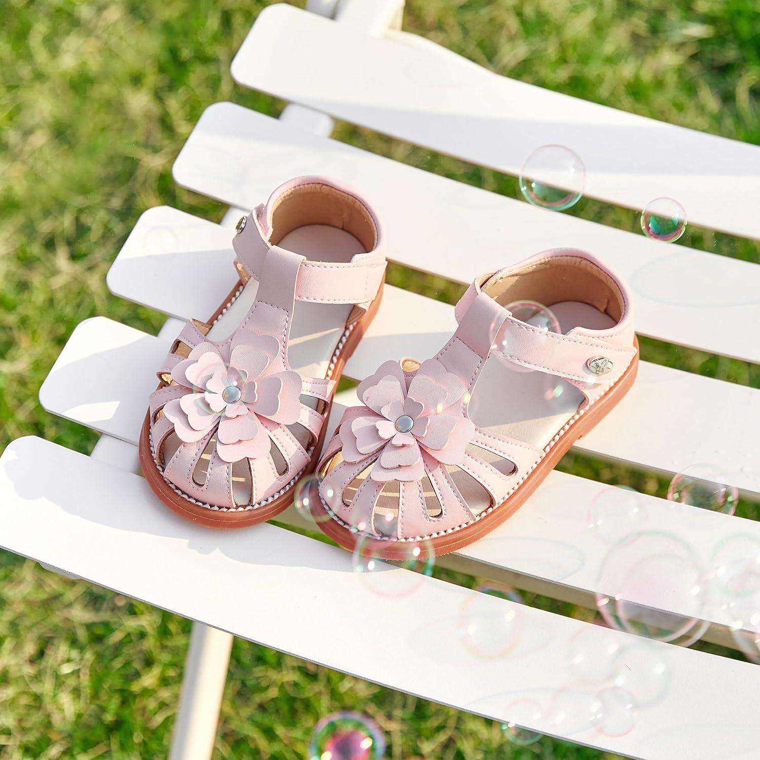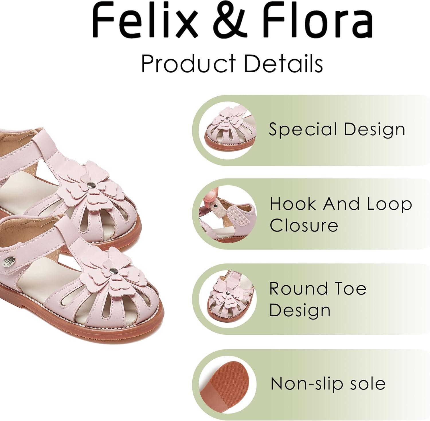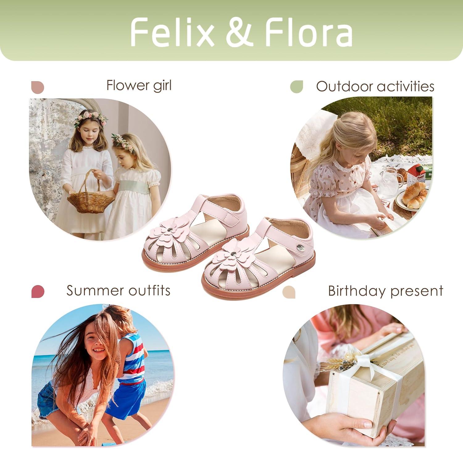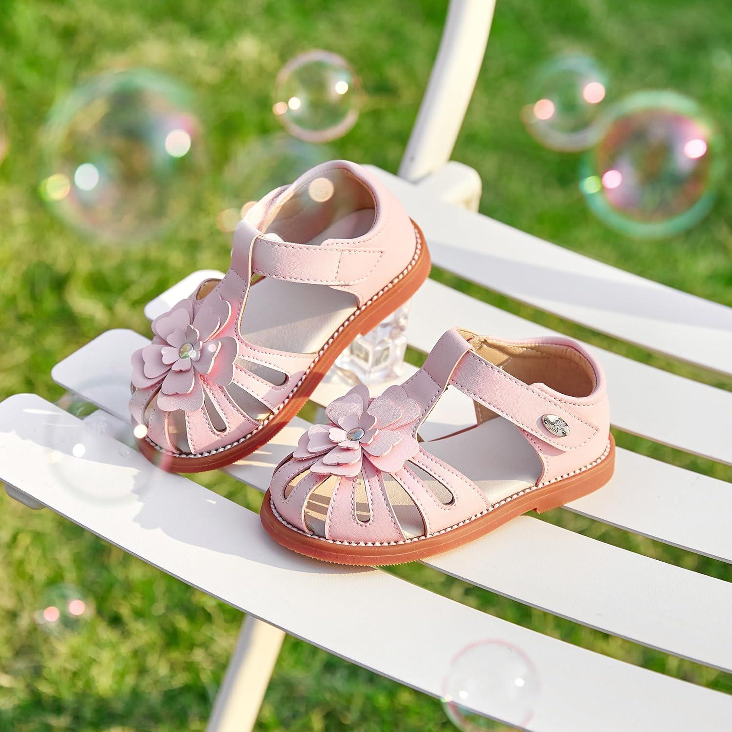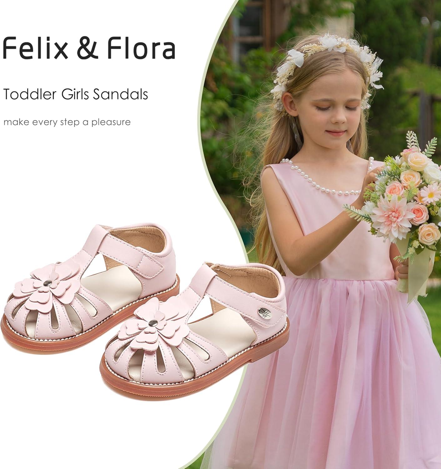 Felix & Flora Toddler Girls Sandals Flower Girl Shoes Soft Rubber Princess Summer Flat Shoes(Bc314-pink)