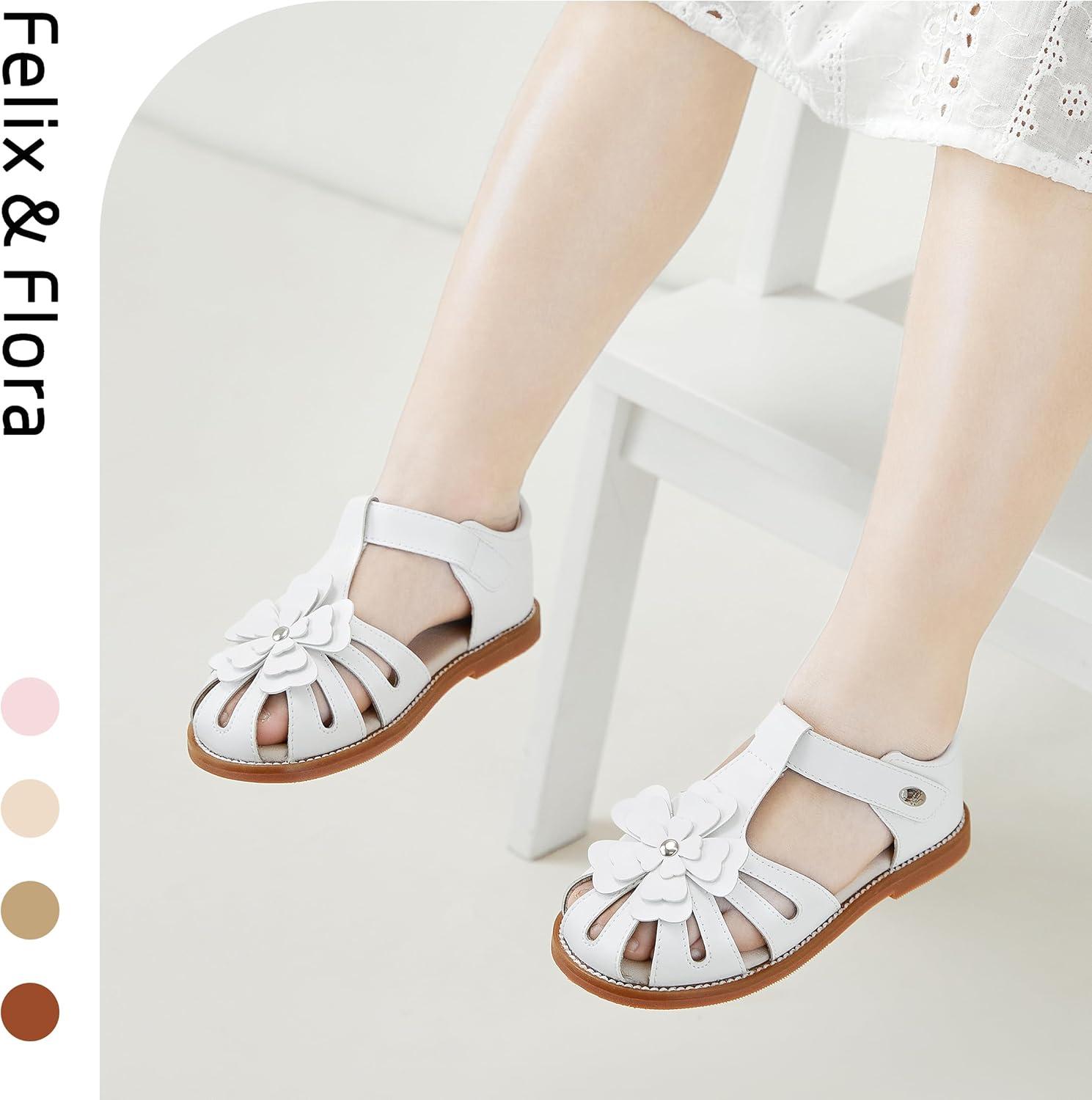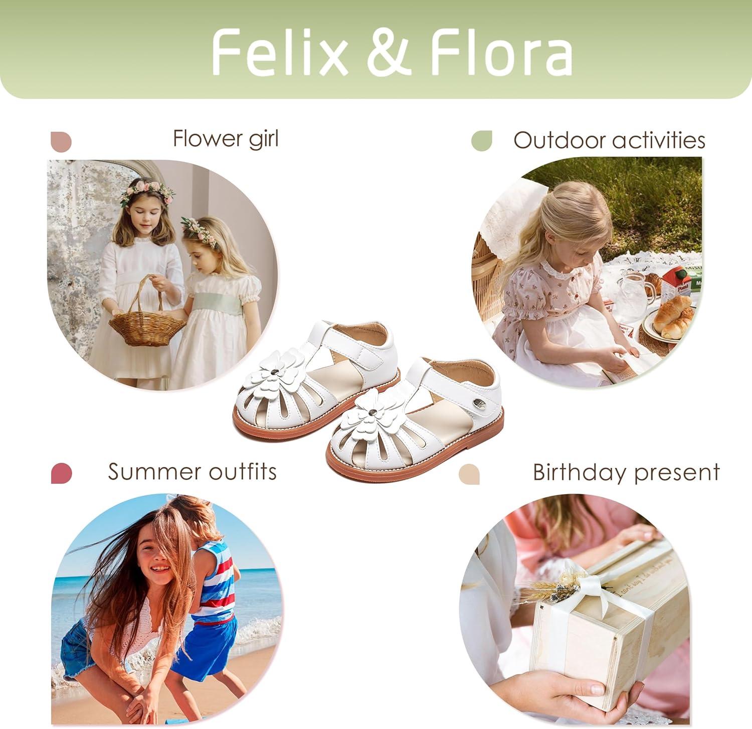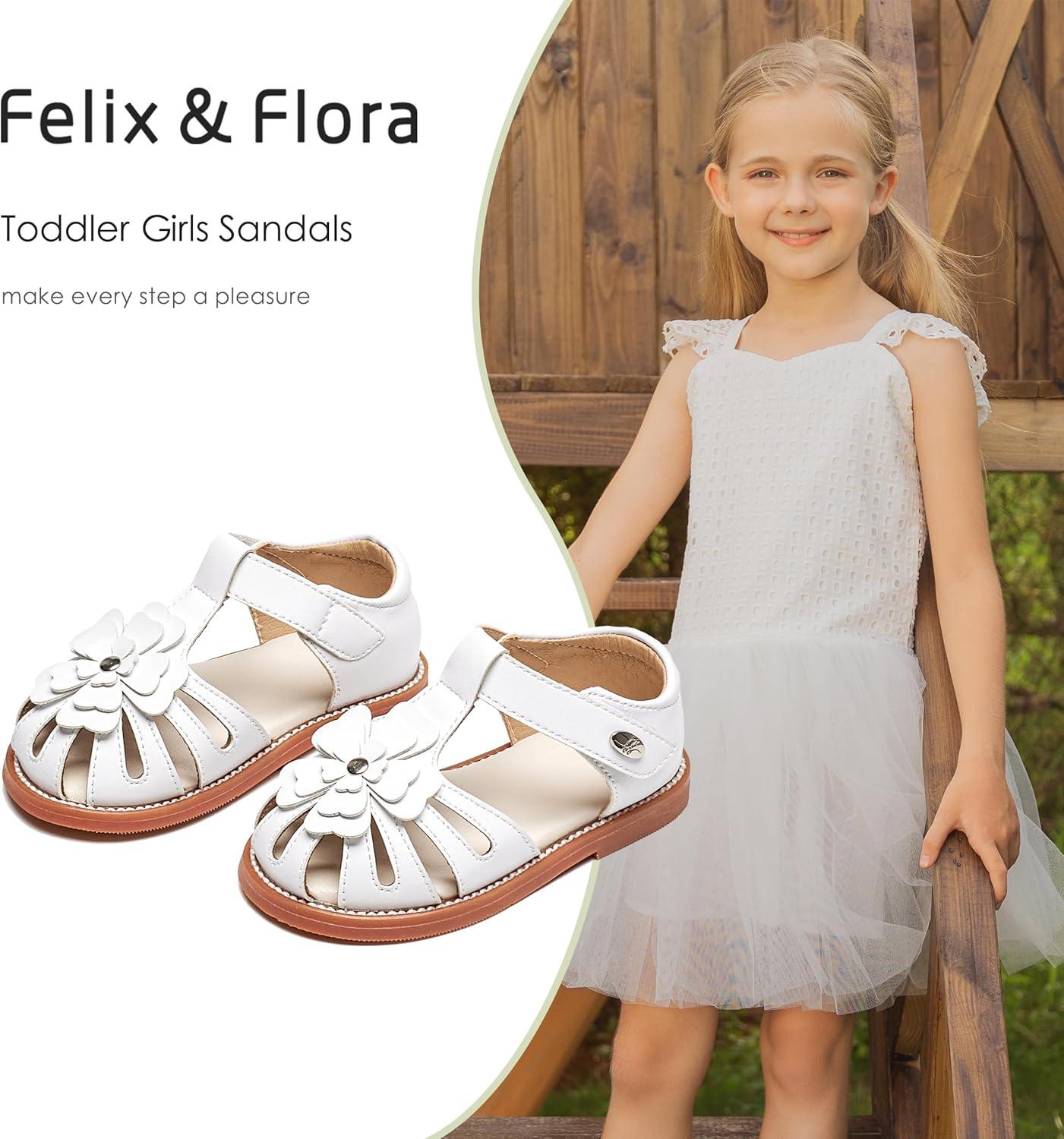 Felix & Flora Toddler Girls Sandals Flower Girl Shoes Soft Rubber Princess Summer Flat Shoes(Bc314-white)