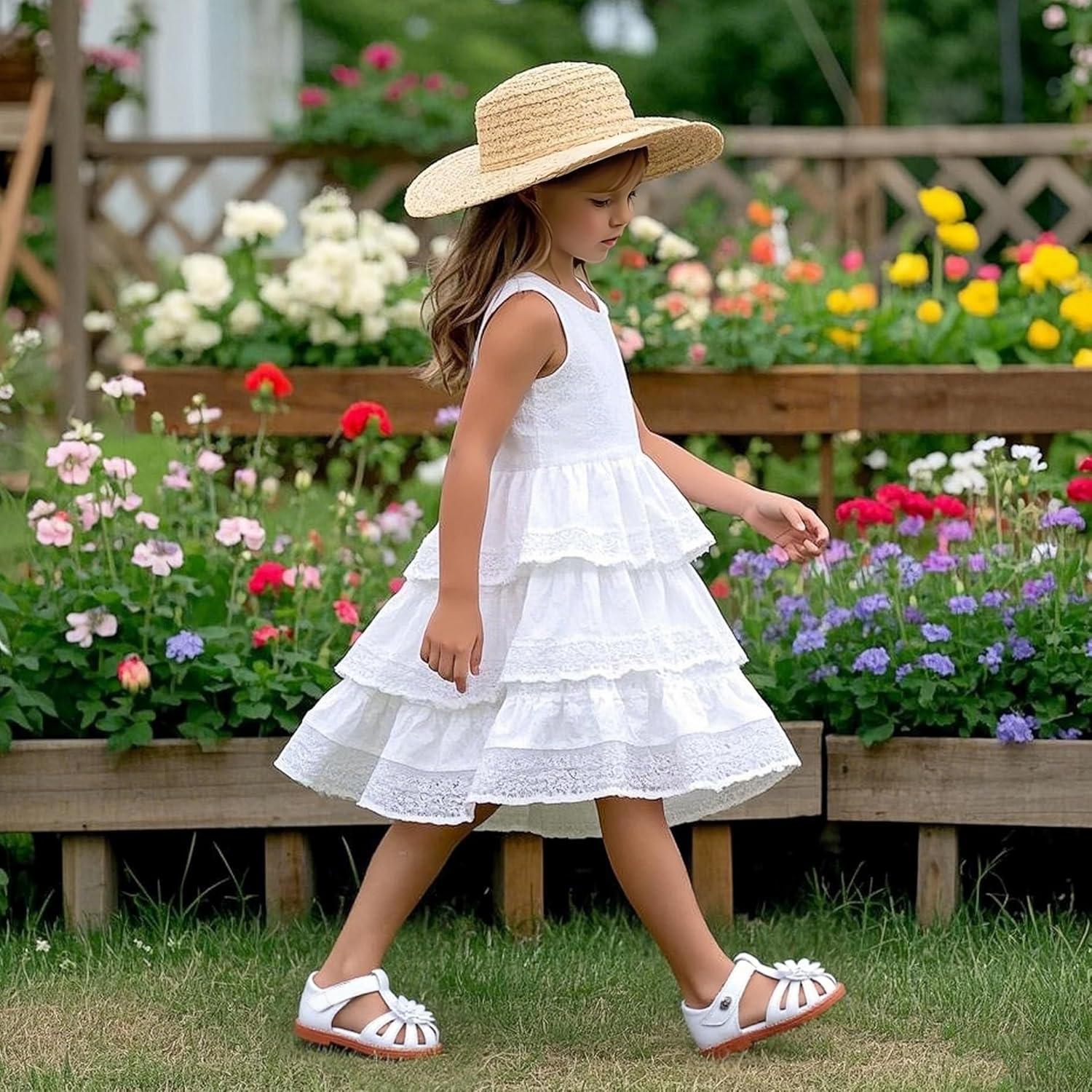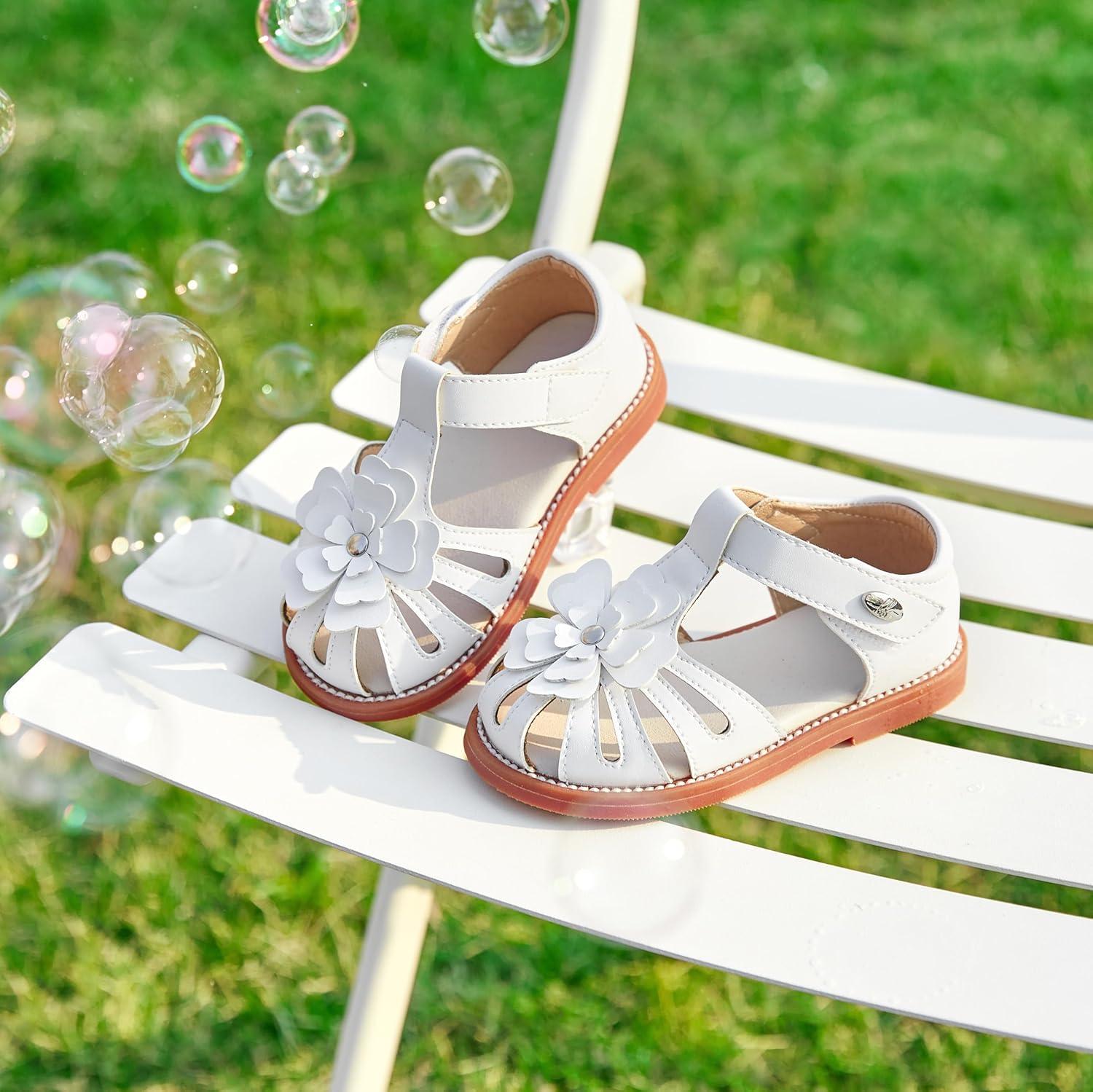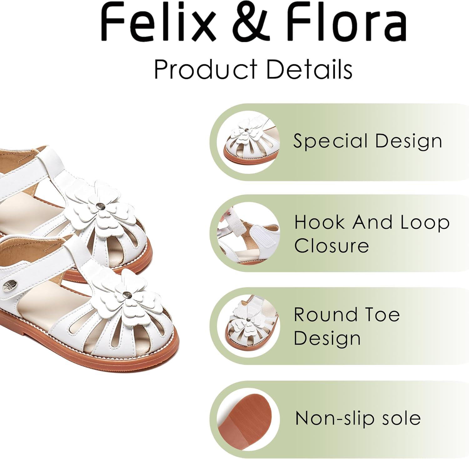 Felix & Flora Toddler Girls Sandals Flower Girl Shoes Soft Rubber Princess Summer Flat Shoes(Bc314-white)