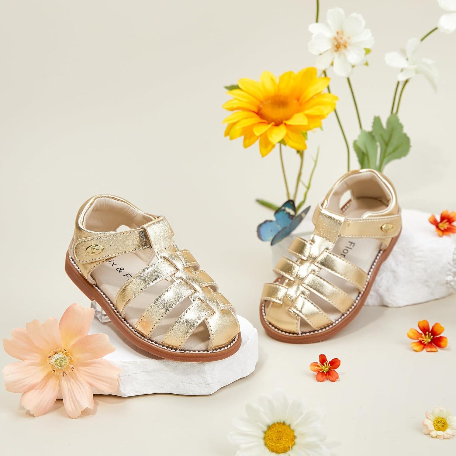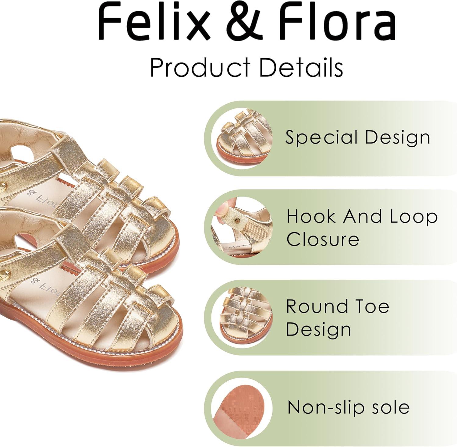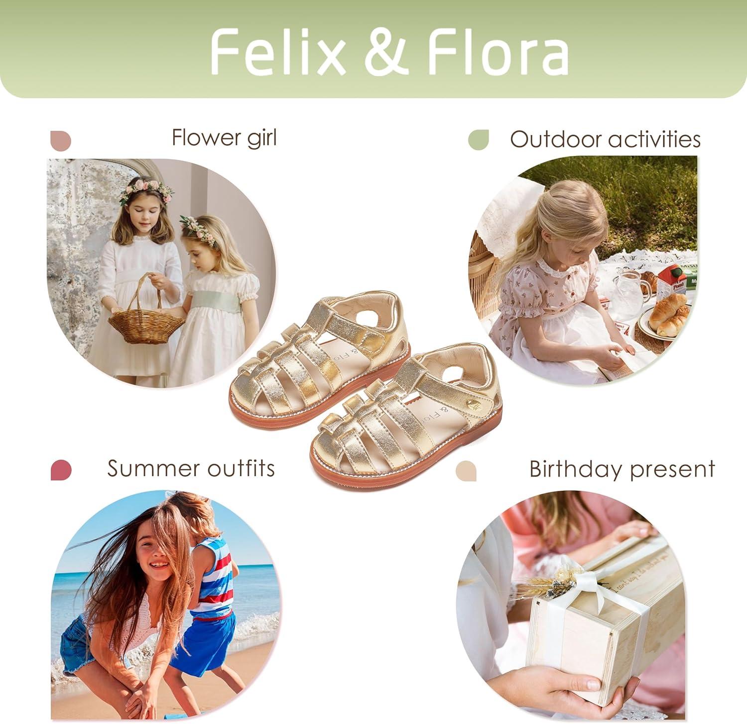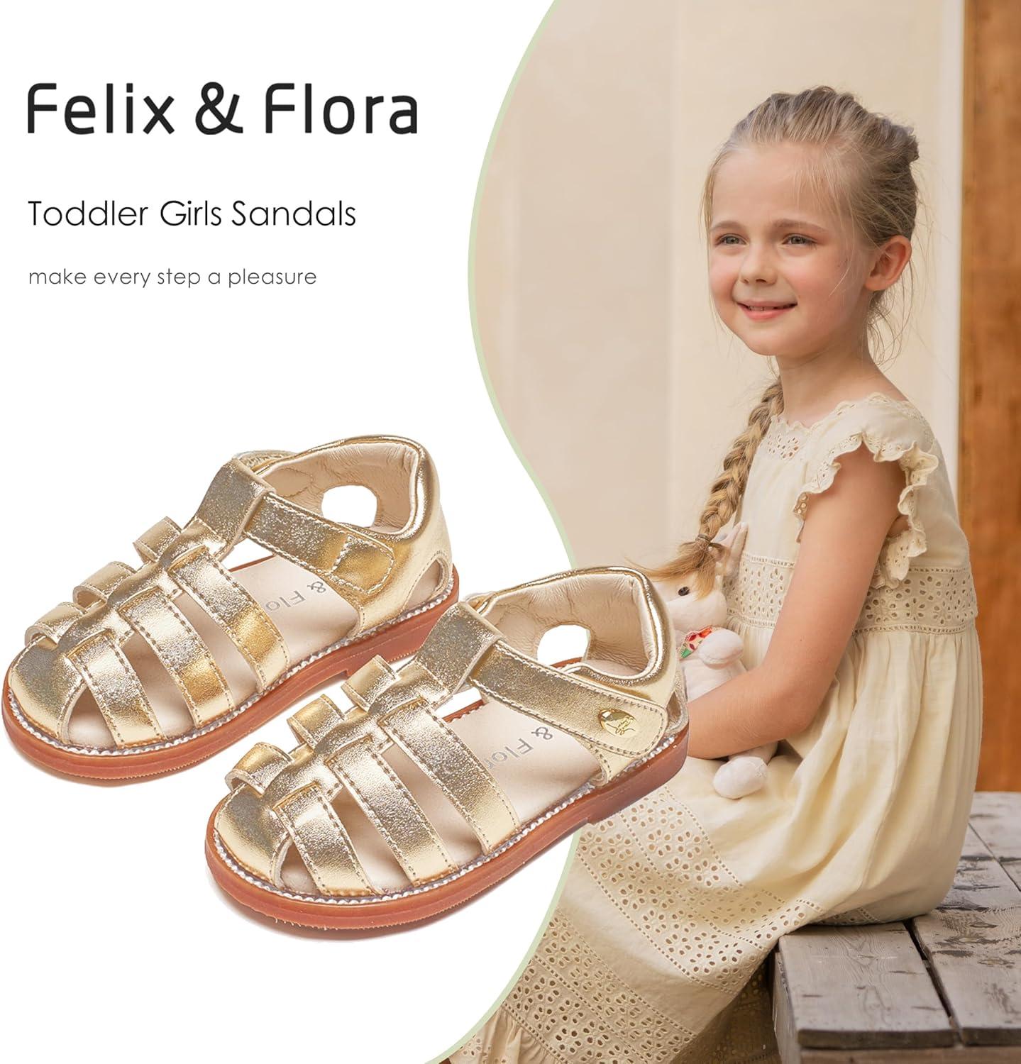 Felix & Flora Toddler Girls Sandals Flower Girl Shoes Soft Rubber Princess Summer Flat Shoes(Bc319-gold)