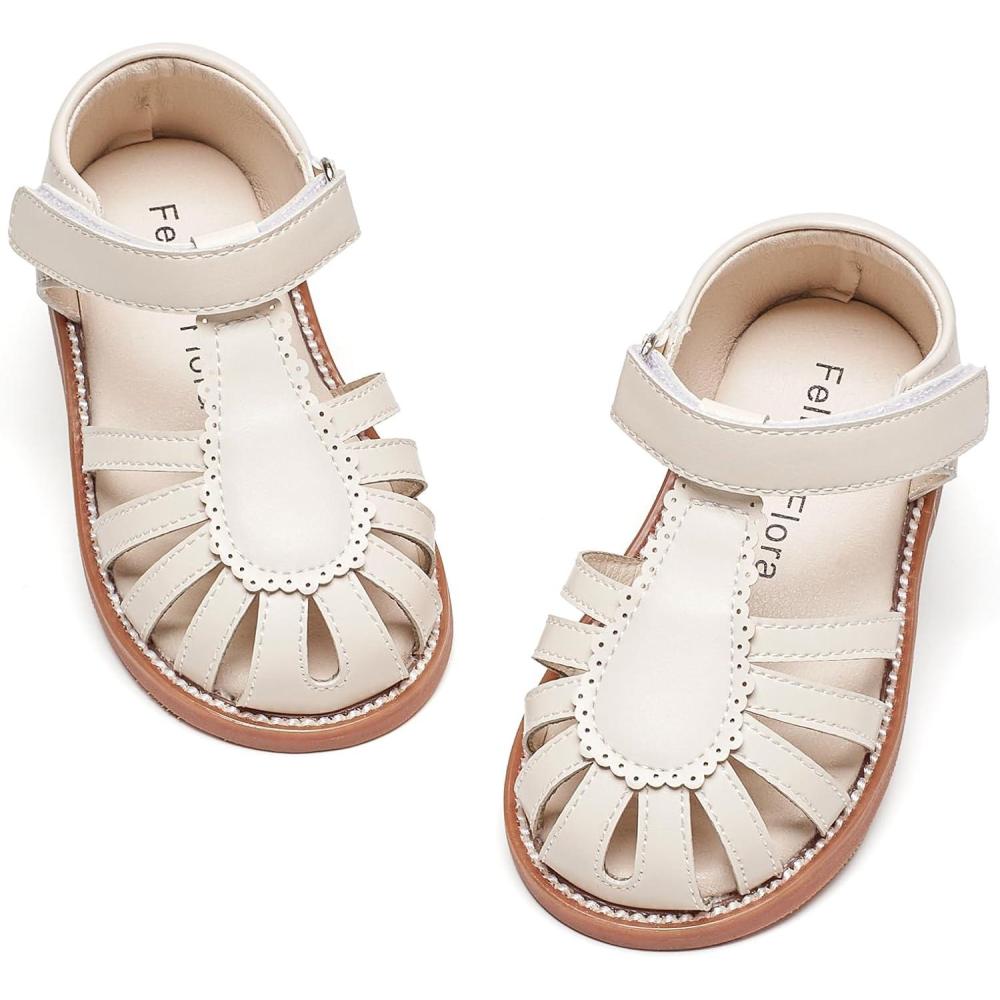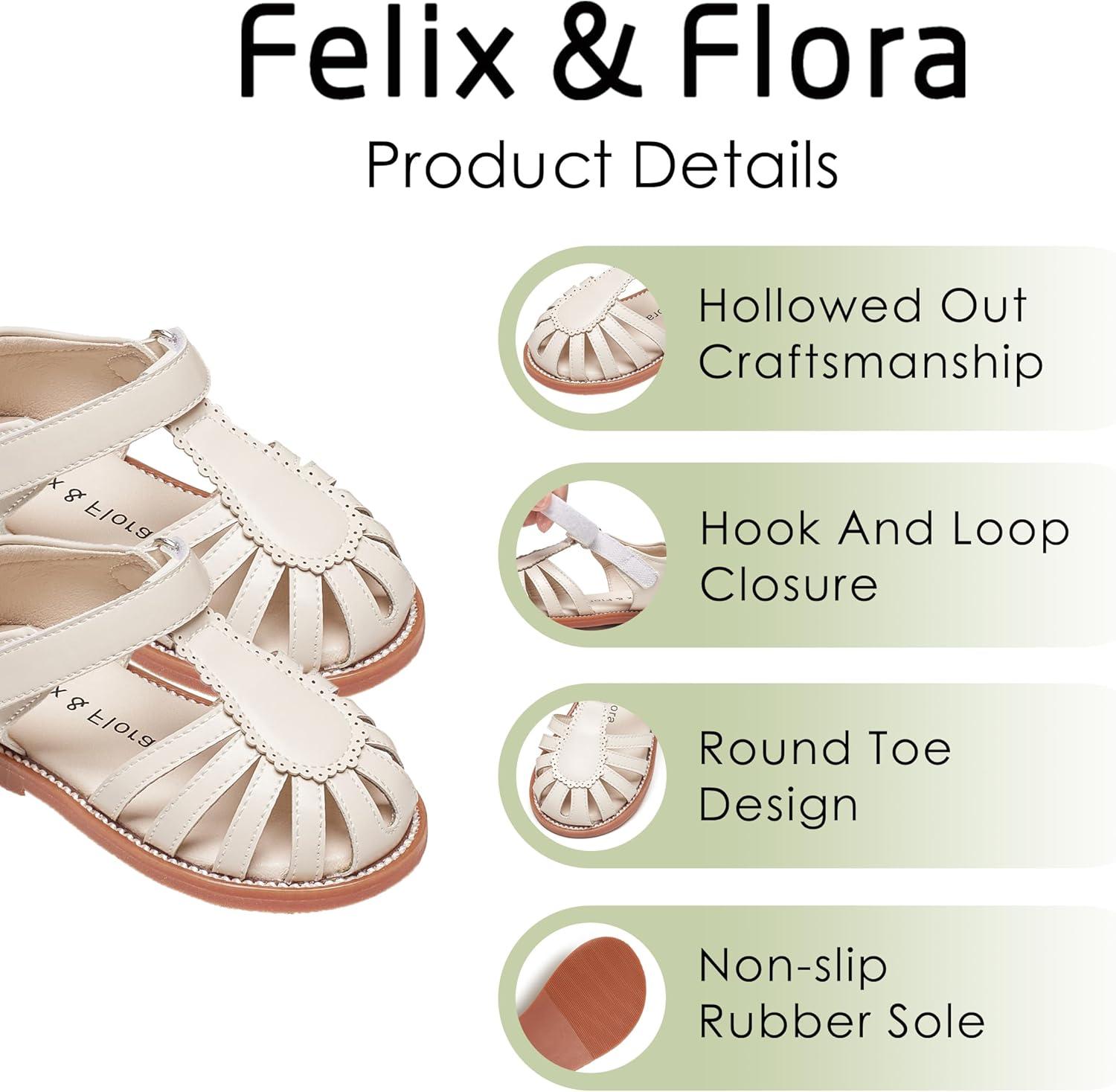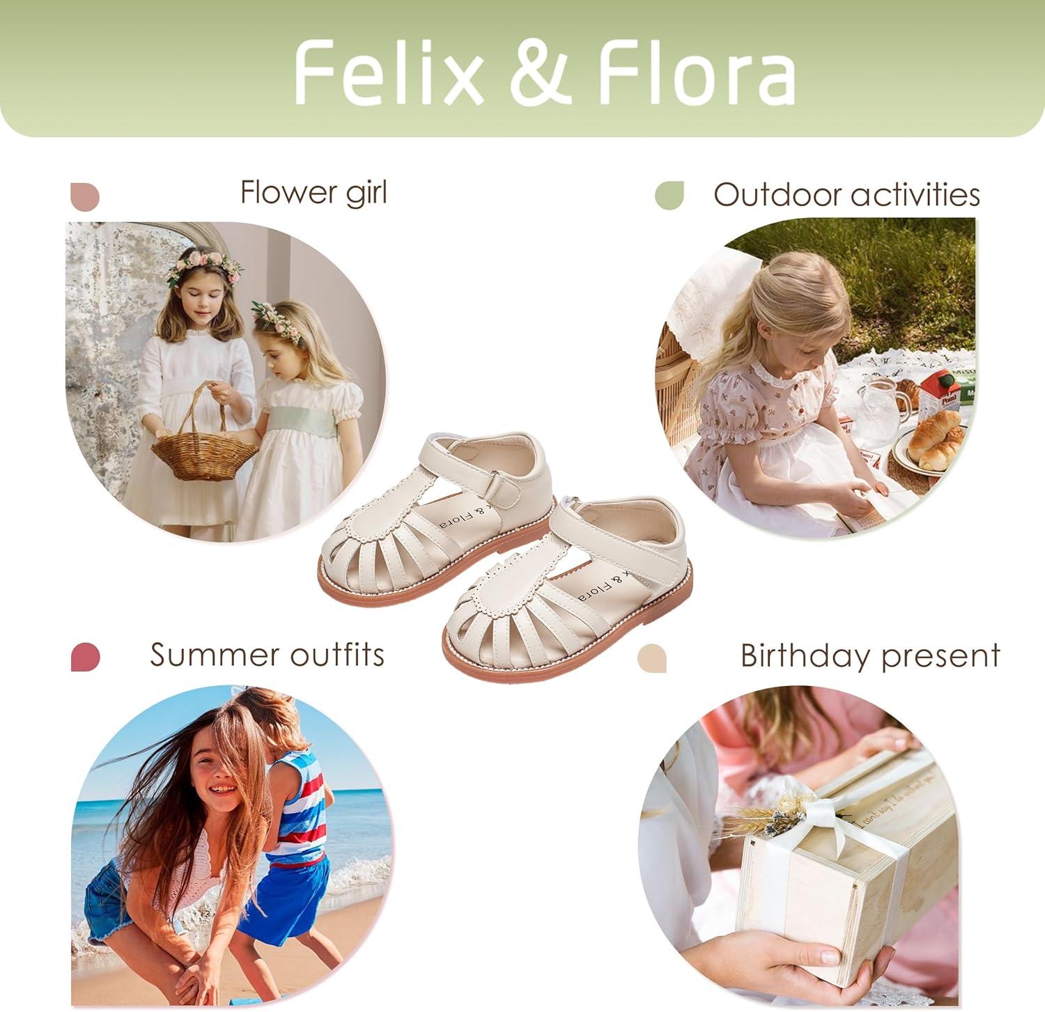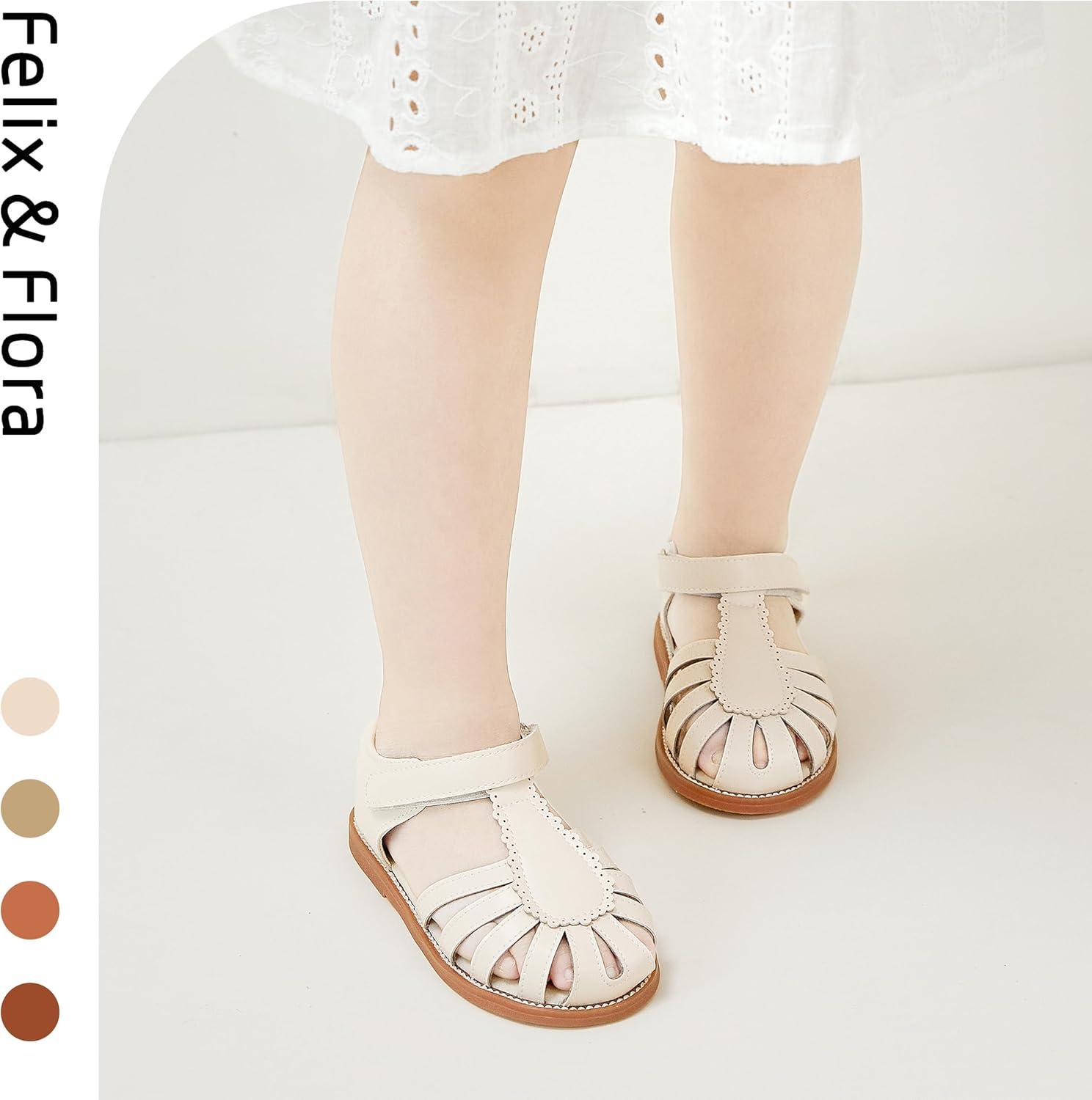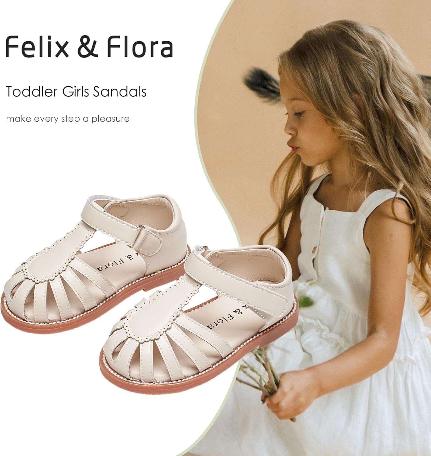Felix & Flora Toddler Girls Sandals Flower Girl Shoes Soft Rubber Princess Summer Flat Shoes(Bc322-beige)