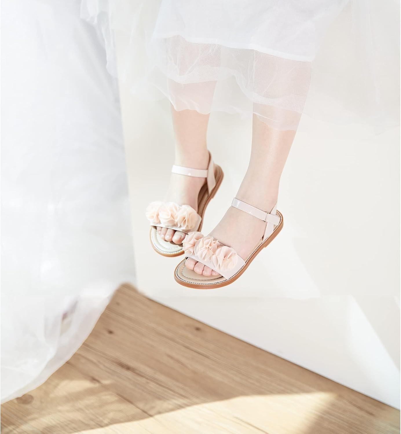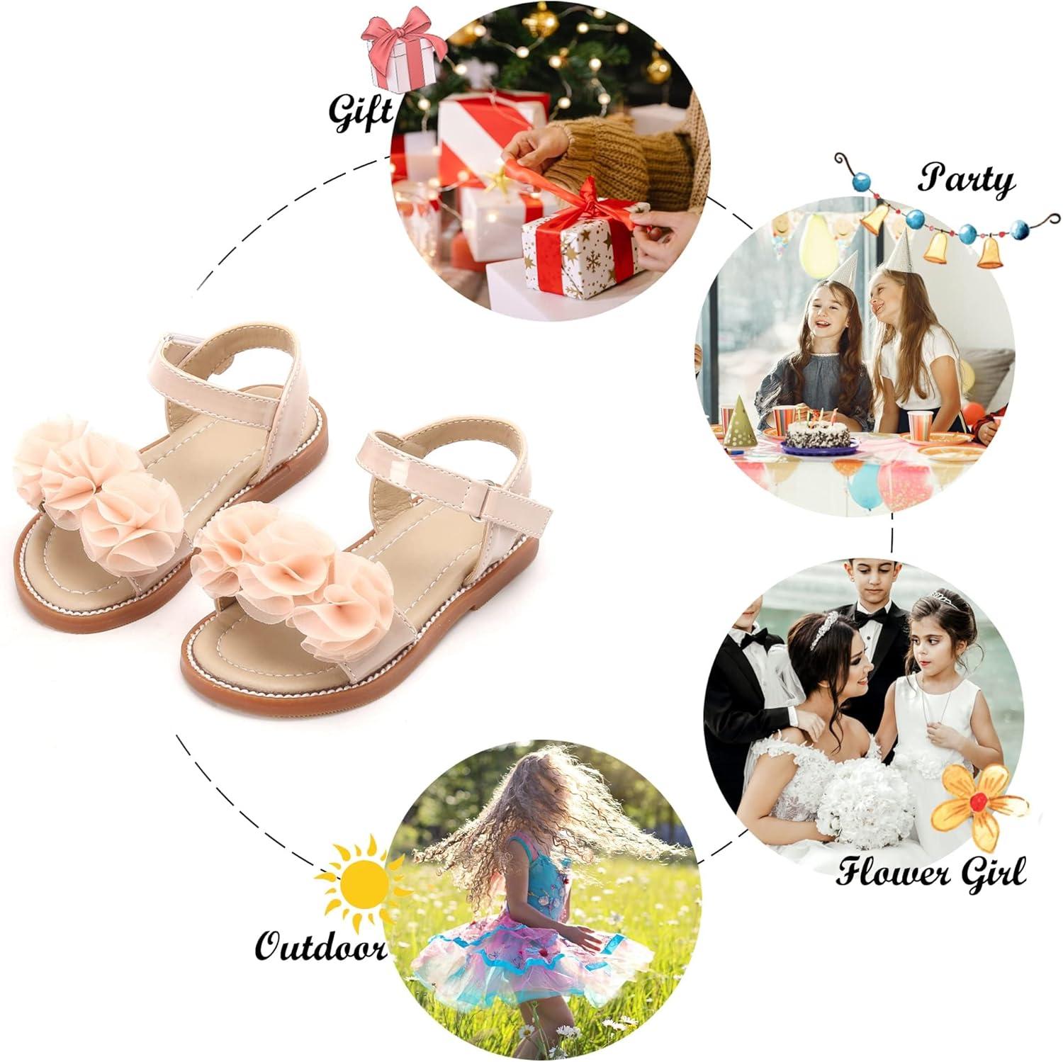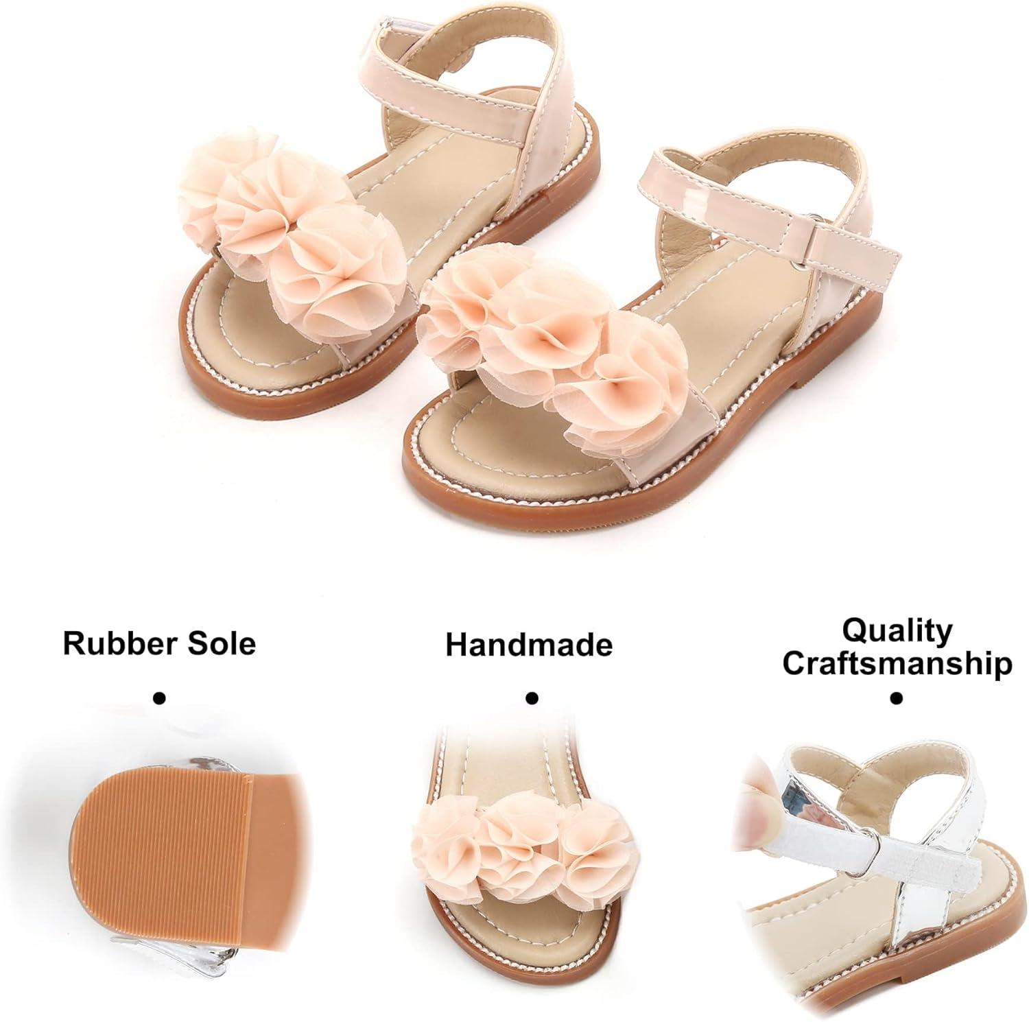 Felix & Flora Toddler Girls Sandals Soft Rubber Flats Summer Baby Flower Girl Shoes.(Bc207-nude)