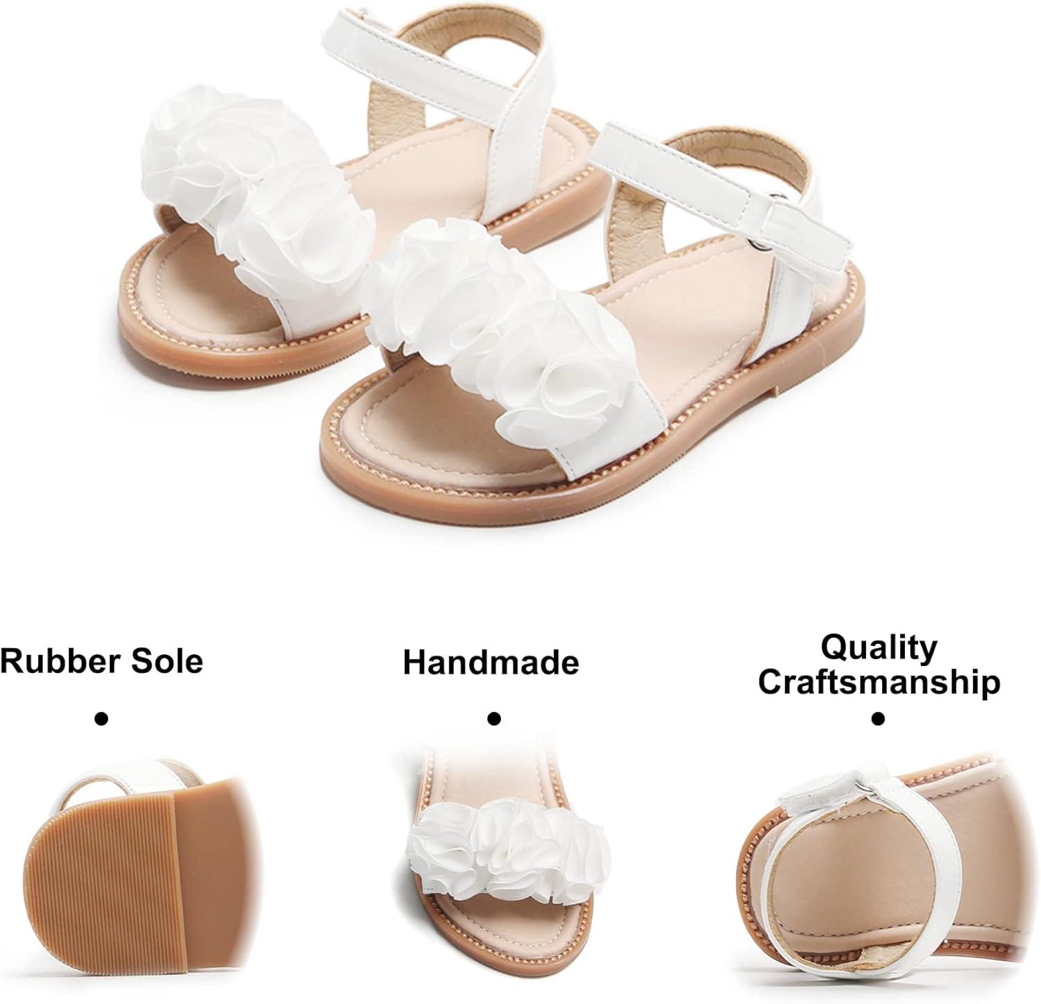 Felix & Flora Toddler Girls Sandals Soft Rubber Flats Summer Baby Flower Girl Shoes.(Bc207-white)
