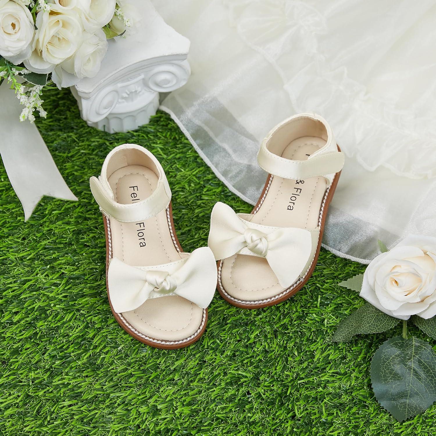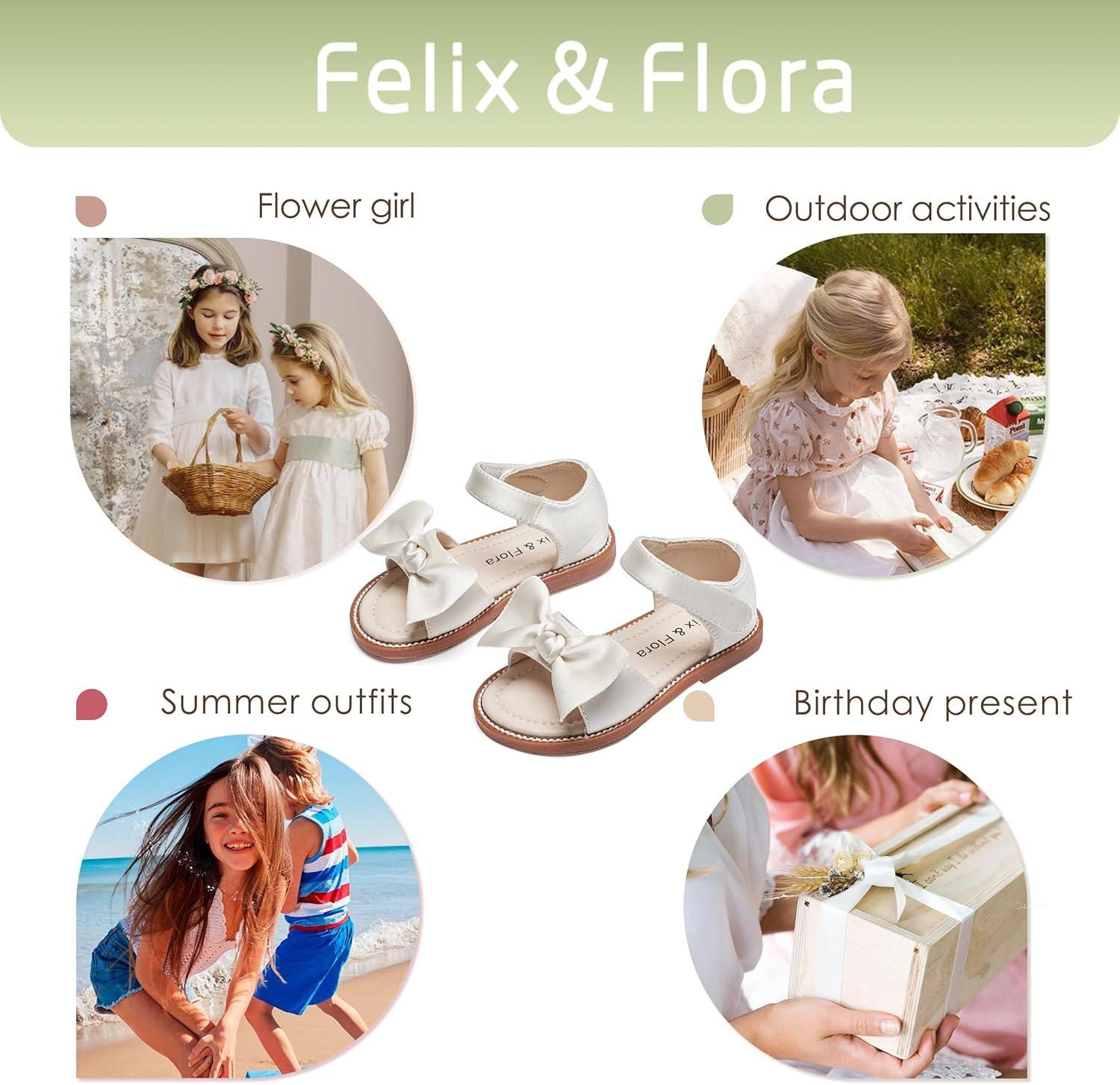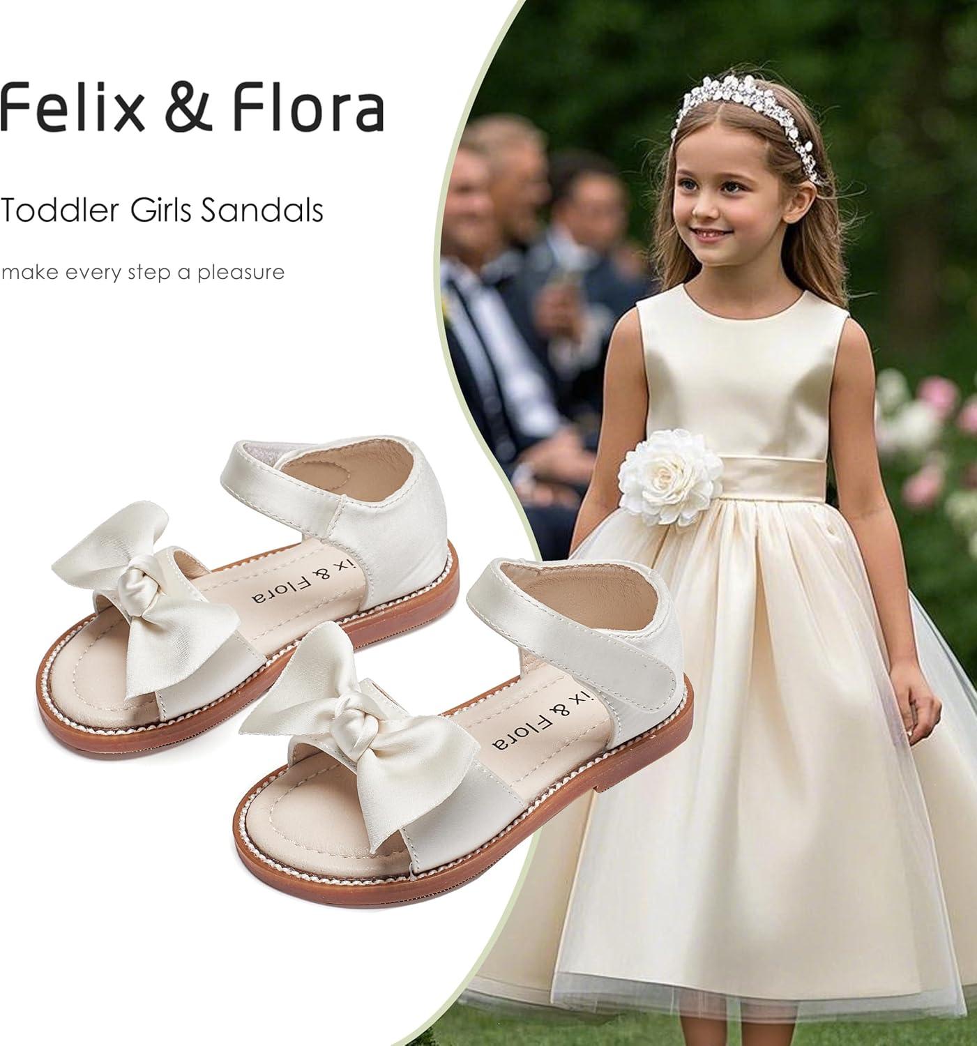 Felix & Flora Toddler Girls Sandals Soft Rubber Flats Summer Baby Flower Girl Shoes.(Bc245-s Ivory White)