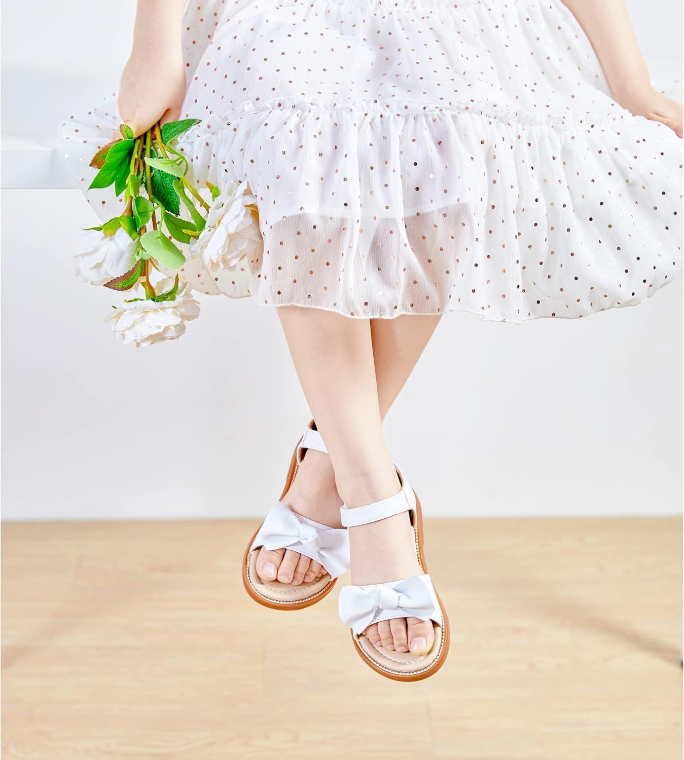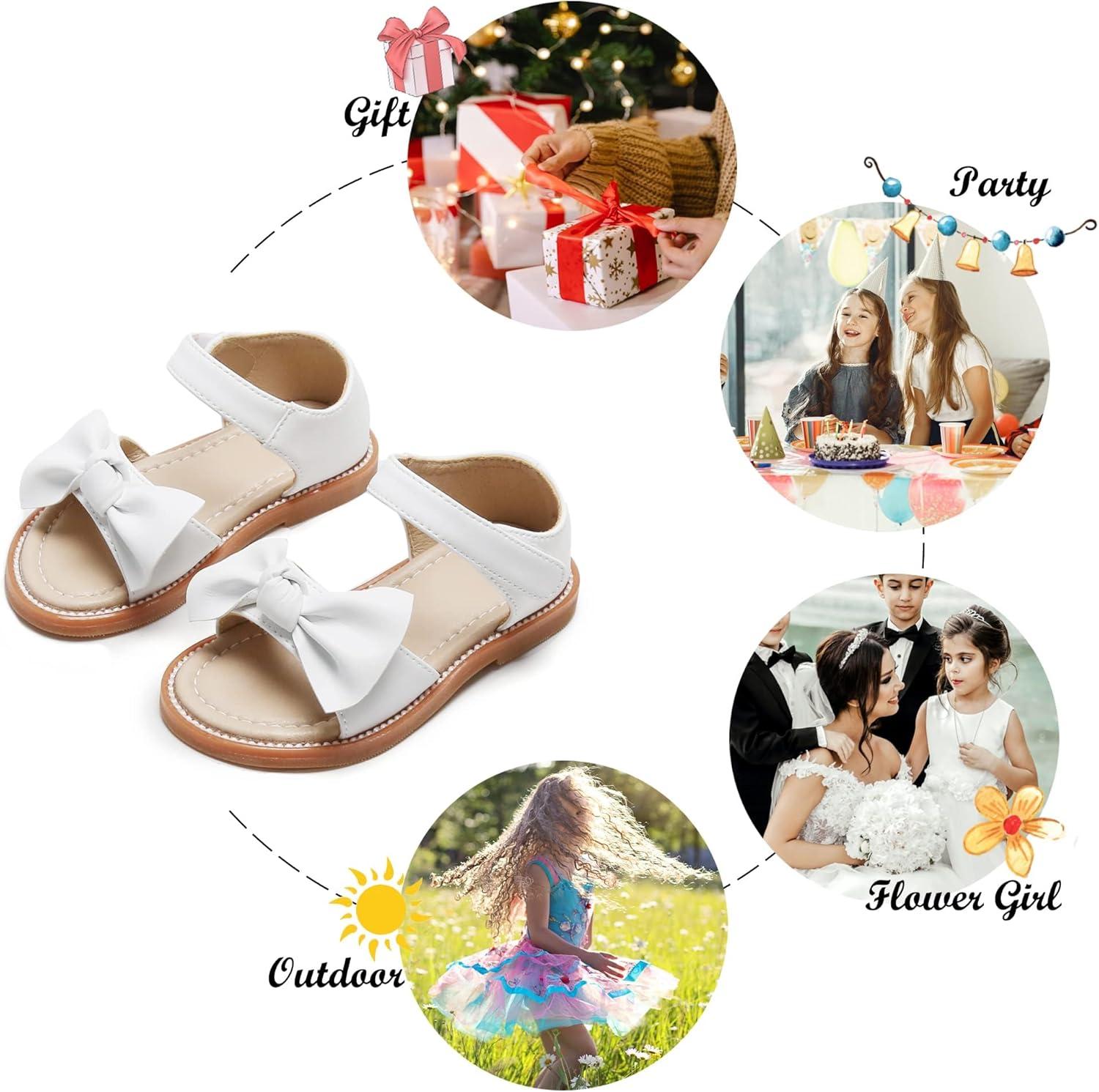 Felix & Flora Toddler Girls Sandals Soft Rubber Flats Summer Baby Flower Girl Shoes.(Bc245-white)