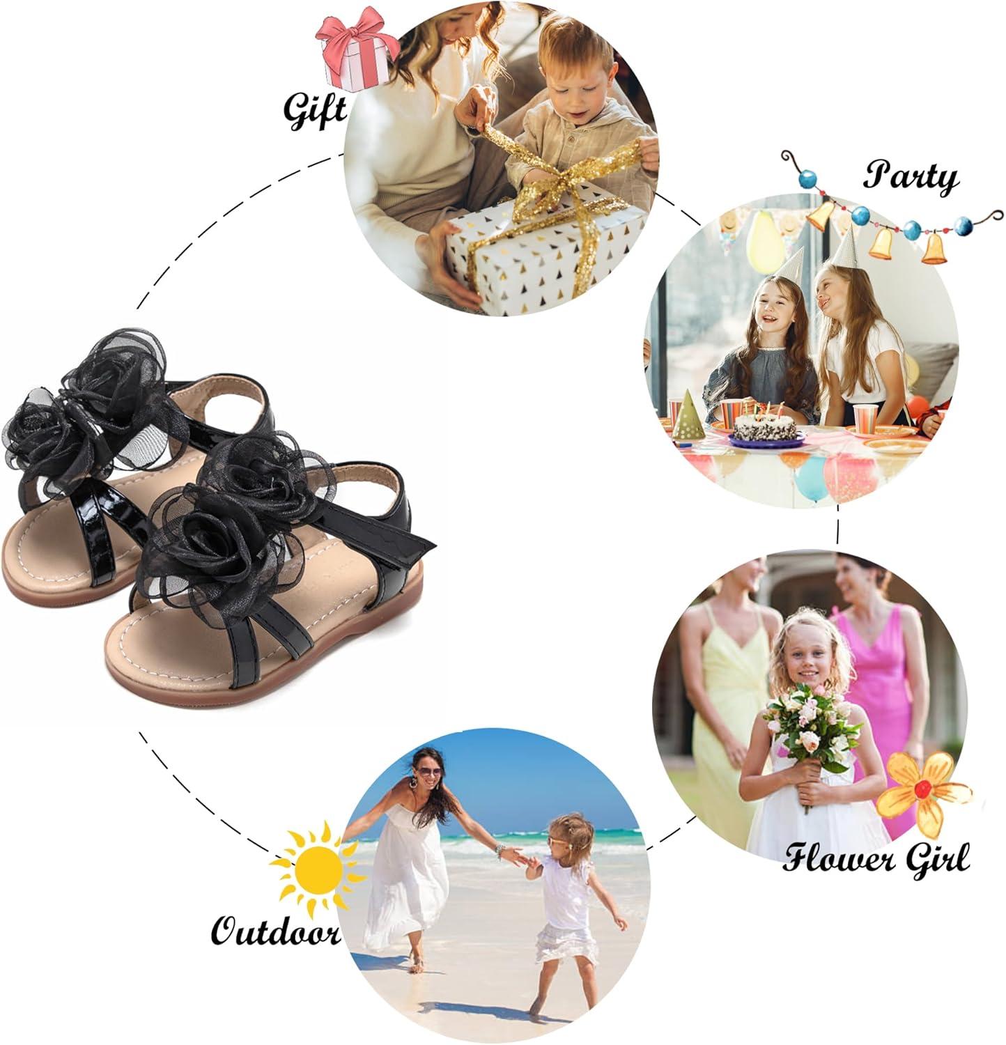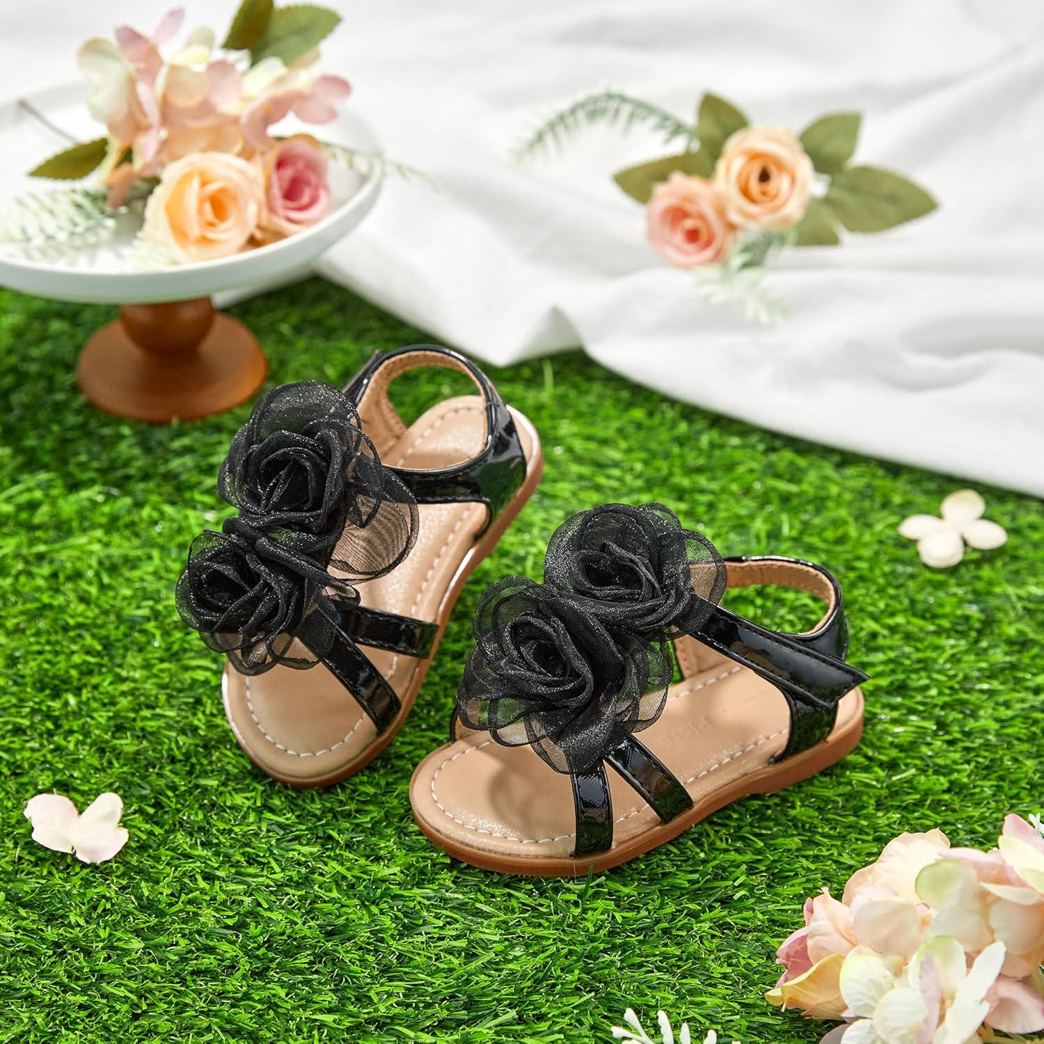Felix & Flora Toddler Girls Sandals Soft Rubber Flats Summer Baby Flower Girl Shoes.(Bc254-black)
