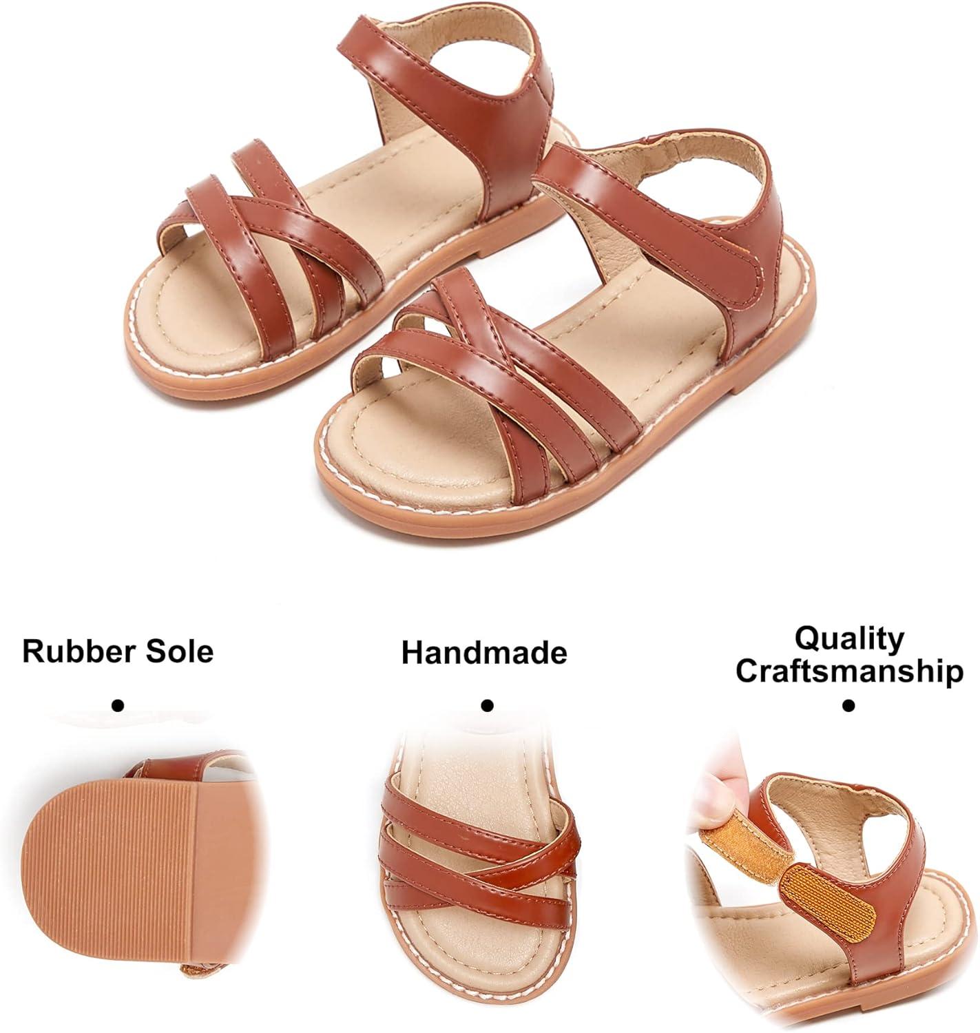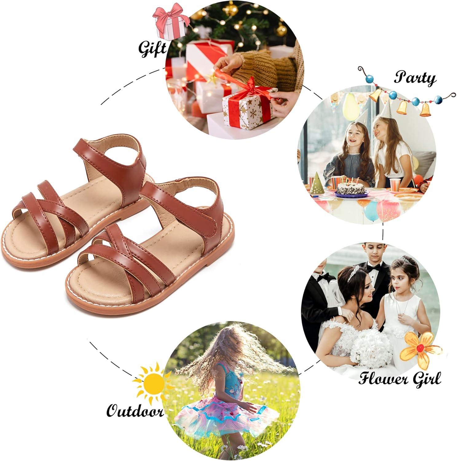 Felix & Flora Toddler Girls Sandals Soft Rubber Flats Summer Baby Flower Girl Shoes.(Bc266-brown)