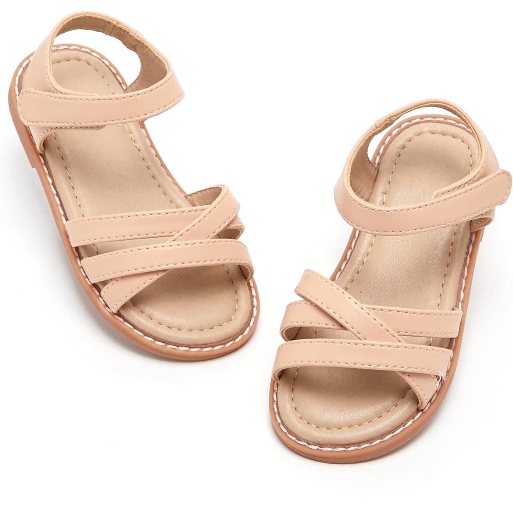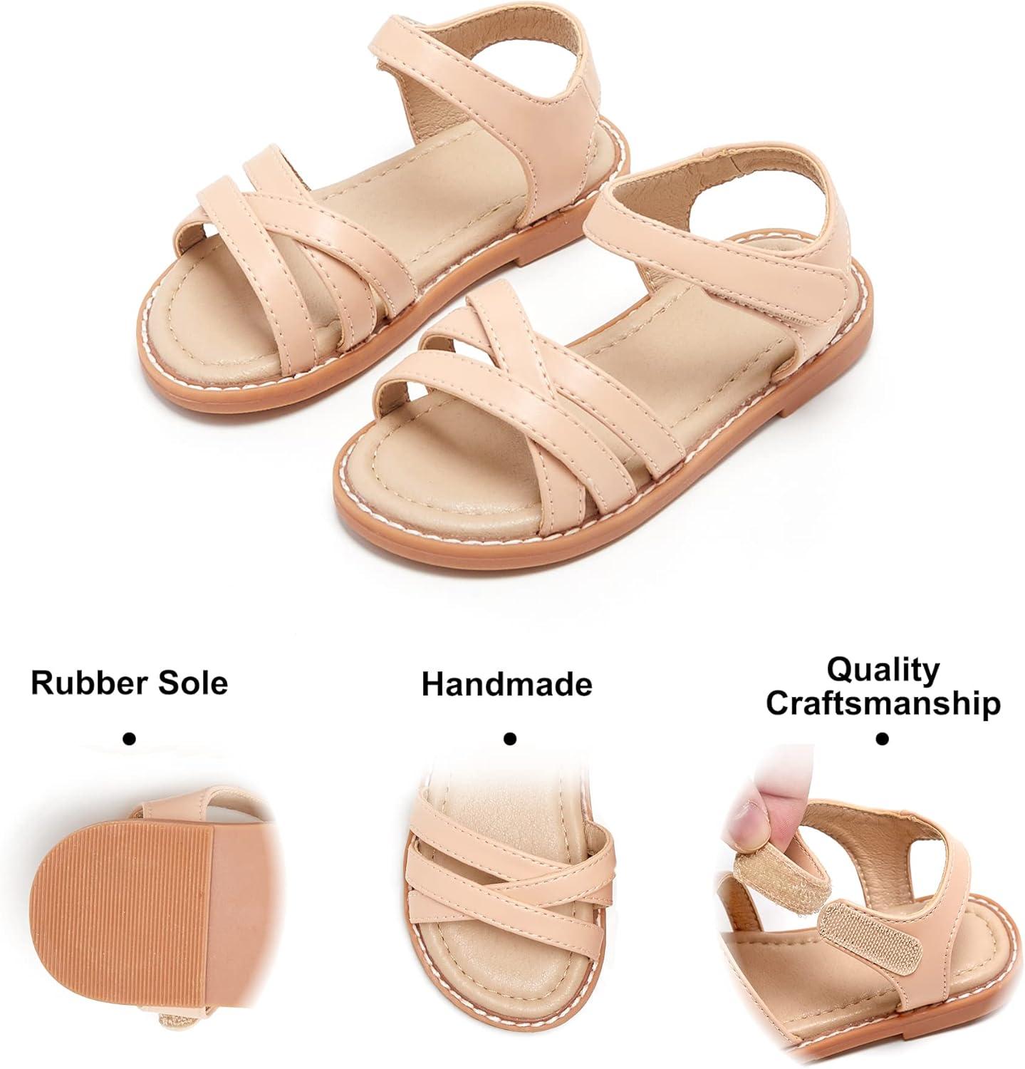Felix & Flora Toddler Girls Sandals Soft Rubber Flats Summer Baby Flower Girl Shoes.(Bc266-nude)