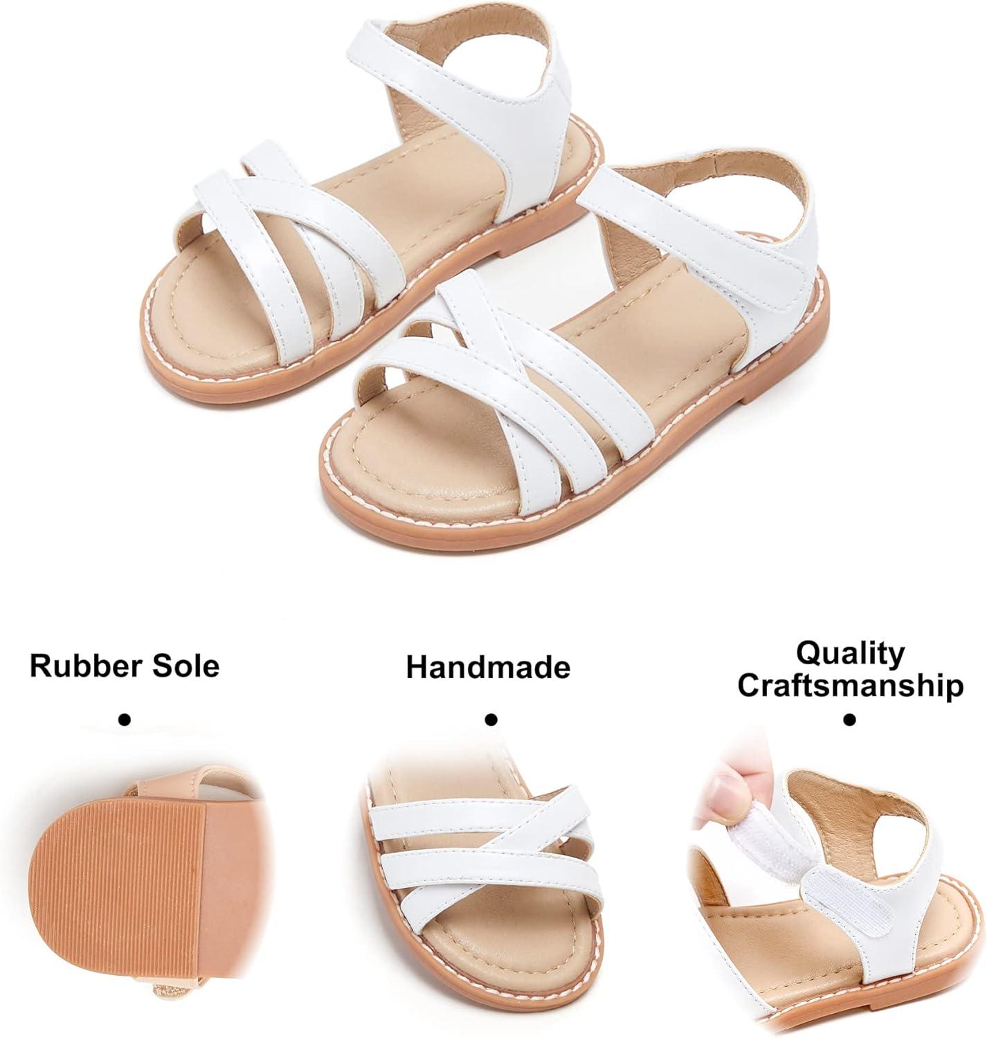 Felix & Flora Toddler Girls Sandals Soft Rubber Flats Summer Baby Flower Girl Shoes.(Bc266-white)
