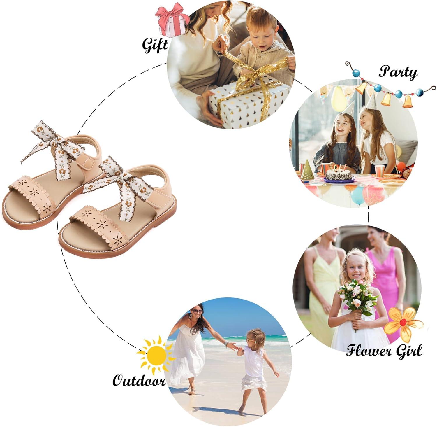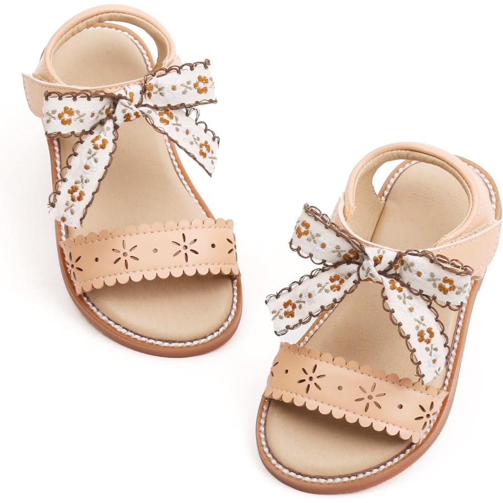 Felix & Flora Toddler Girls Sandals Soft Rubber Flats Summer Baby Flower Girl Shoes.(Bc283-nude)
