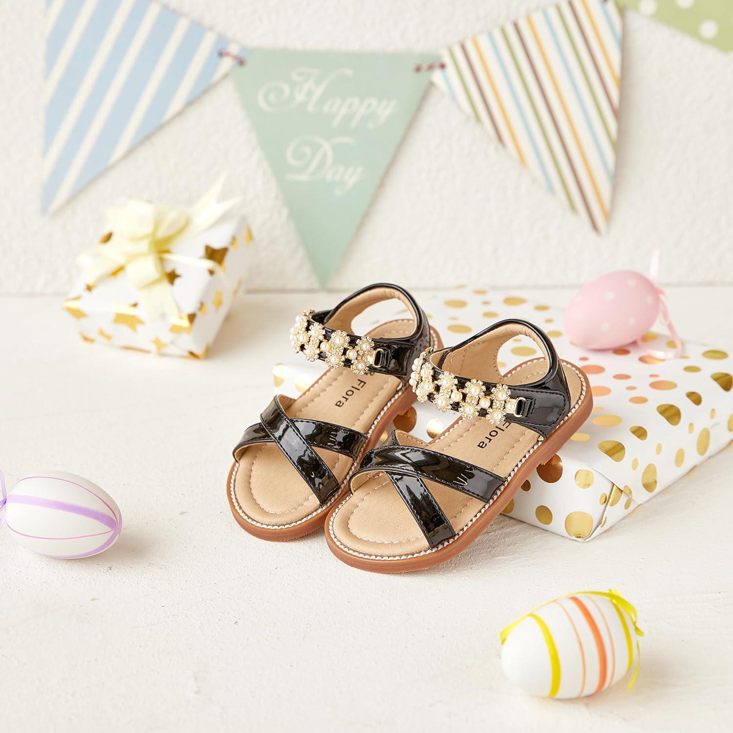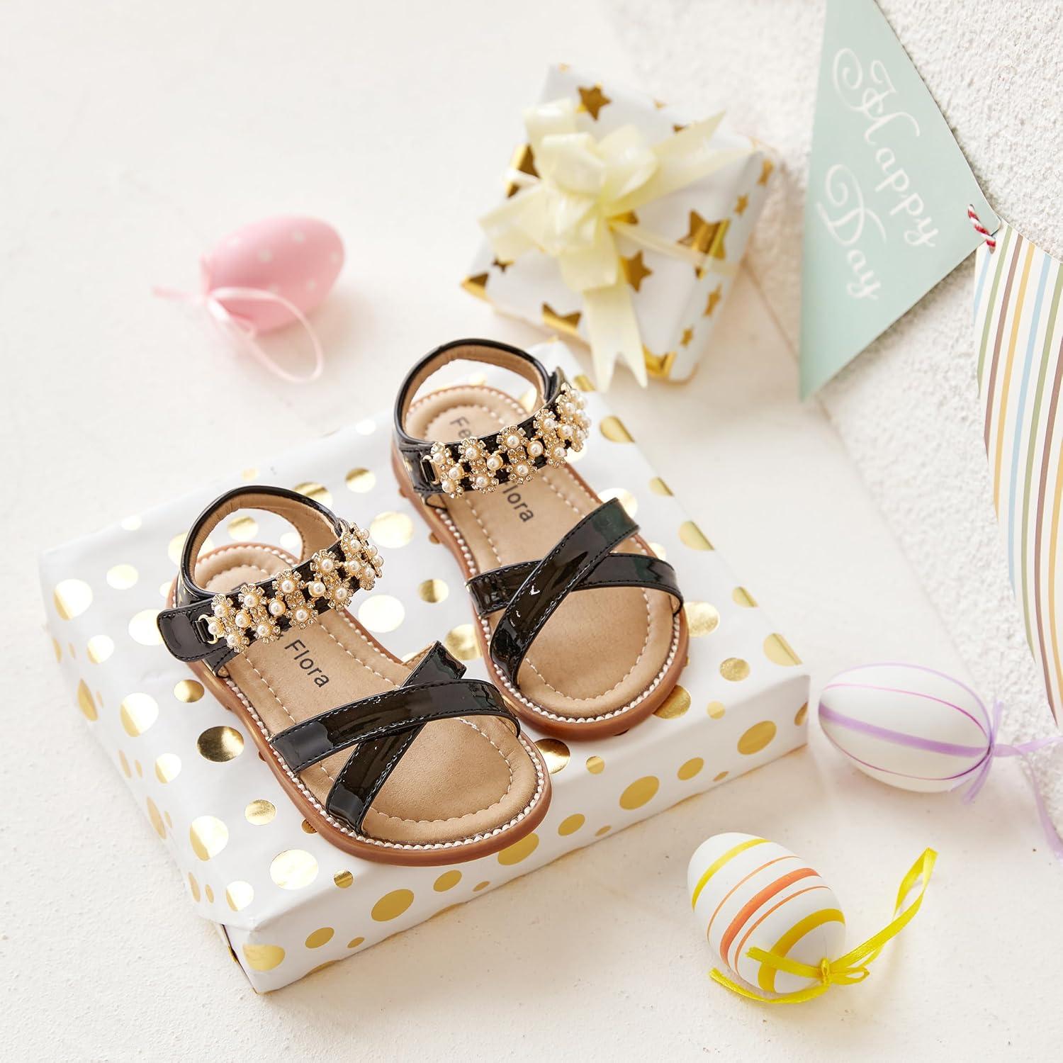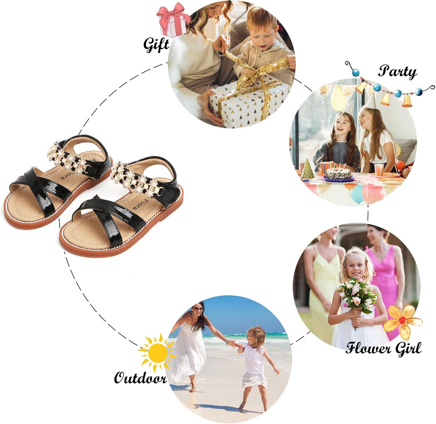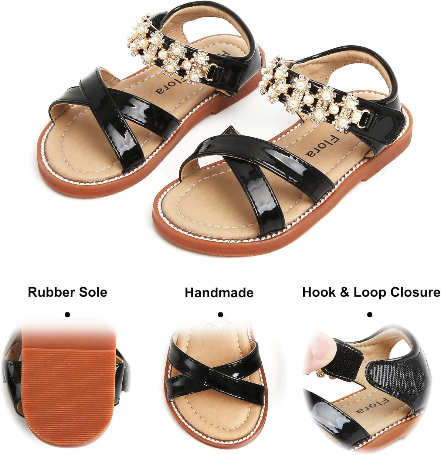 Felix & Flora Toddler Girls Sandals Soft Rubber Flats Summer Baby Flower Girl Shoes.(Bc284-black)