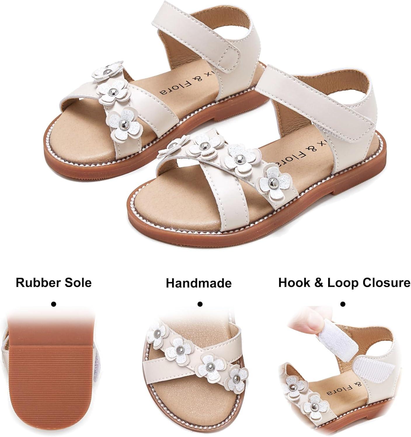 Felix & Flora Toddler Girls Sandals Soft Rubber Flats Summer Baby Flower Girl Shoes.(Bc290-beige)