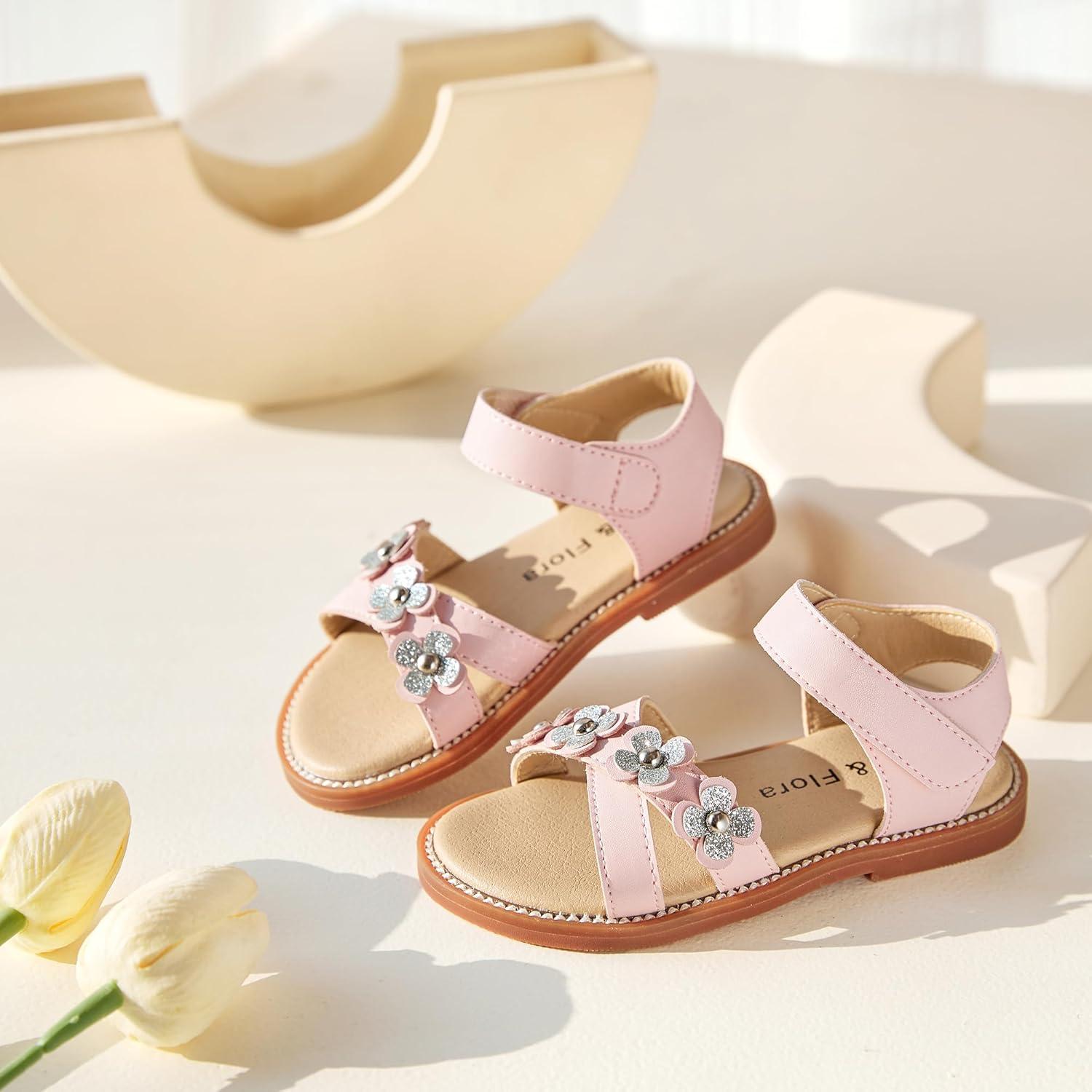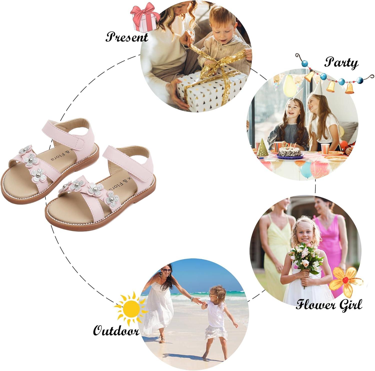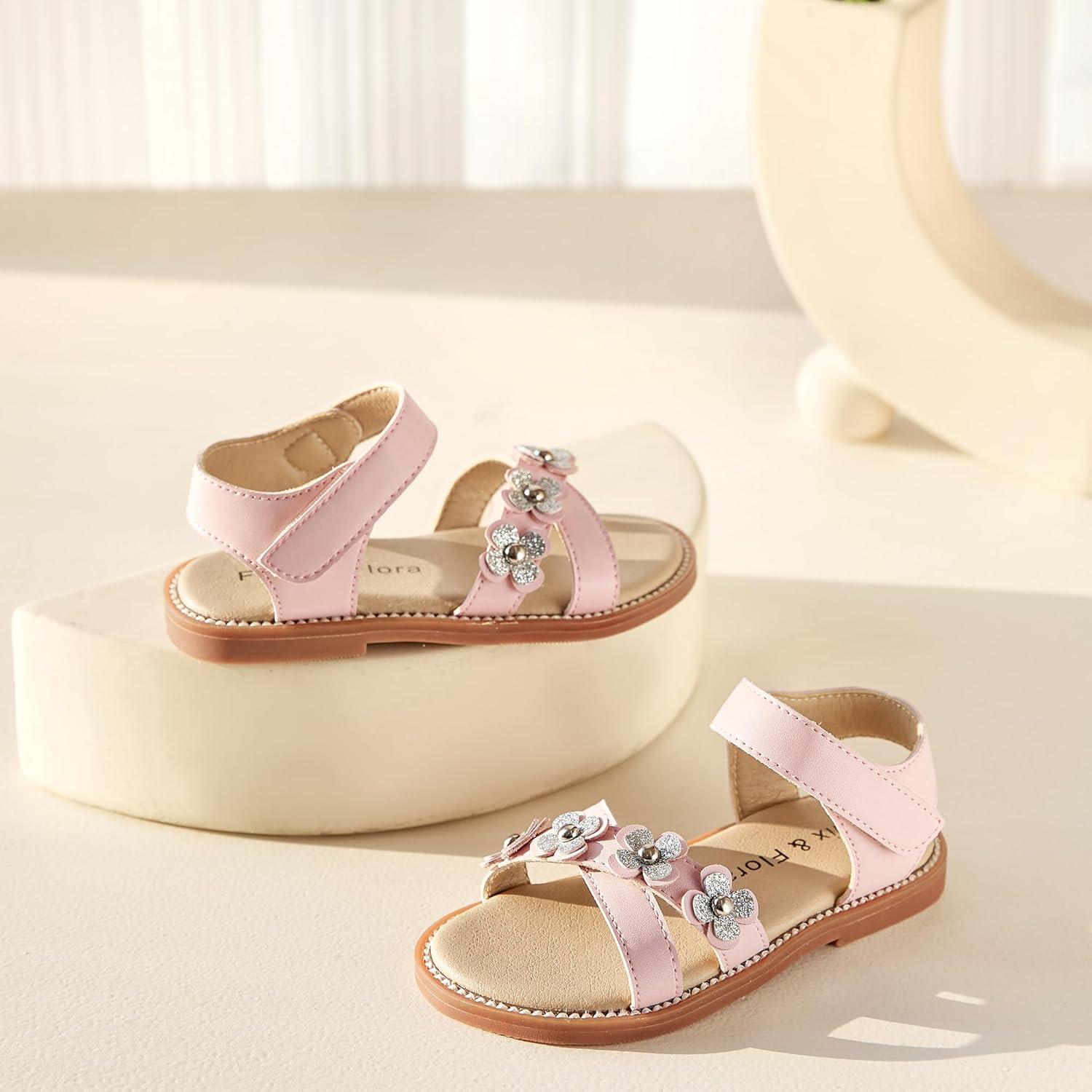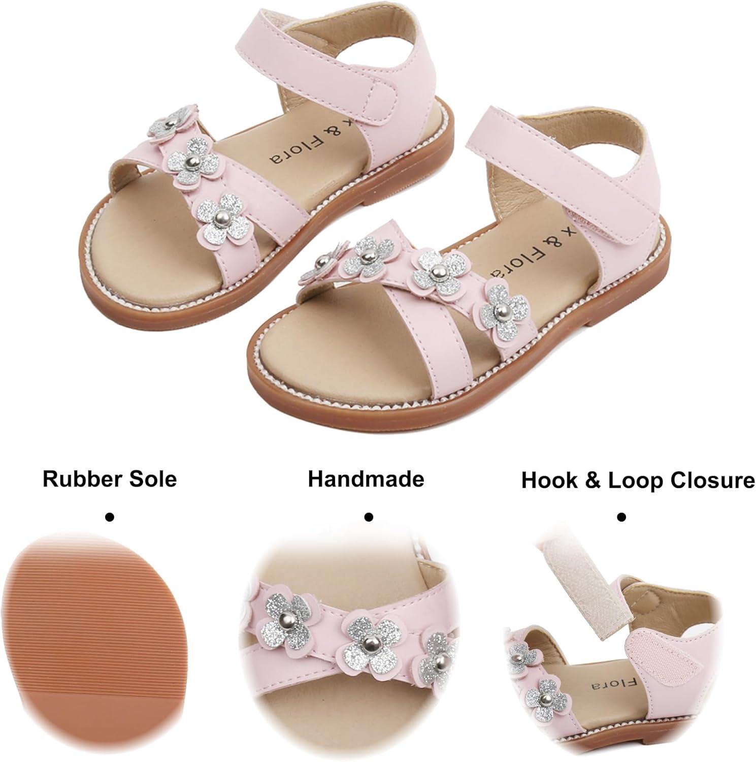 Felix & Flora Toddler Girls Sandals Soft Rubber Flats Summer Baby Flower Girl Shoes.(Bc290-pink)