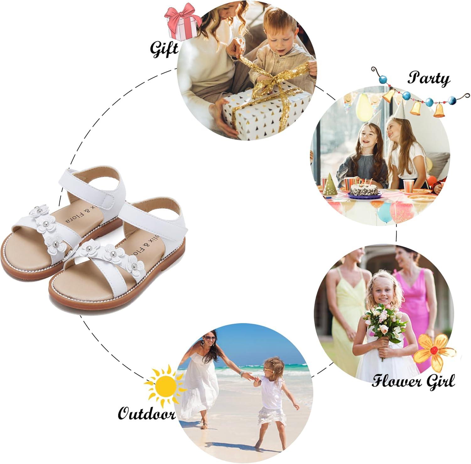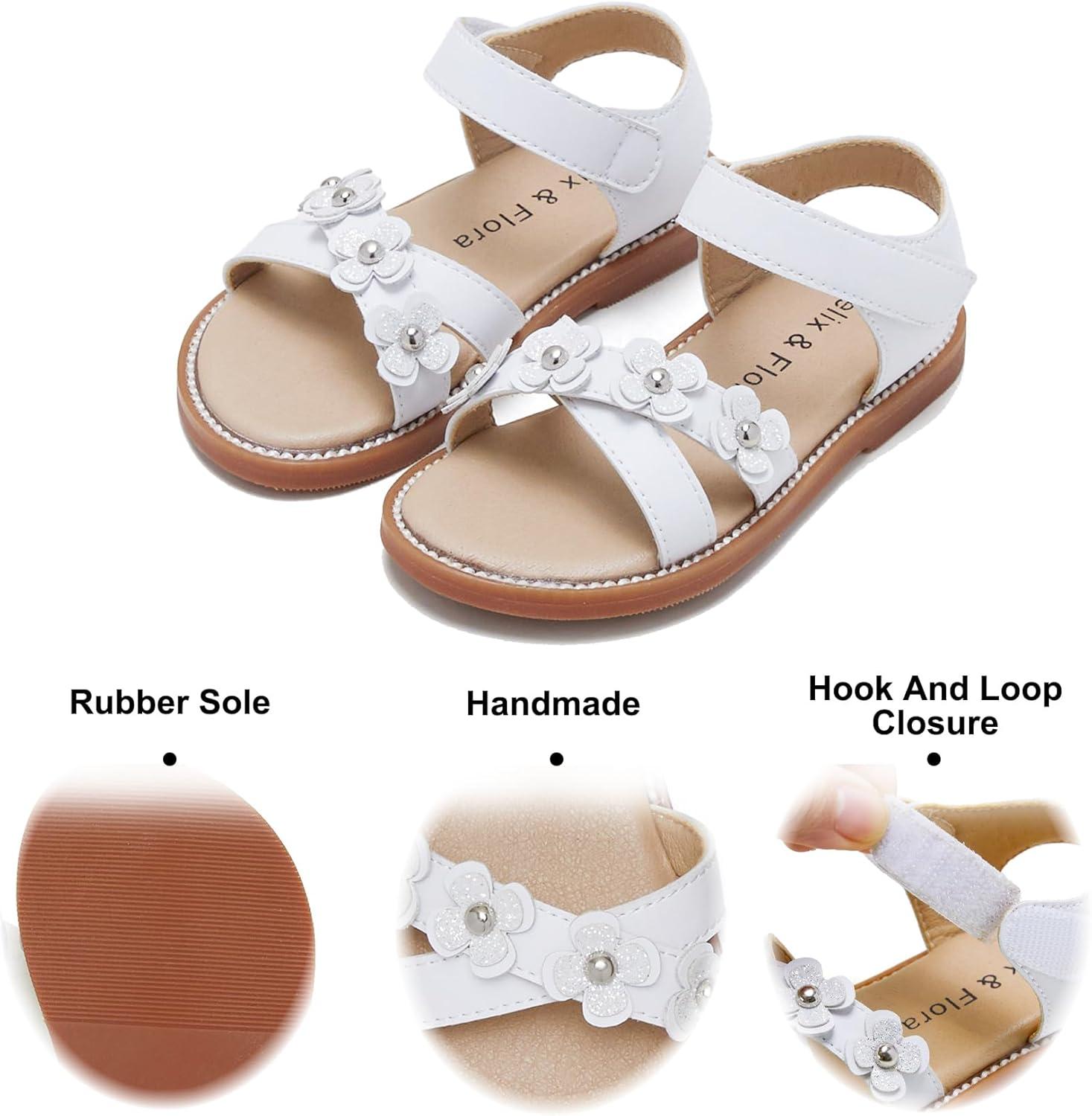 Felix & Flora Toddler Girls Sandals Soft Rubber Flats Summer Baby Flower Girl Shoes.(Bc290-white)