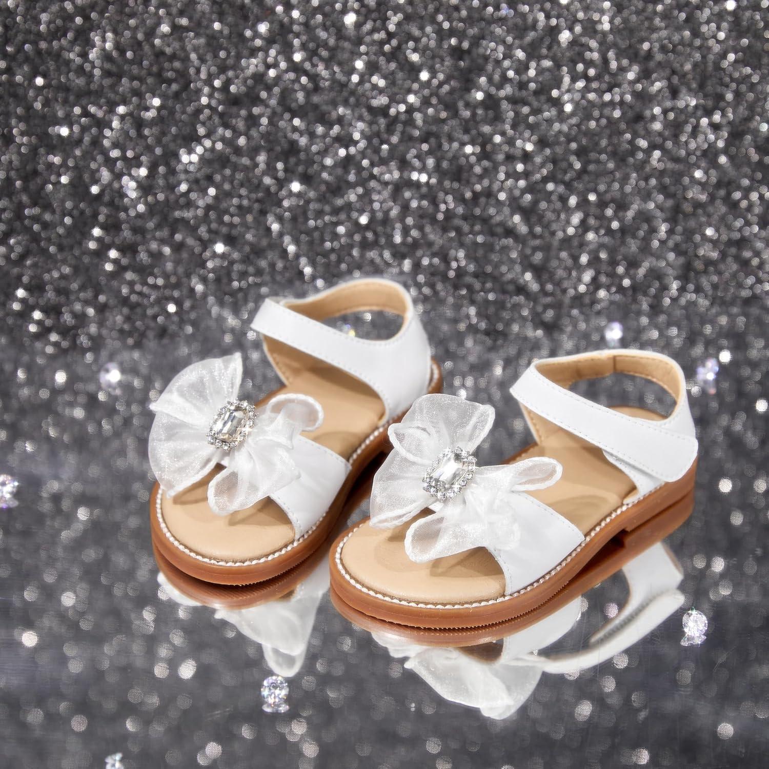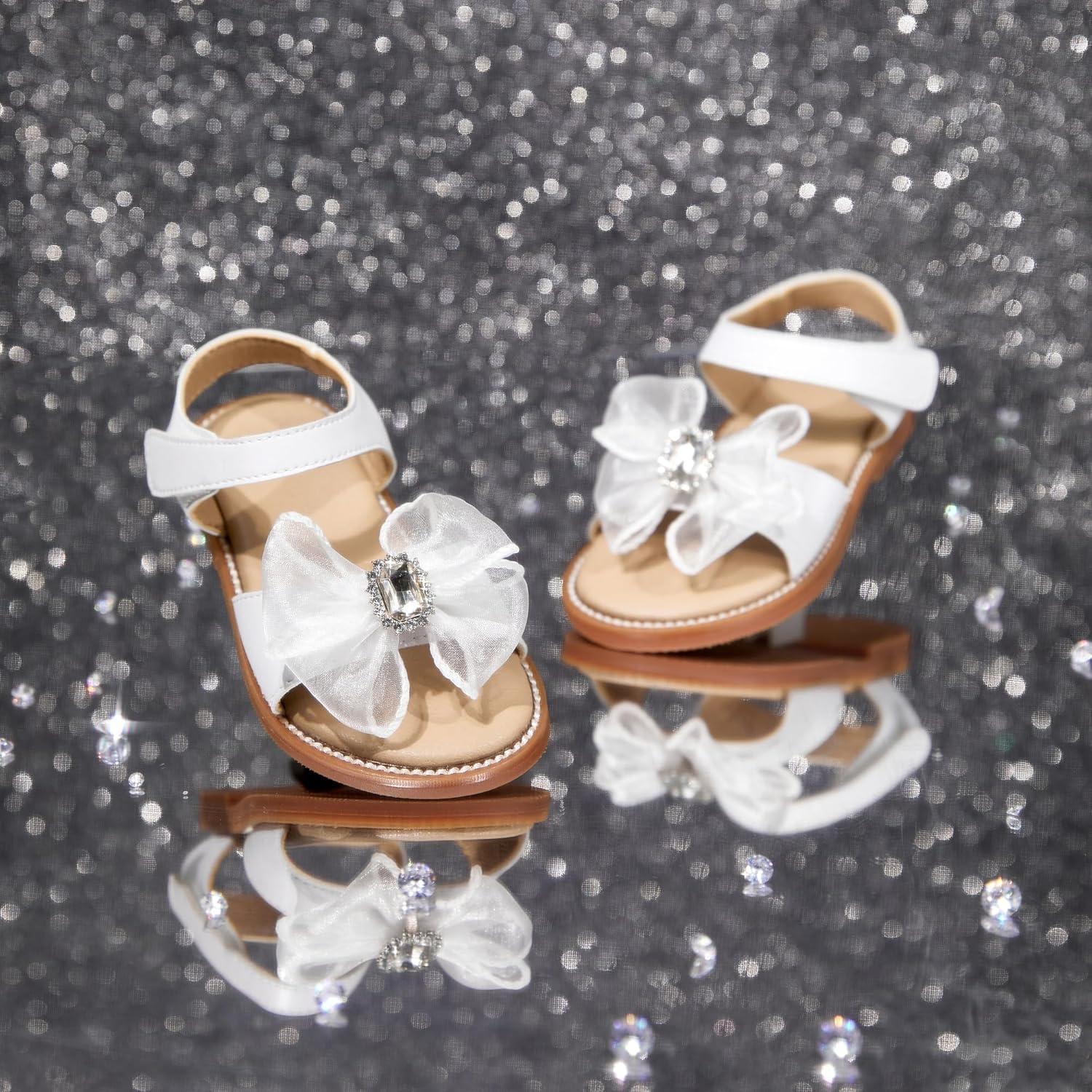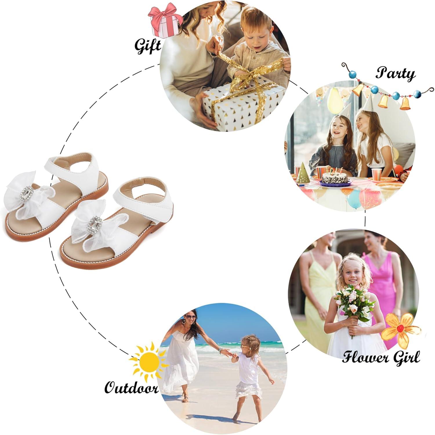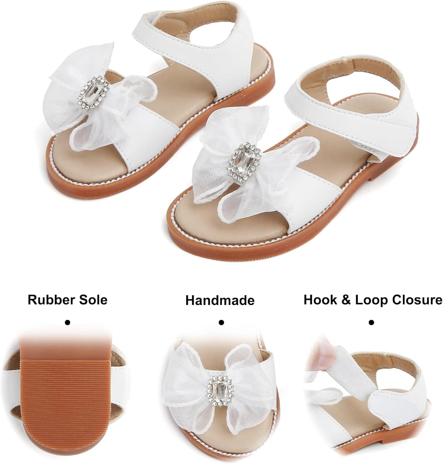 Felix & Flora Toddler Girls Sandals Soft Rubber Flats Summer Baby Flower Girl Shoes.(Bc298-fl White)