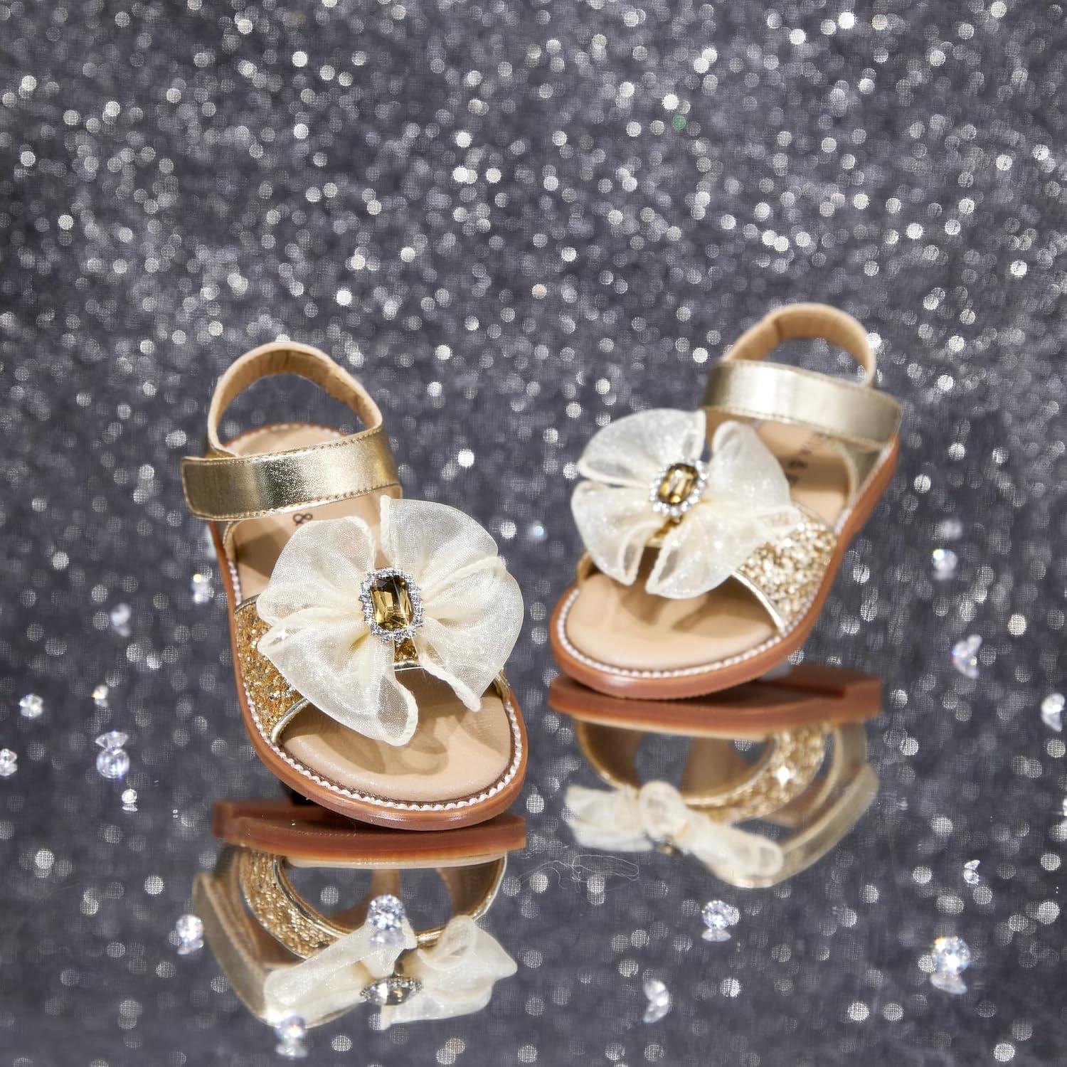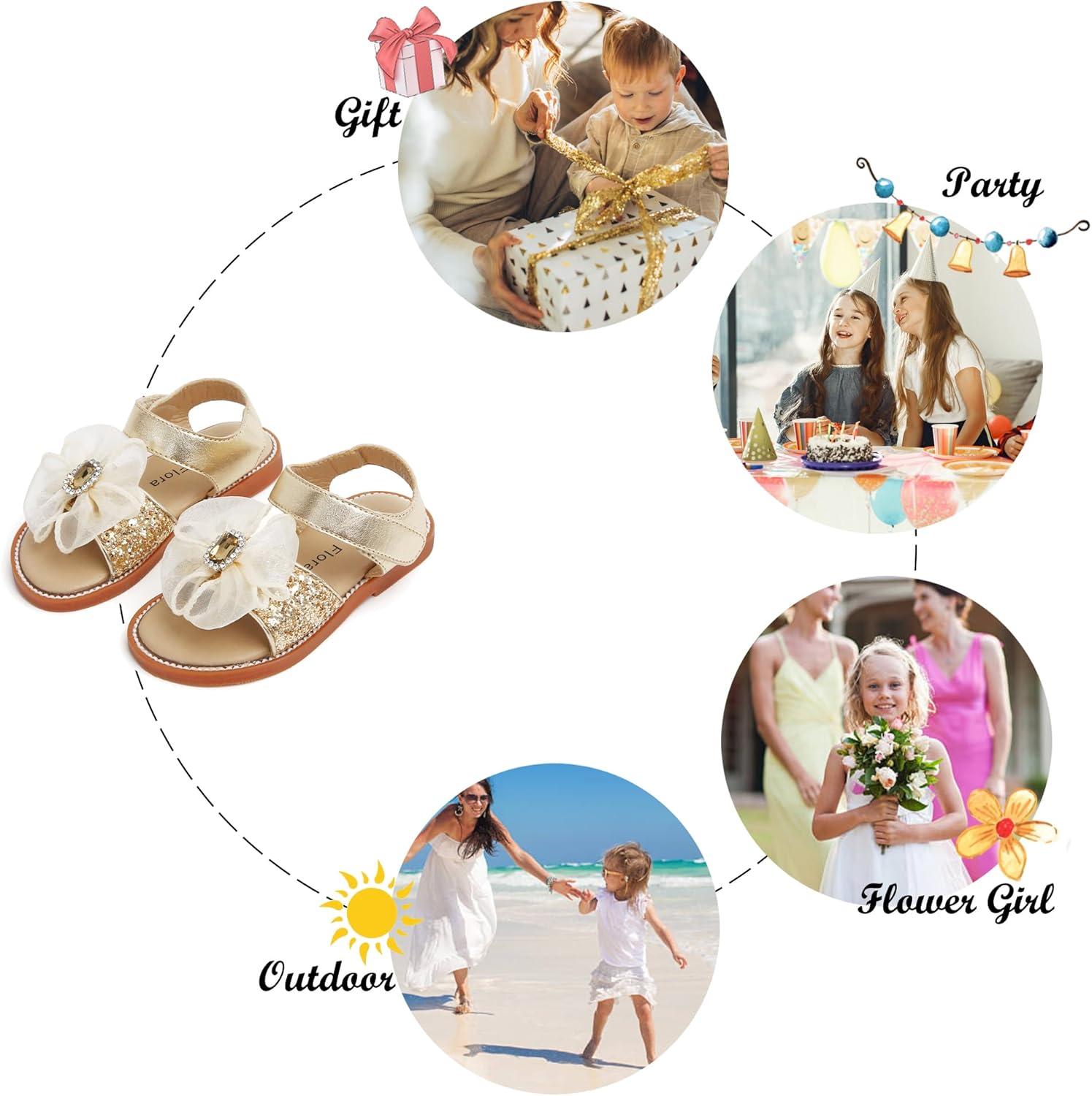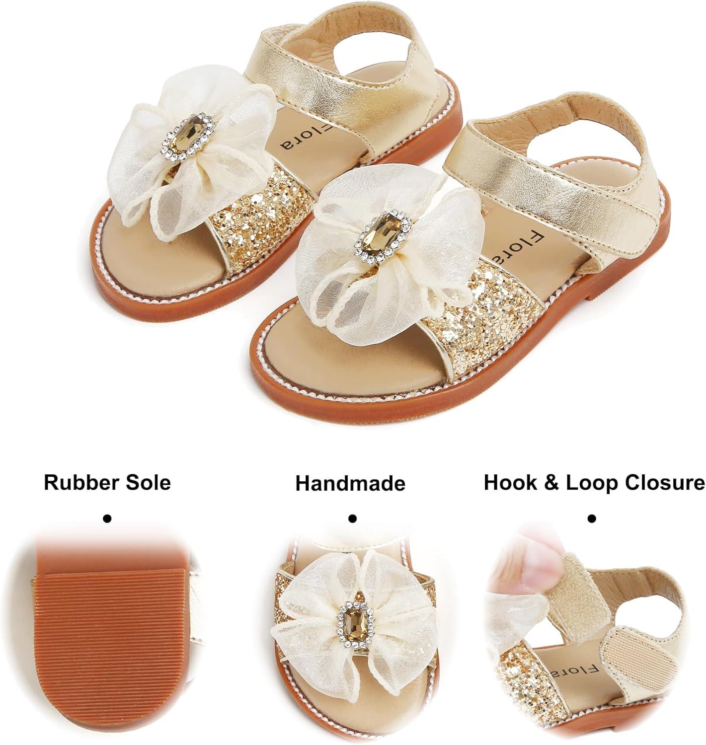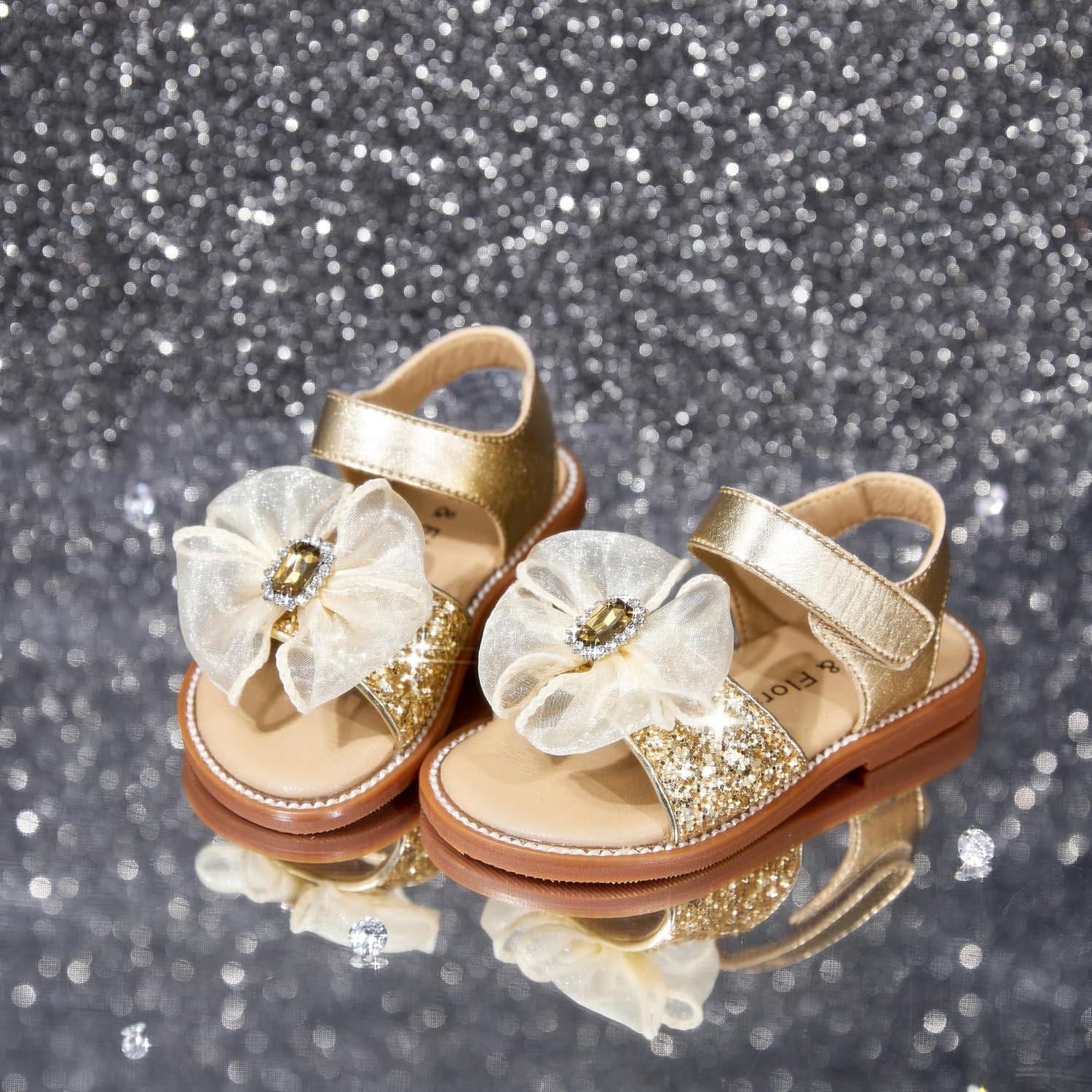 Felix & Flora Toddler Girls Sandals Soft Rubber Flats Summer Baby Flower Girl Shoes.(Bc298-glitter Gold)