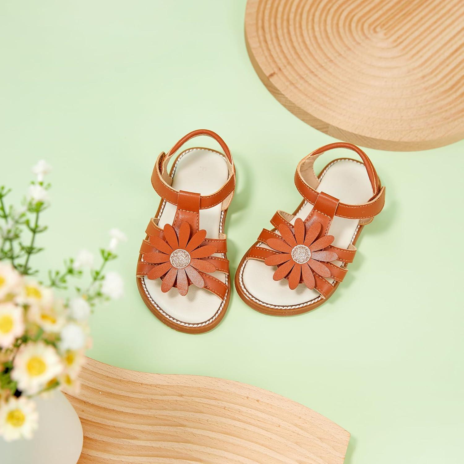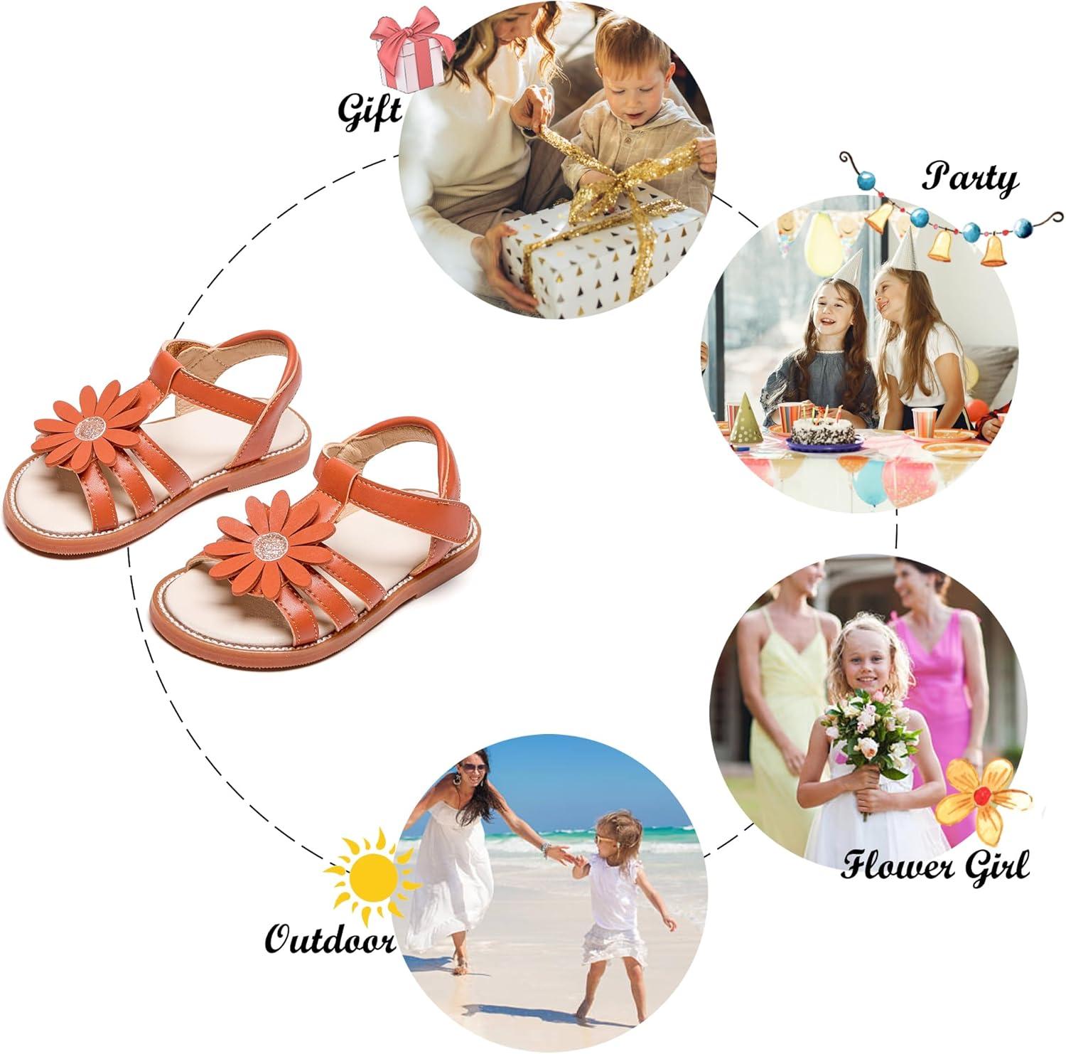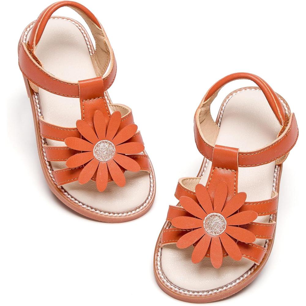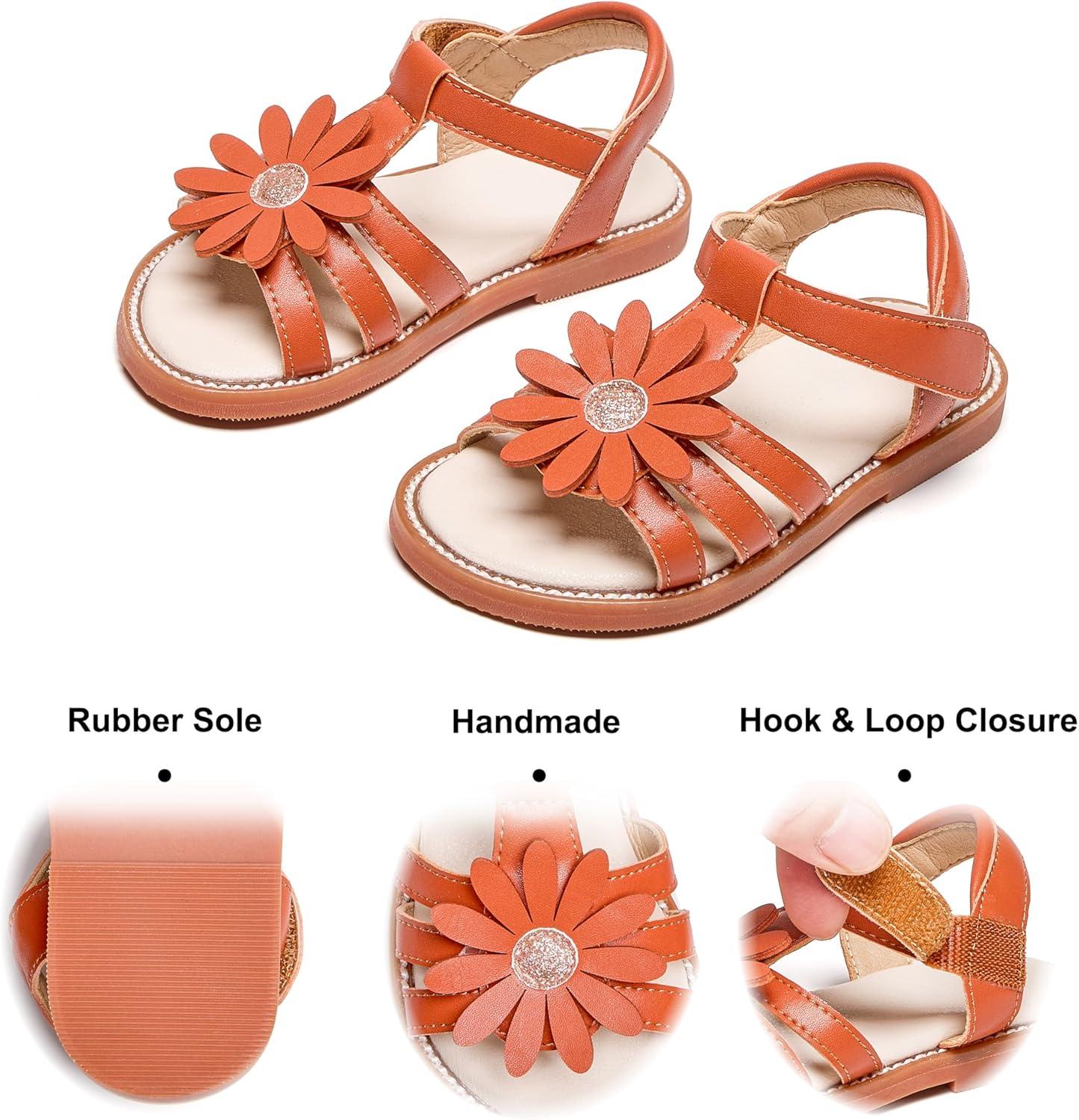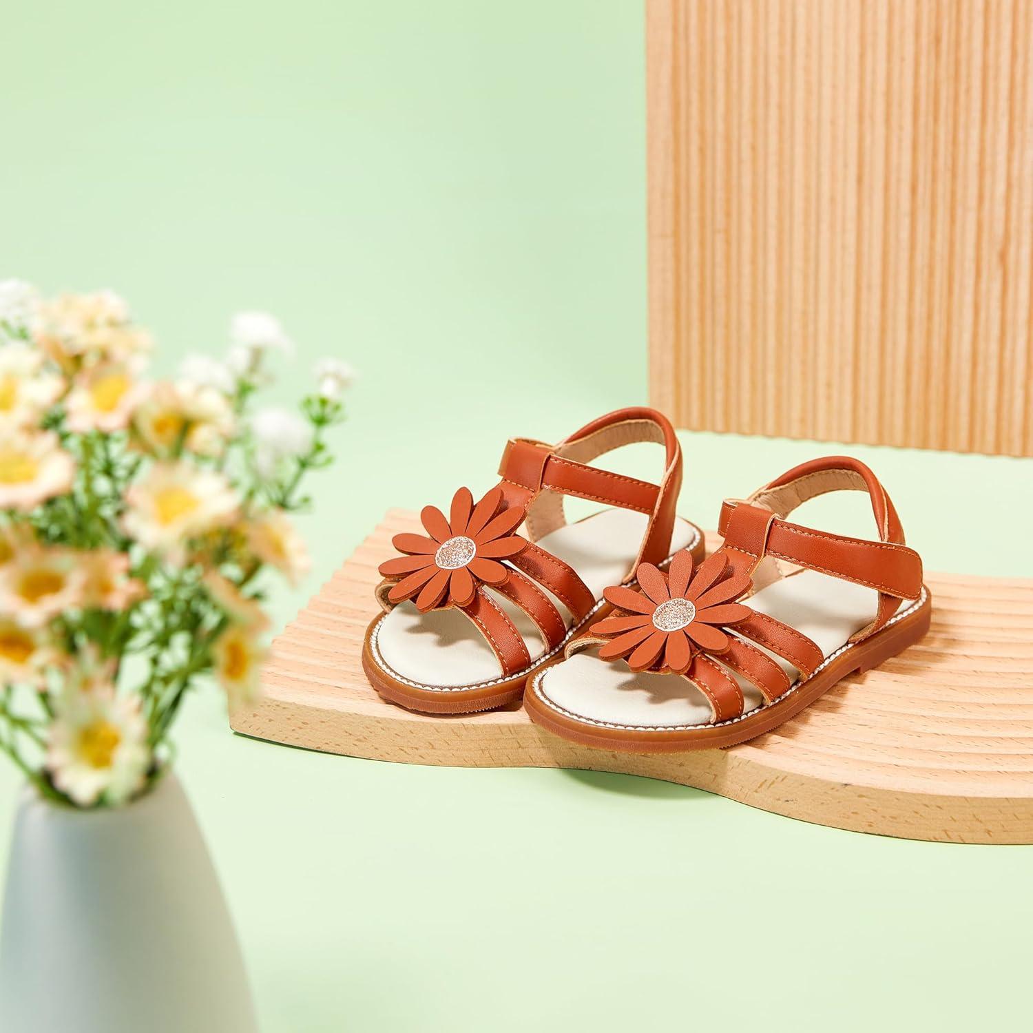 Felix & Flora Toddler Girls Sandals Soft Rubber Flats Summer Baby Flower Girl Shoes.(Bc306-brown)