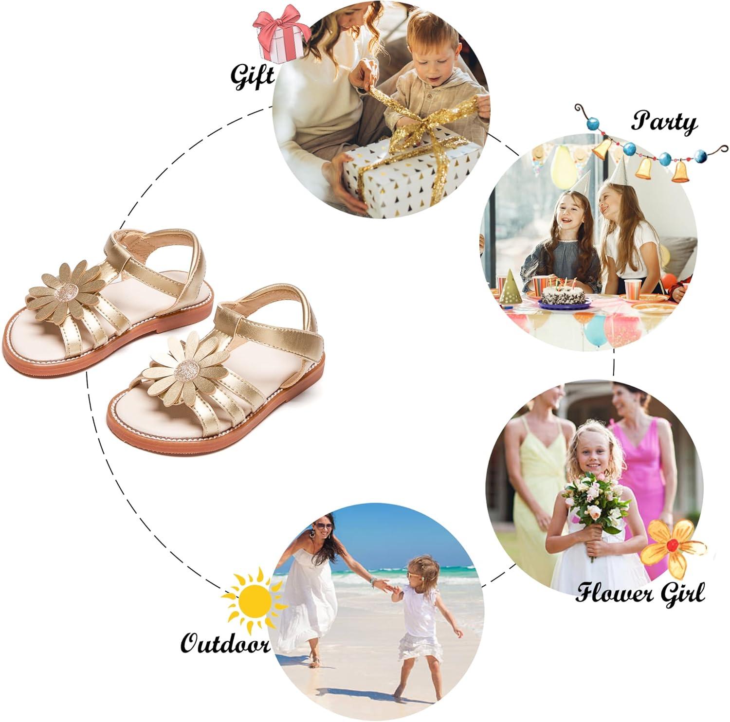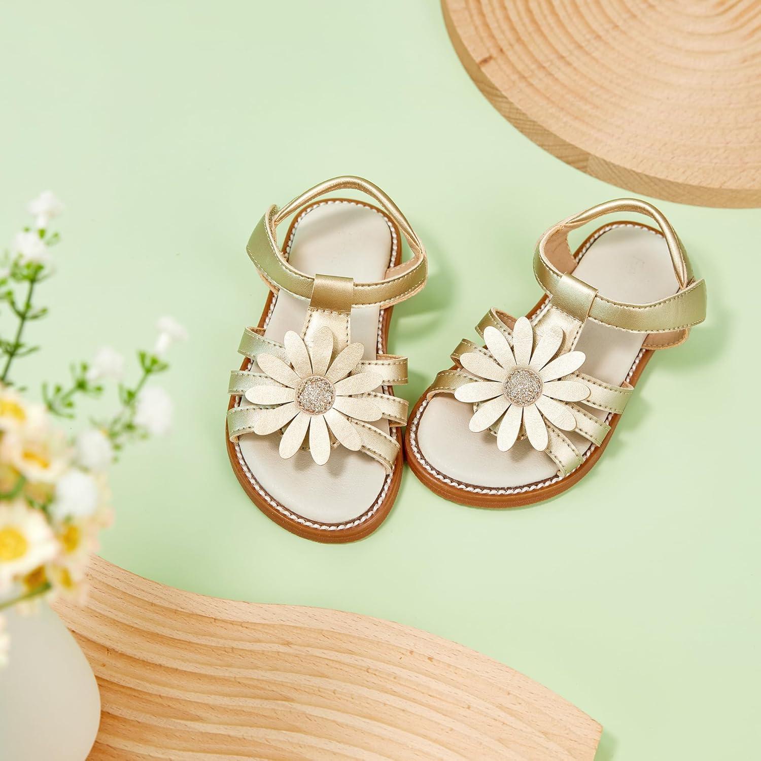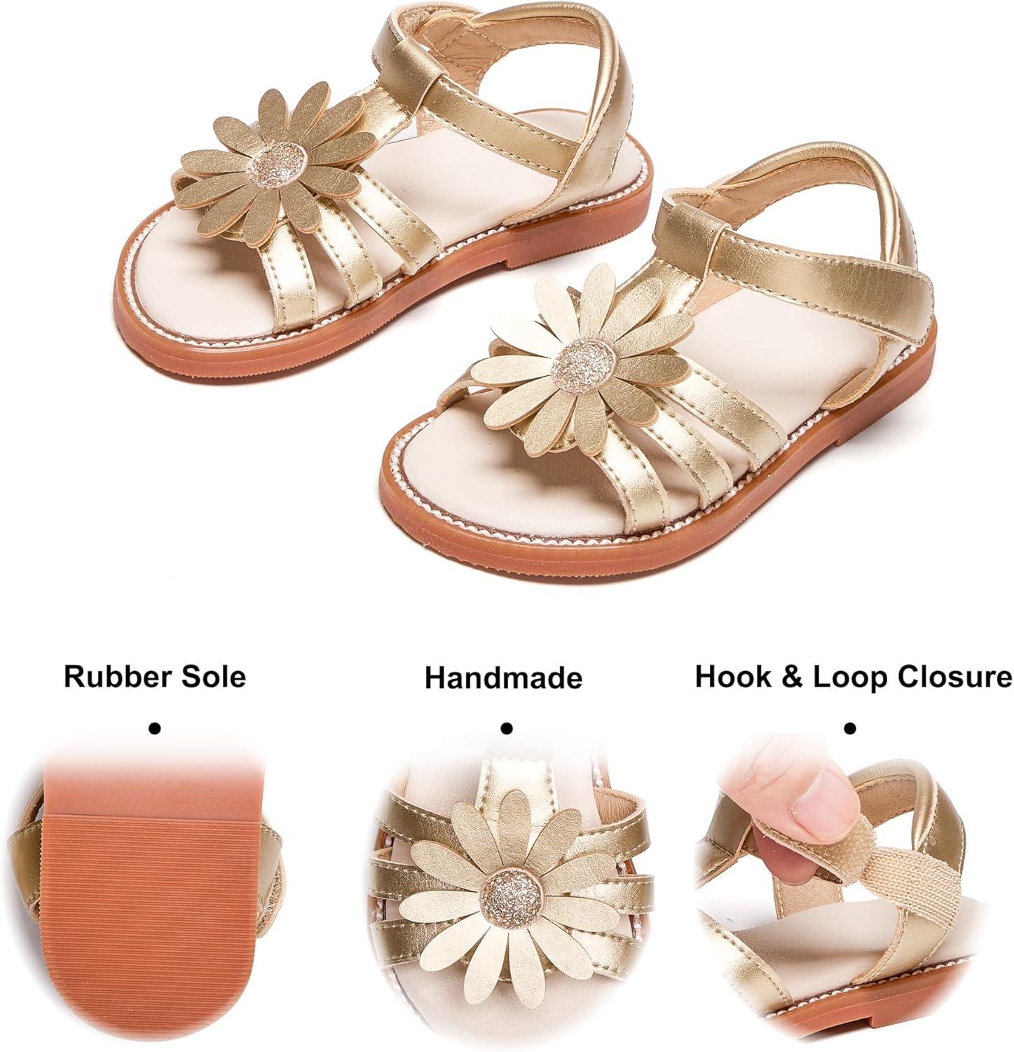 Felix & Flora Toddler Girls Sandals Soft Rubber Flats Summer Baby Flower Girl Shoes.(Bc306-gold)