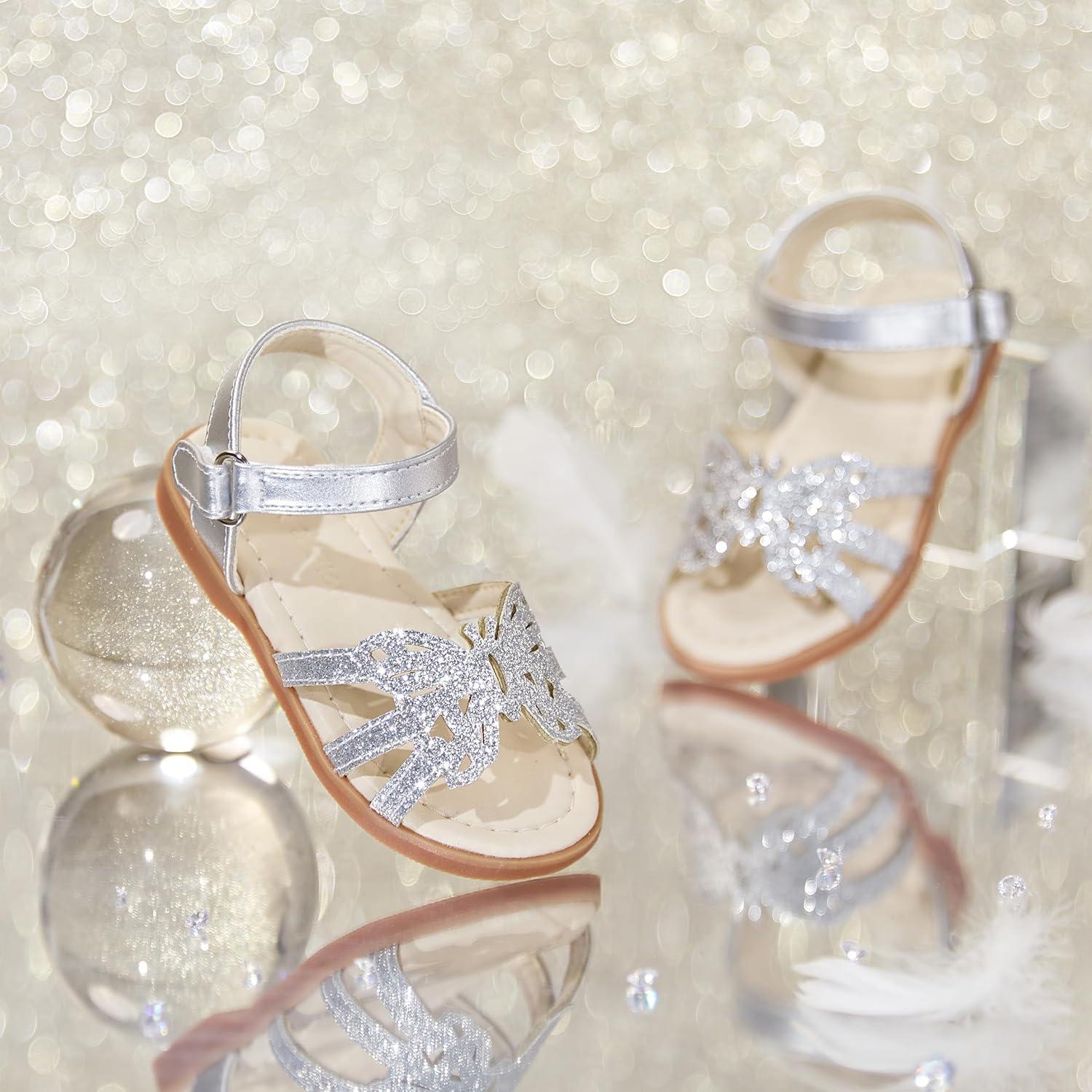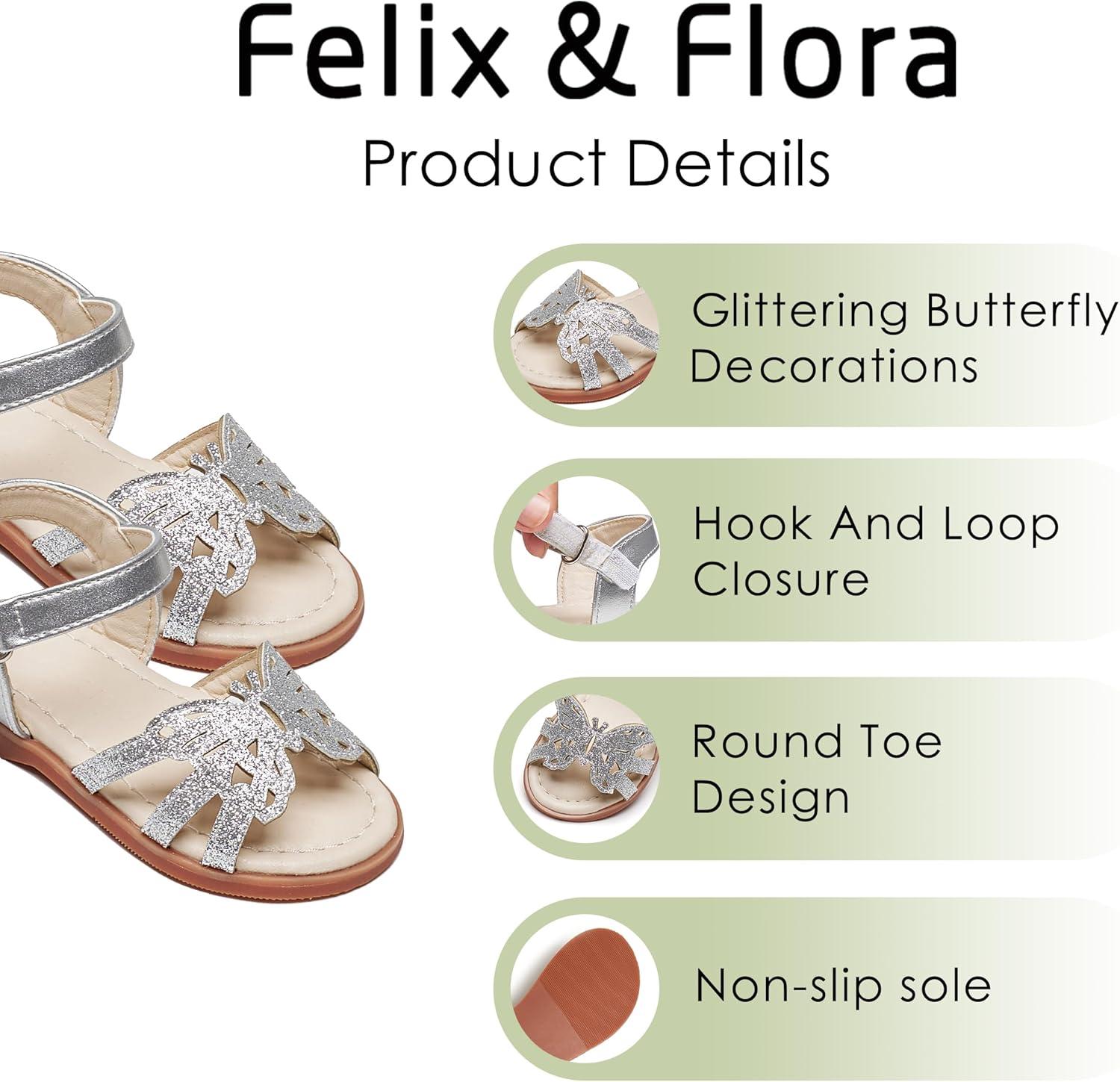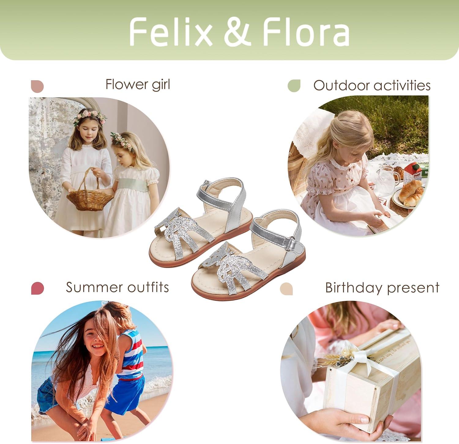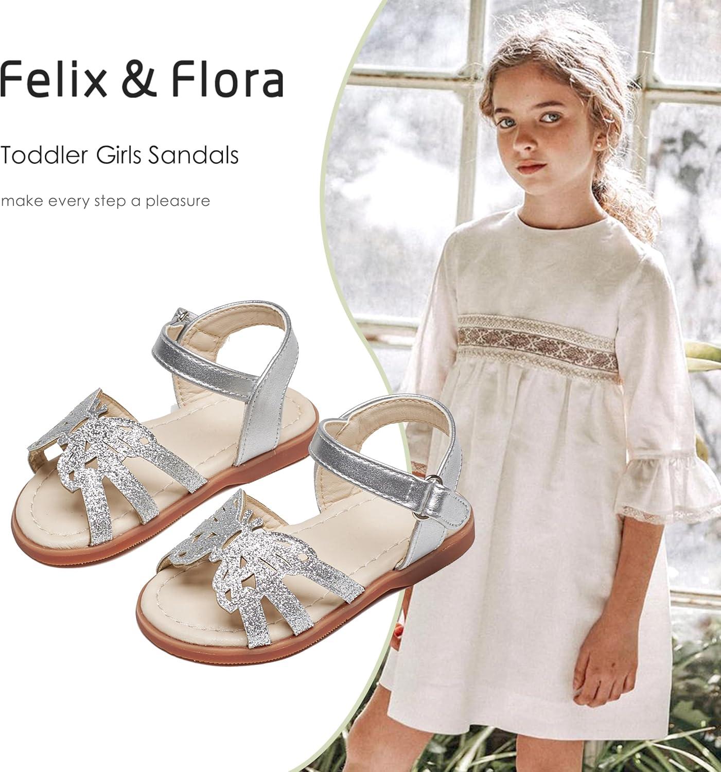 Felix & Flora Toddler Girls Sandals Soft Rubber Flats Summer Baby Flower Girl Shoes.(Bc315-silver)