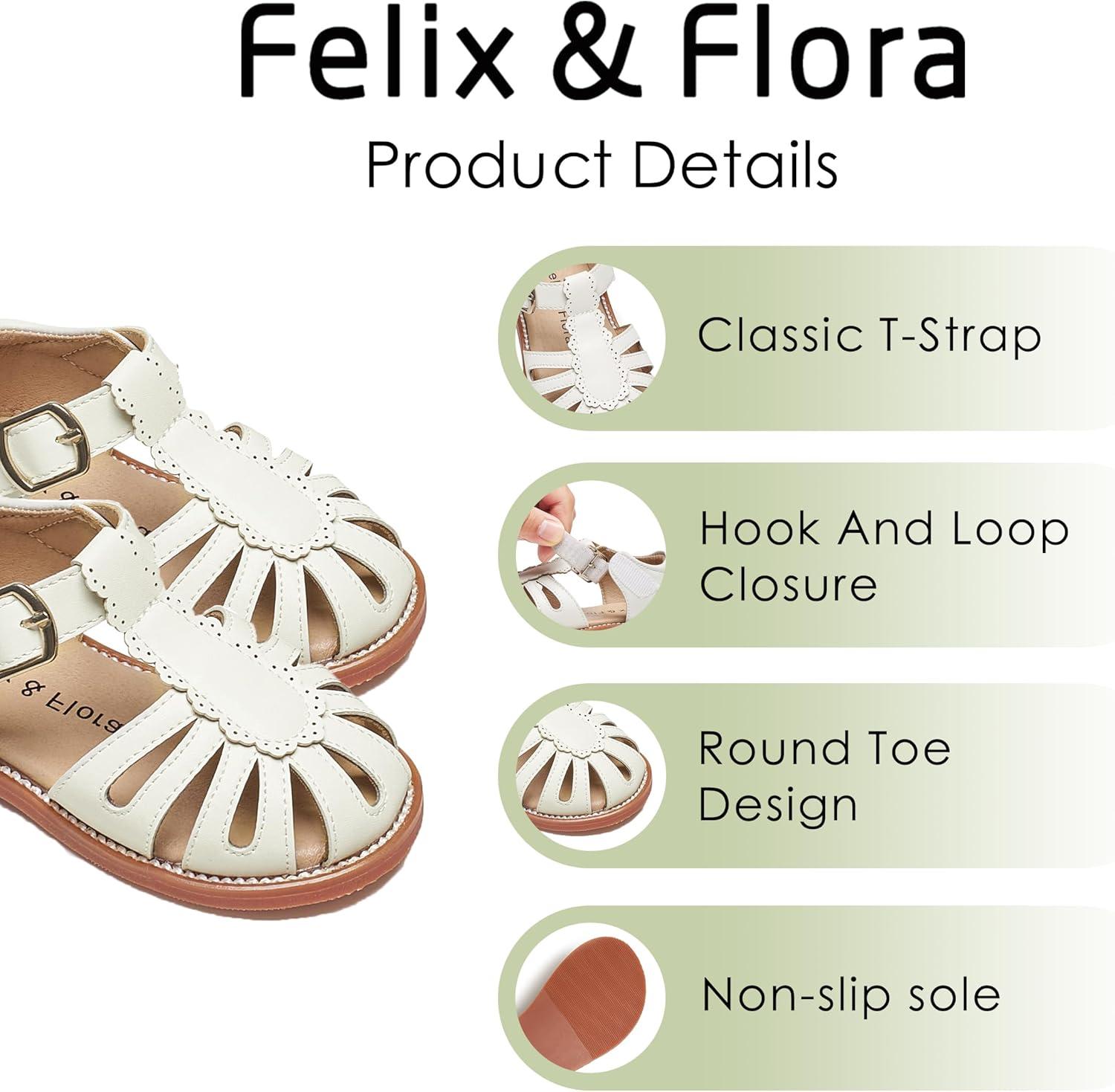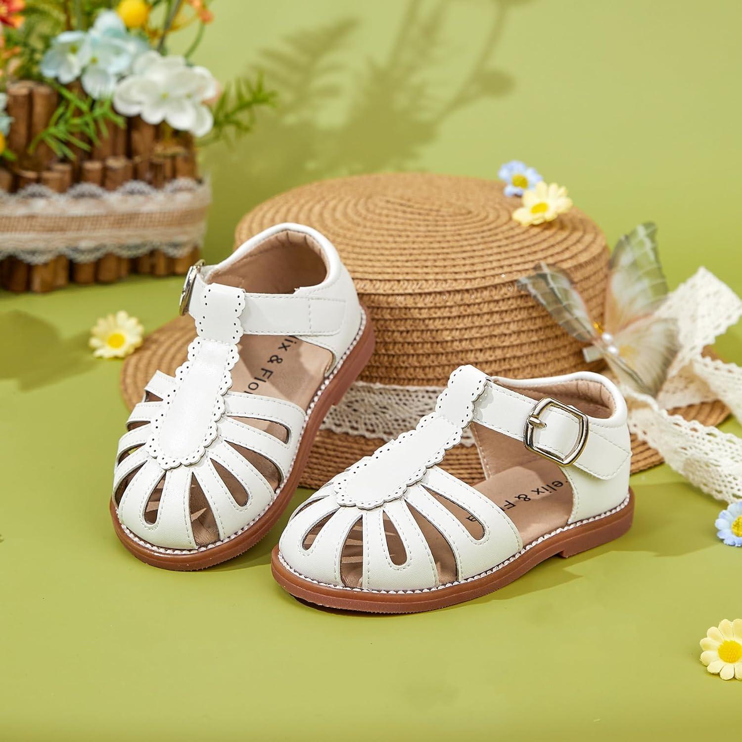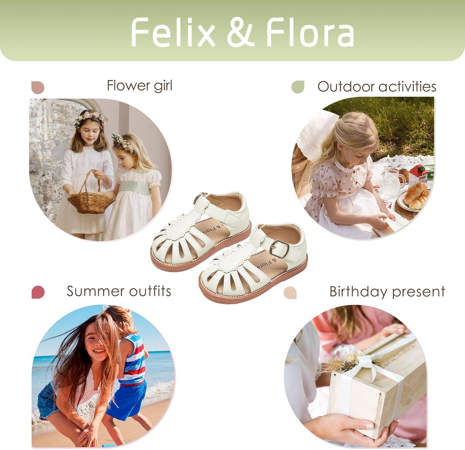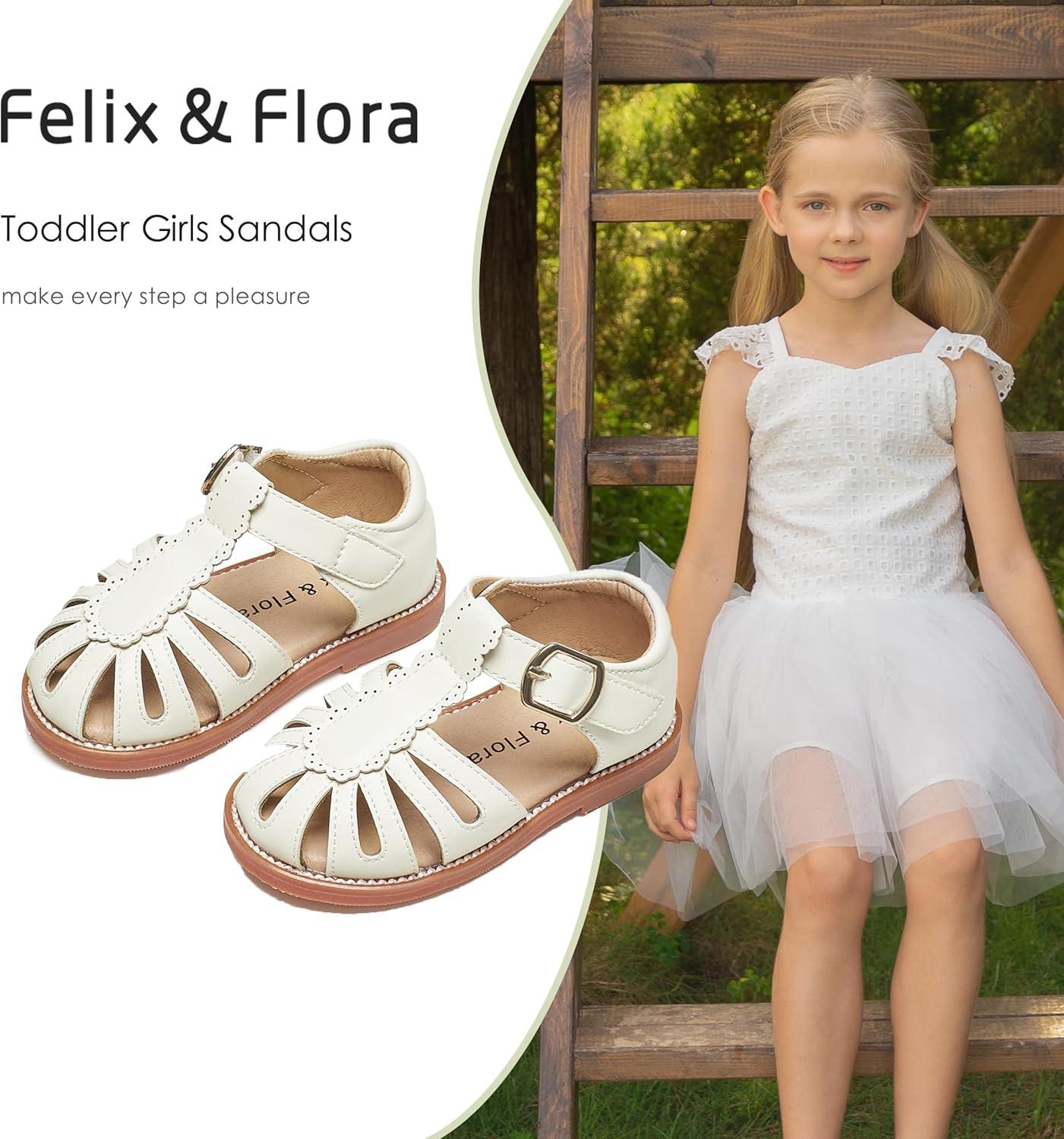 Felix & Flora Toddler Girls Sandals Soft Rubber Princess Flat Shoes Summer Flower Girl Shoes(Bc262-cream White)