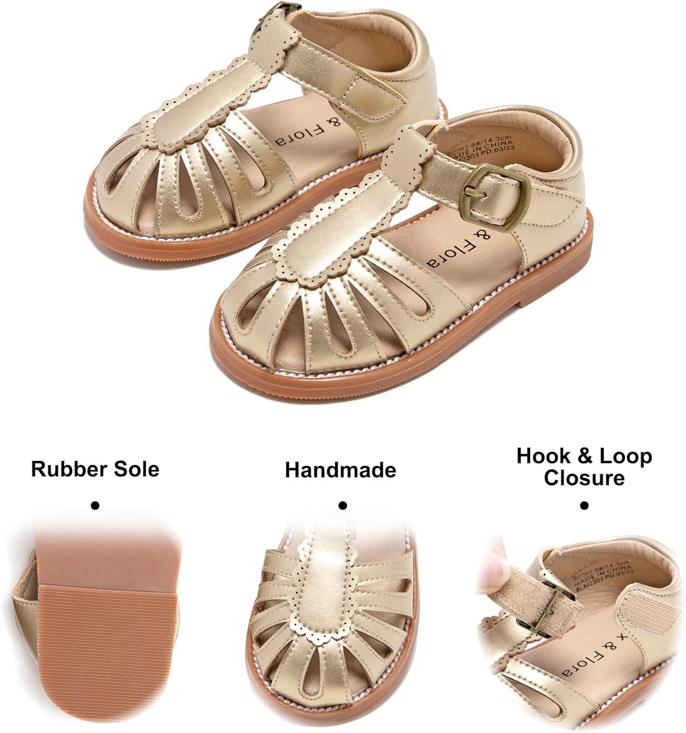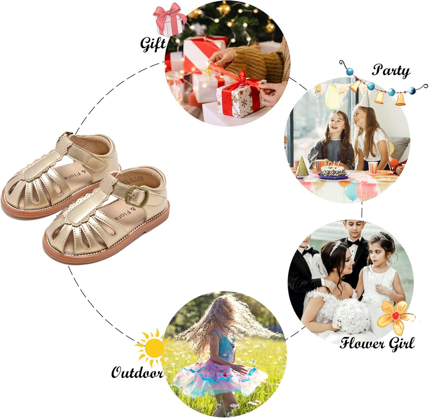 Felix & Flora Toddler Girls Sandals Soft Rubber Princess Flat Shoes Summer Flower Girl Shoes(Bc262-gold)