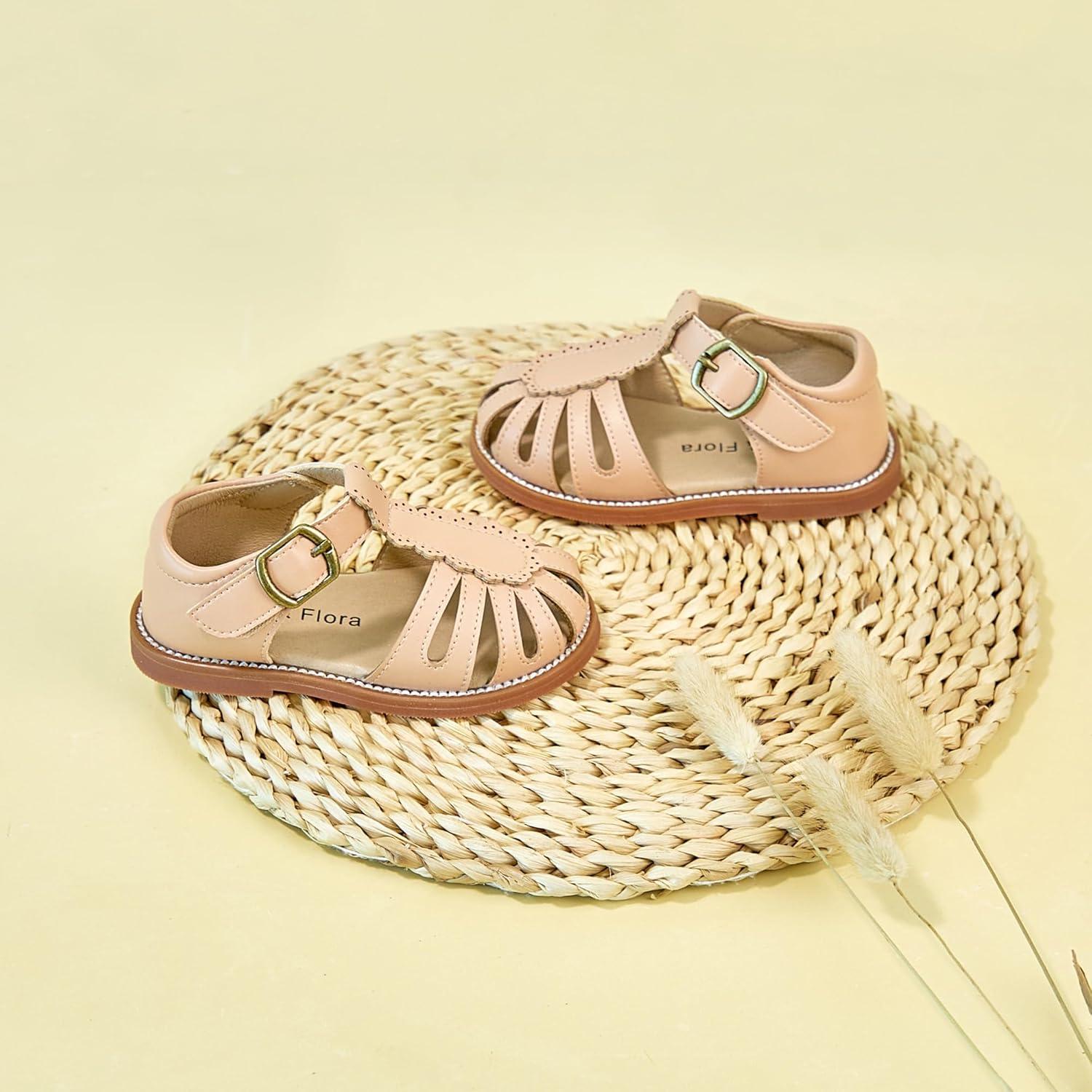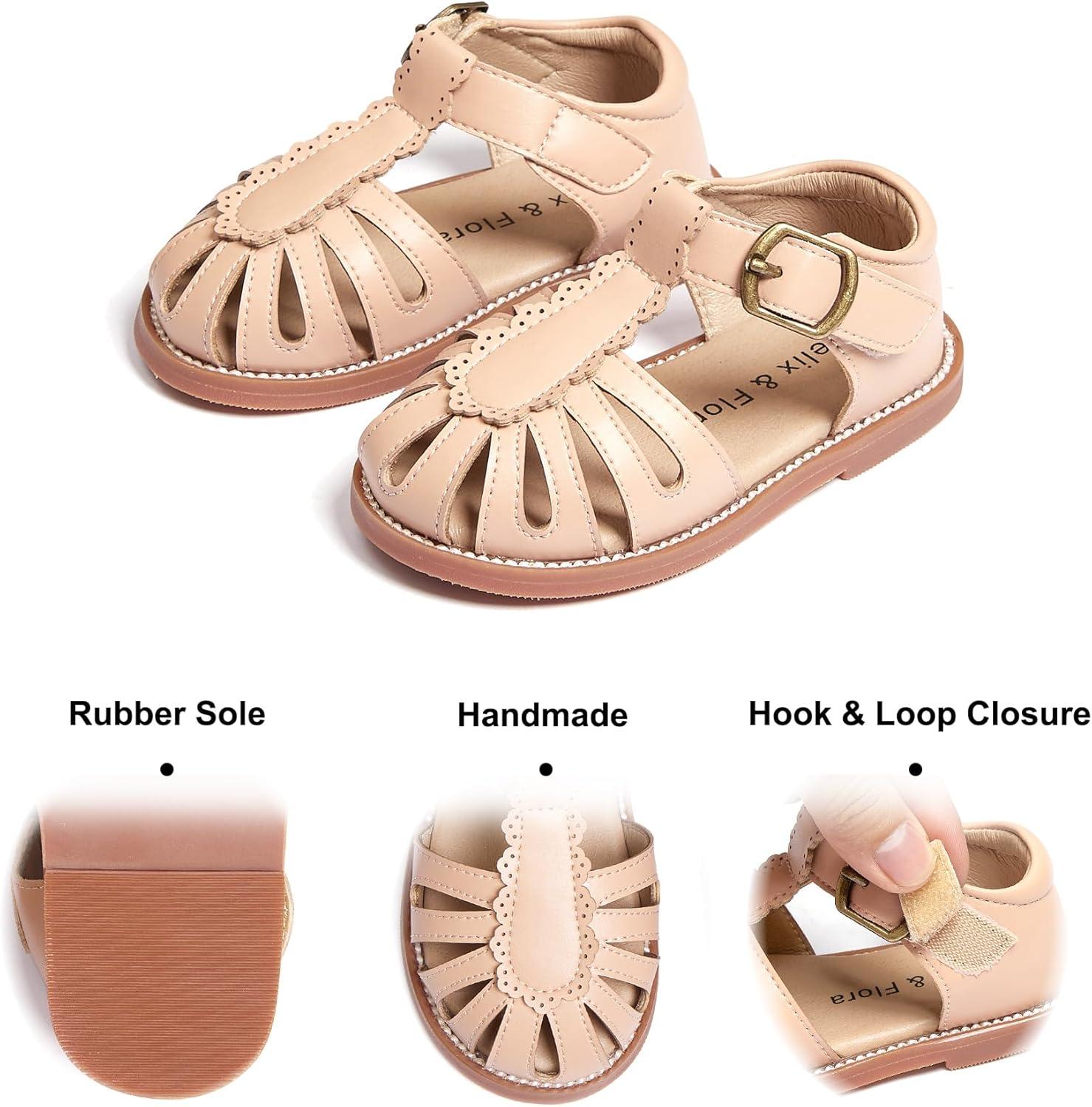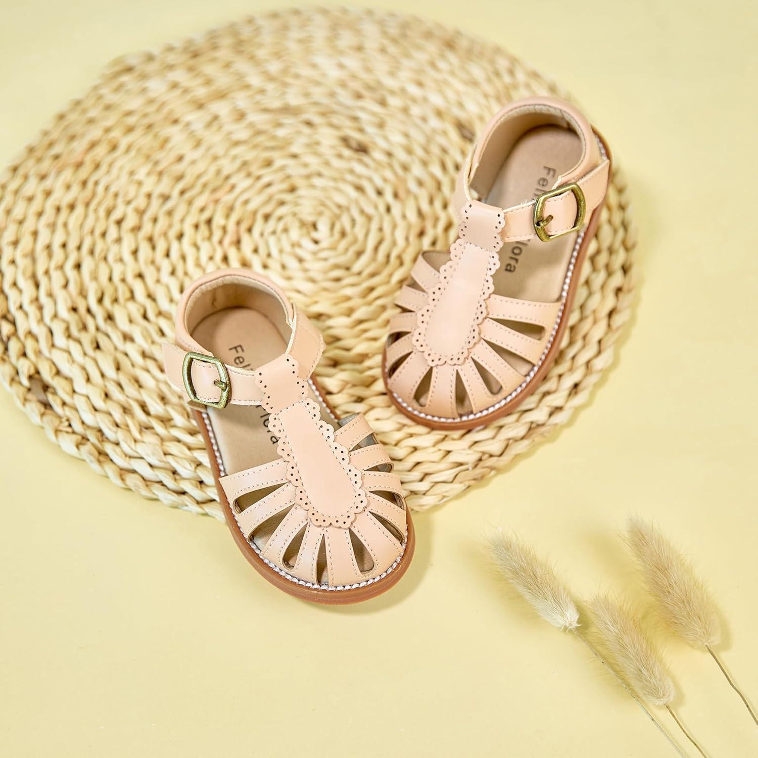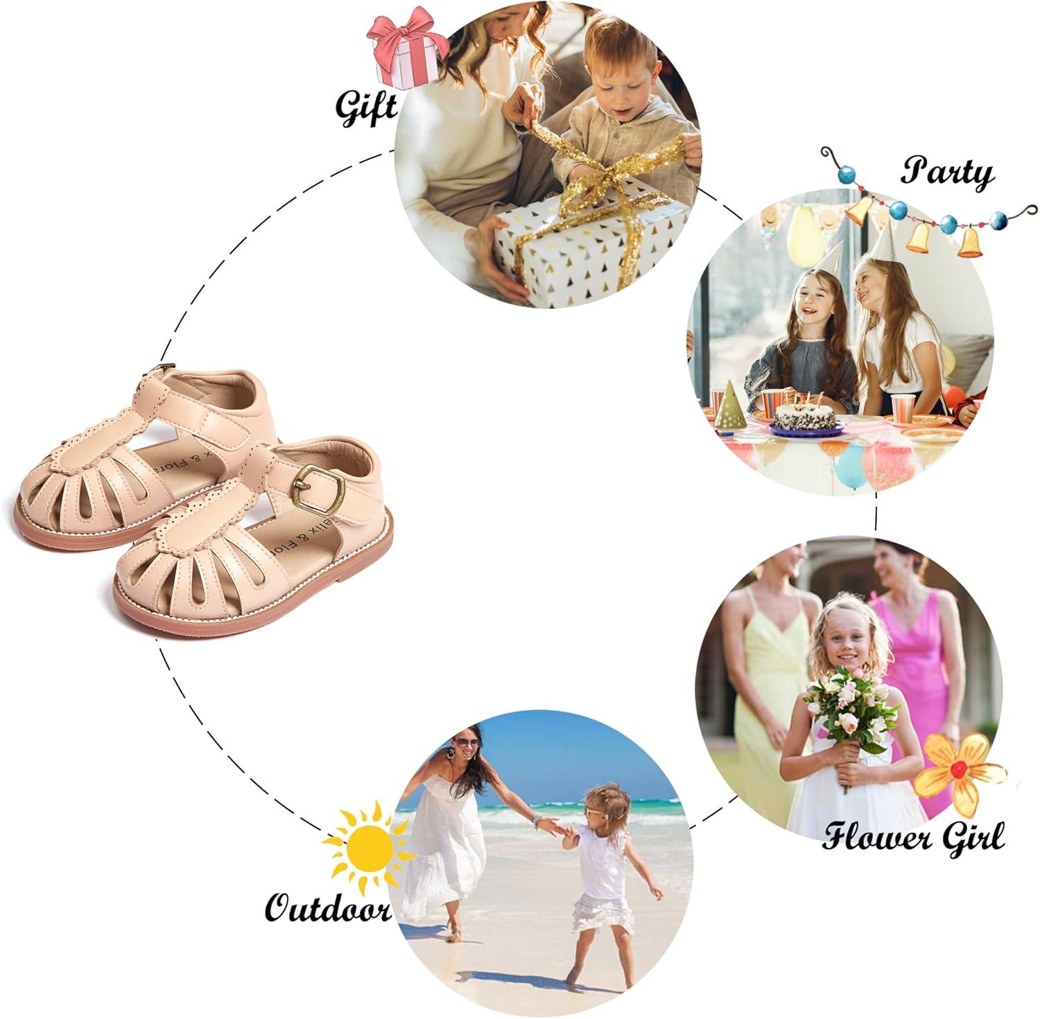 Felix & Flora Toddler Girls Sandals Soft Rubber Princess Flat Shoes Summer Flower Girl Shoes(Bc262-nude)