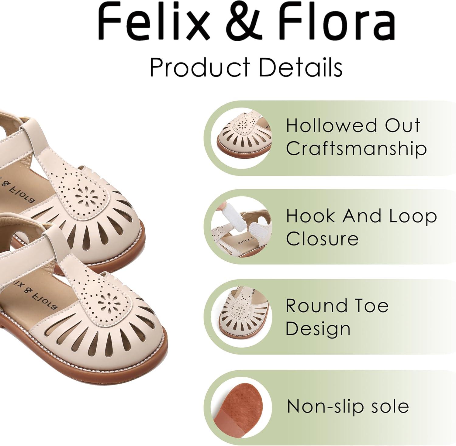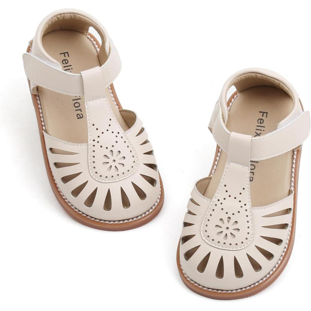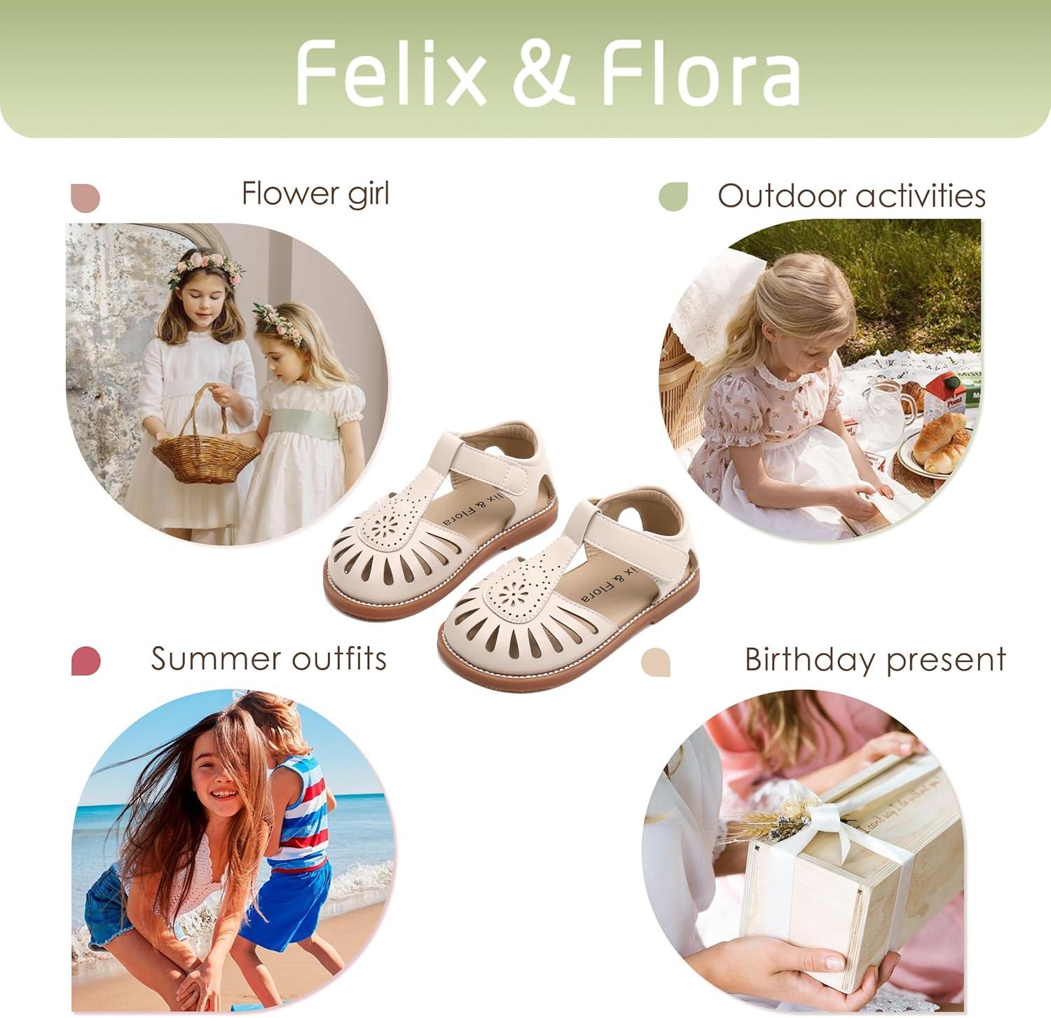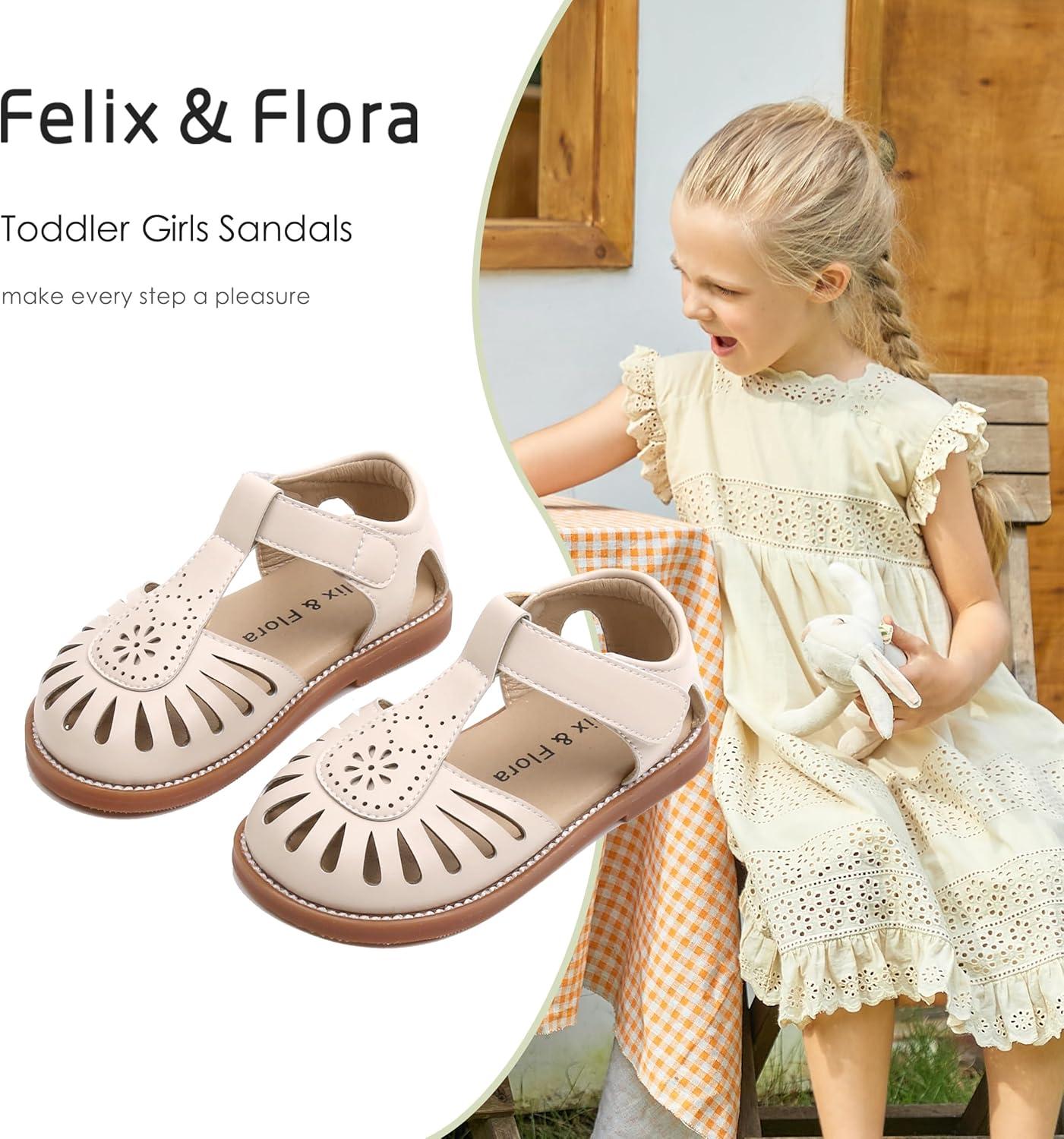 Felix & Flora Toddler Girls Sandals Soft Rubber Princess Flat Shoes Summer Flower Girl Shoes(Bc289-beige)