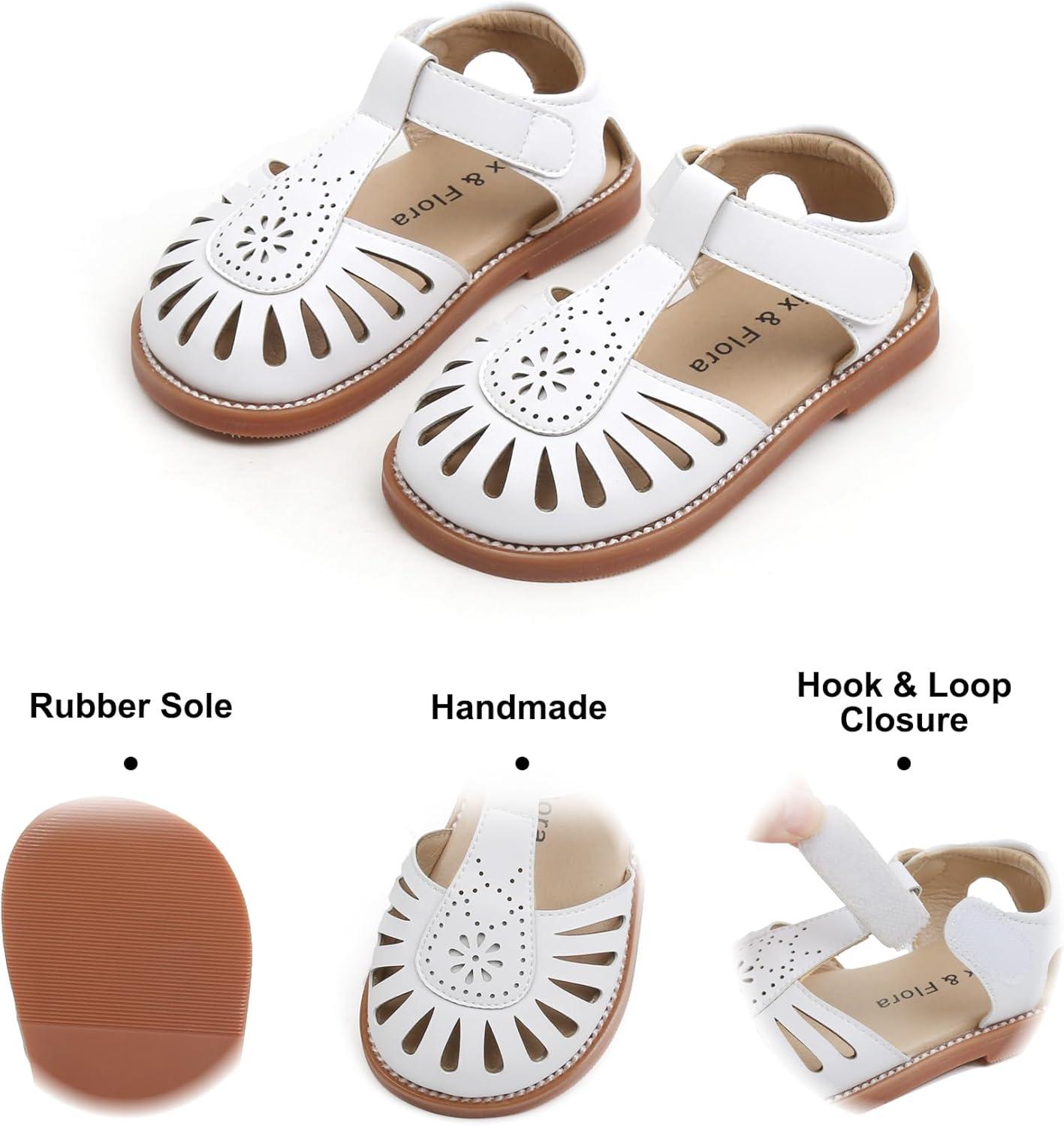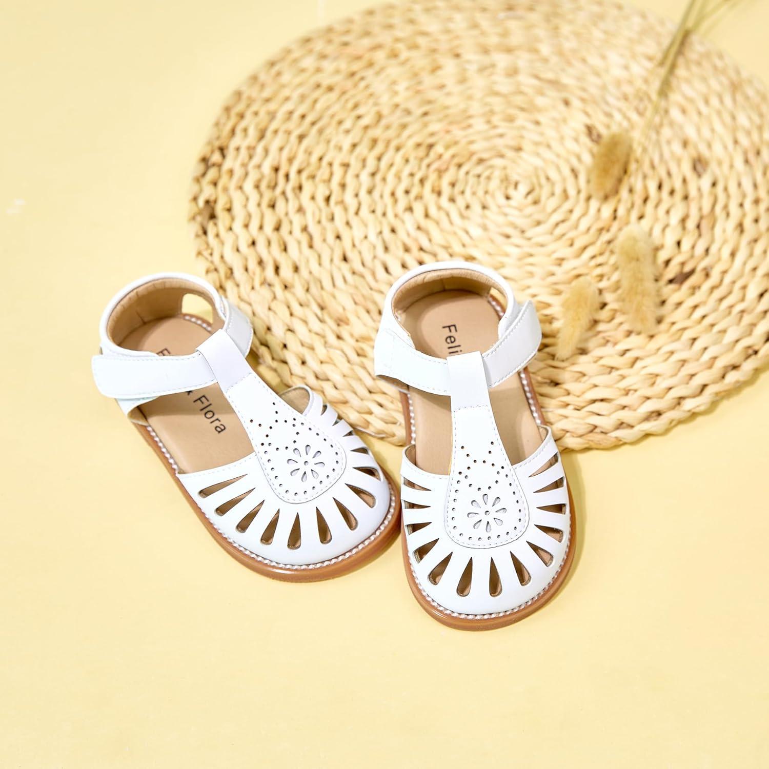 Felix & Flora Toddler Girls Sandals Soft Rubber Princess Flat Shoes Summer Flower Girl Shoes(Bc289-white)