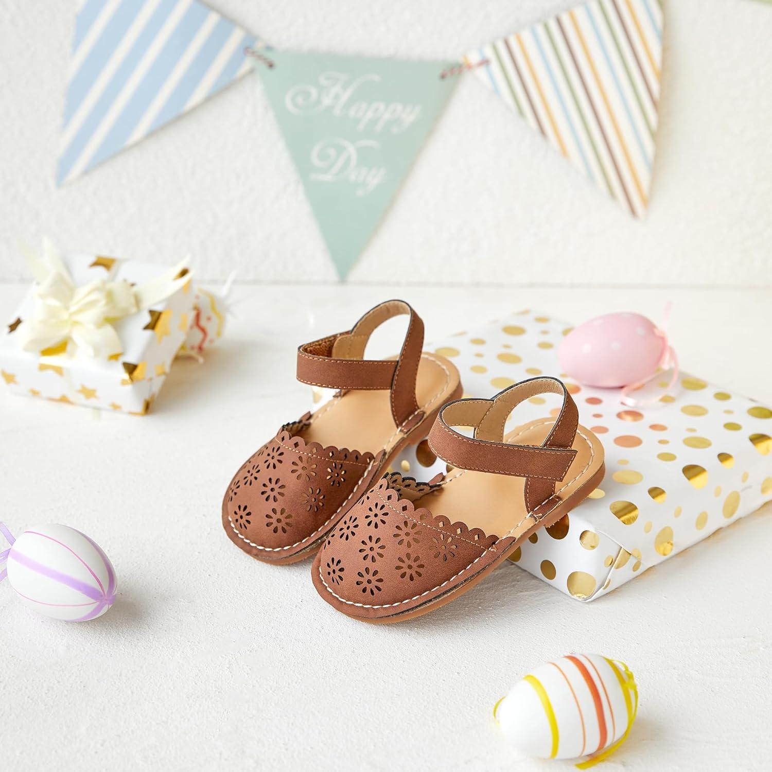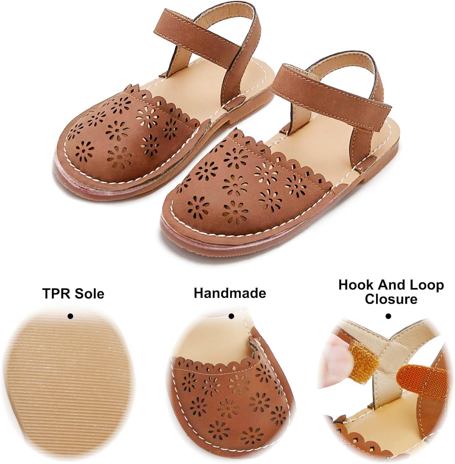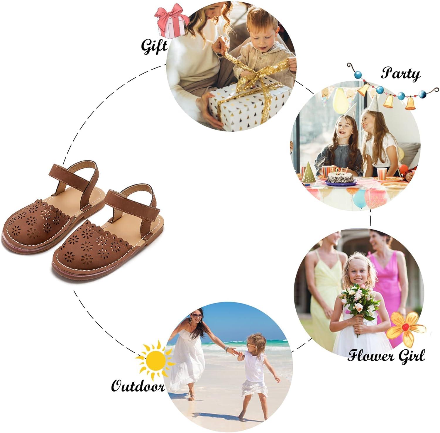 Felix & Flora Toddler Girls Sandals Soft Rubber Princess Flat Shoes Summer Flower Girl Shoes(Bc299-brown)