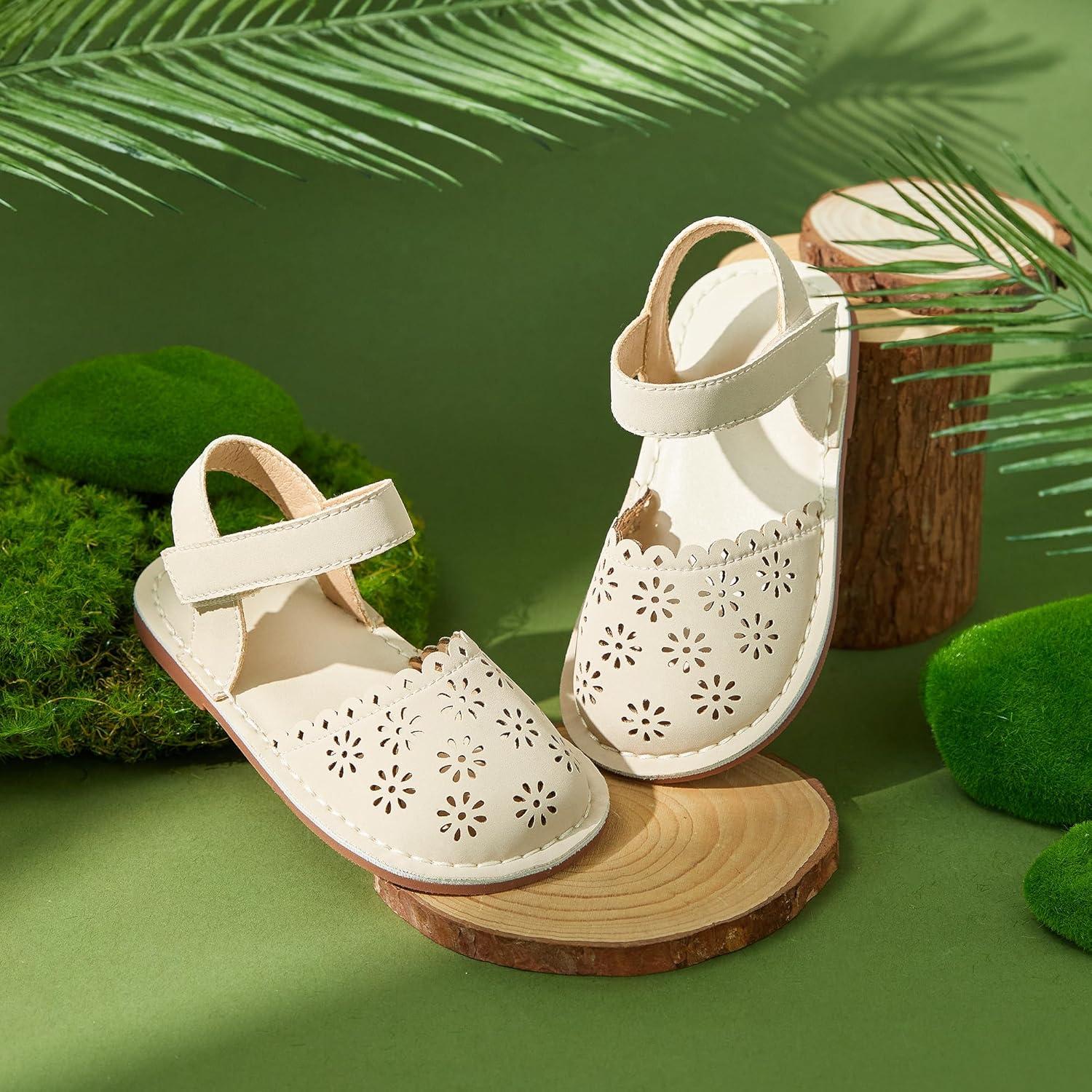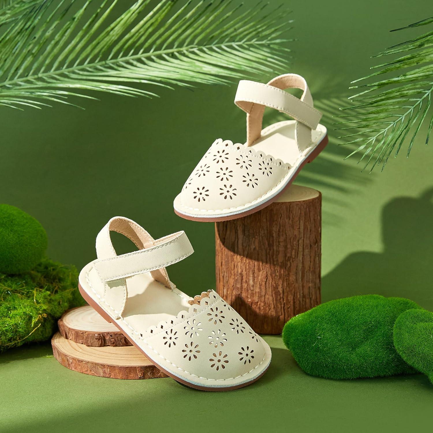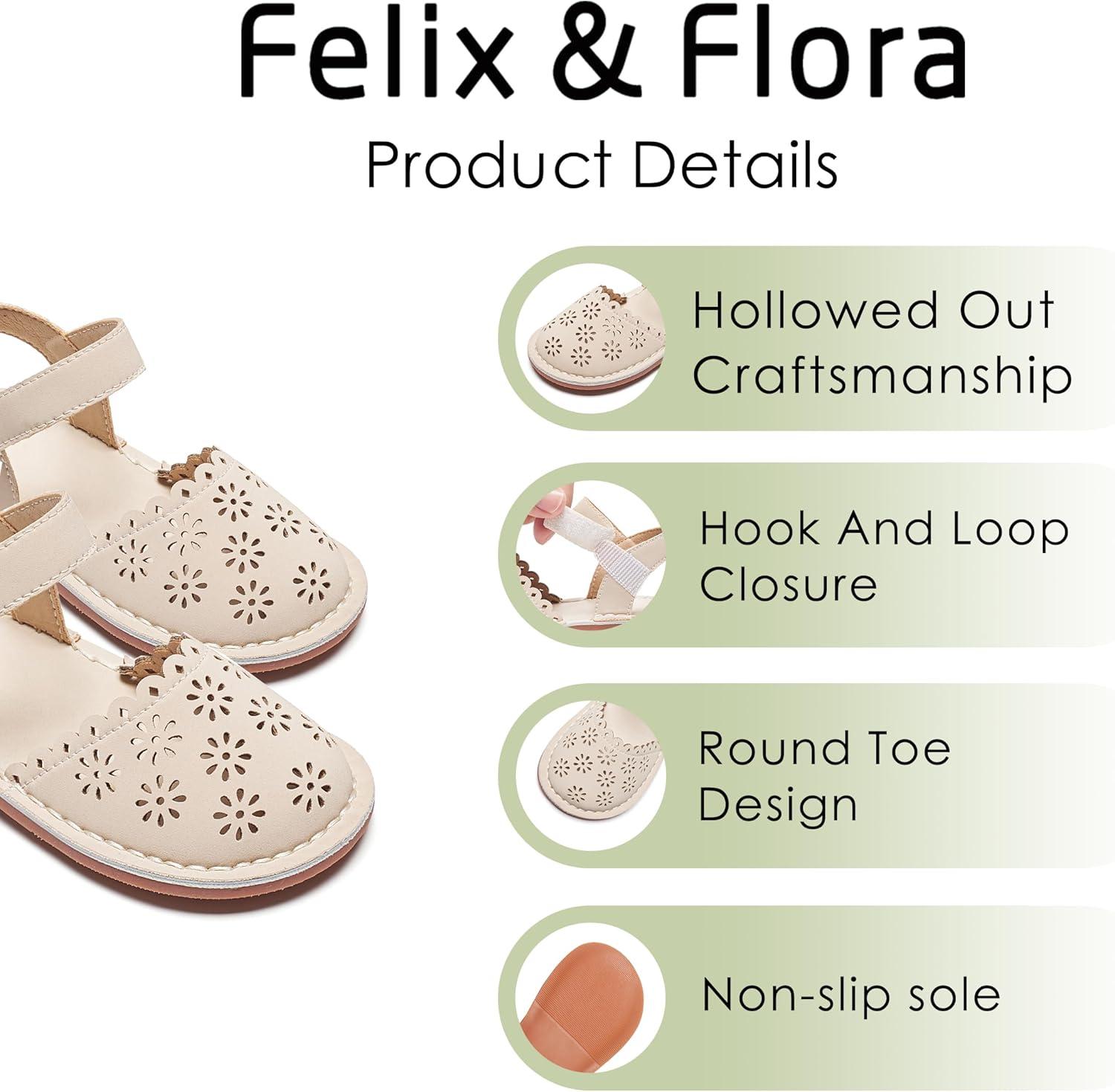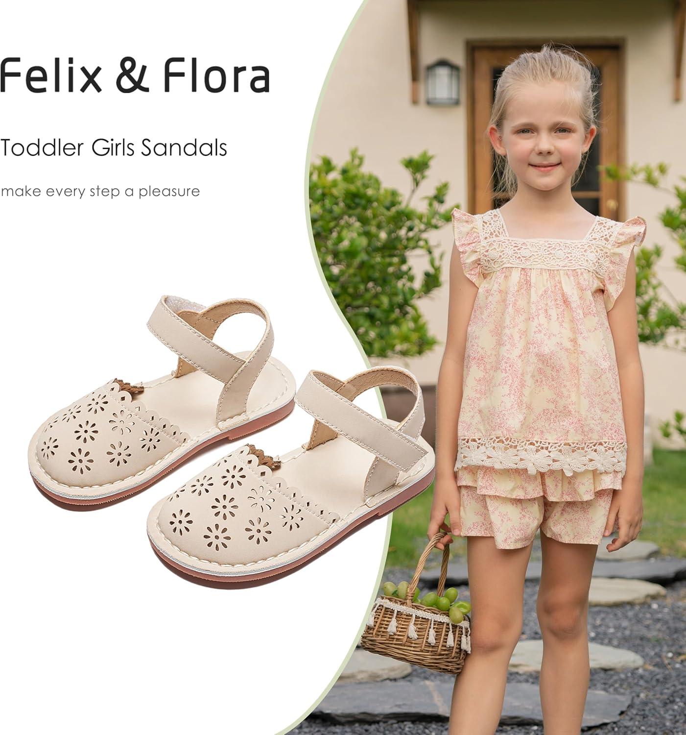 Felix & Flora Toddler Girls Sandals Soft Rubber Princess Flat Shoes Summer Flower Girl Shoes(Bc299-moonbeam)
