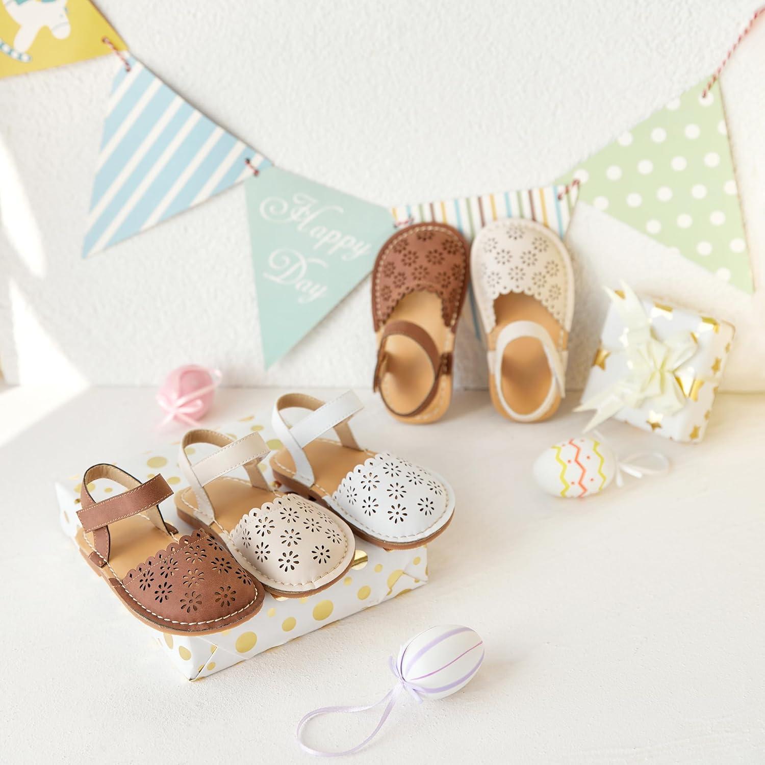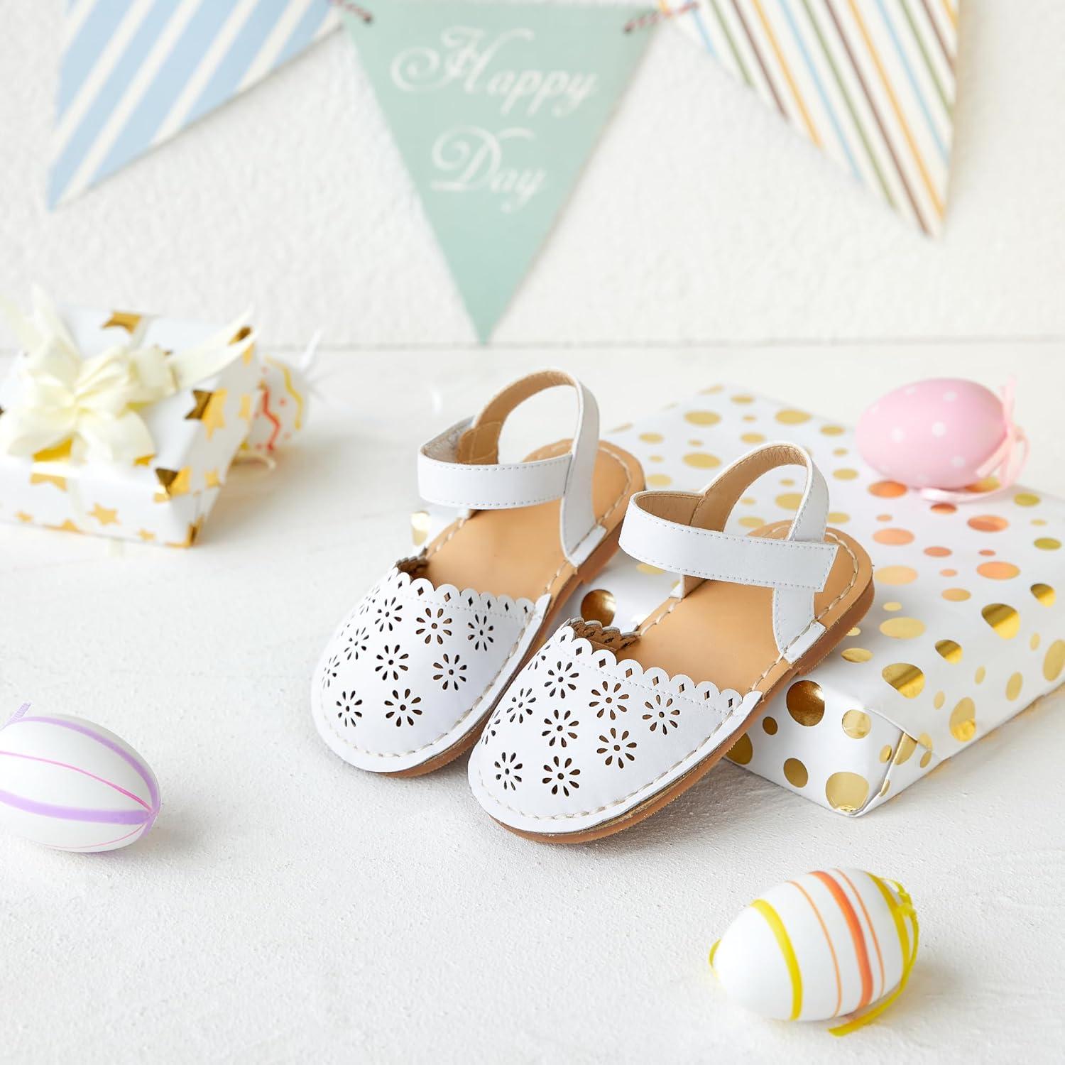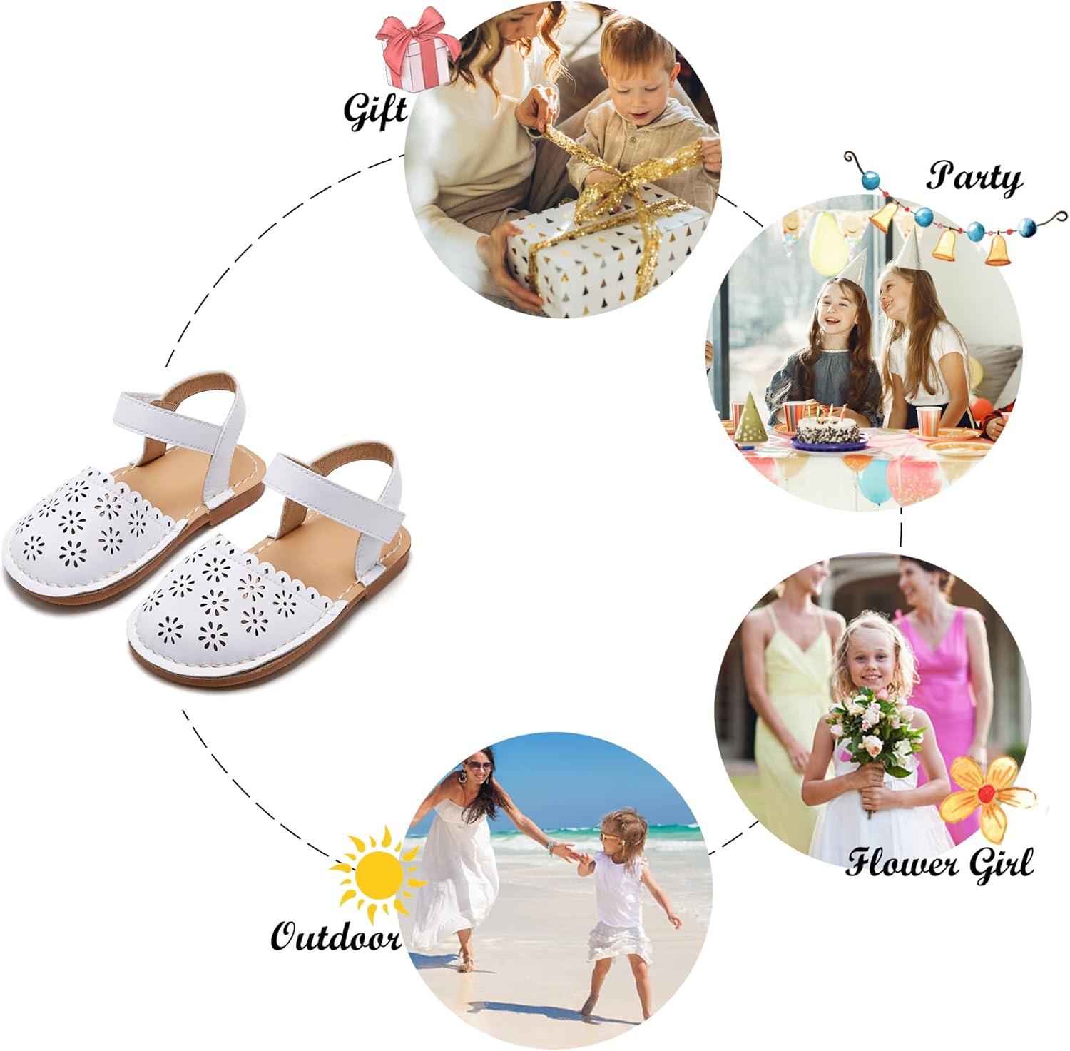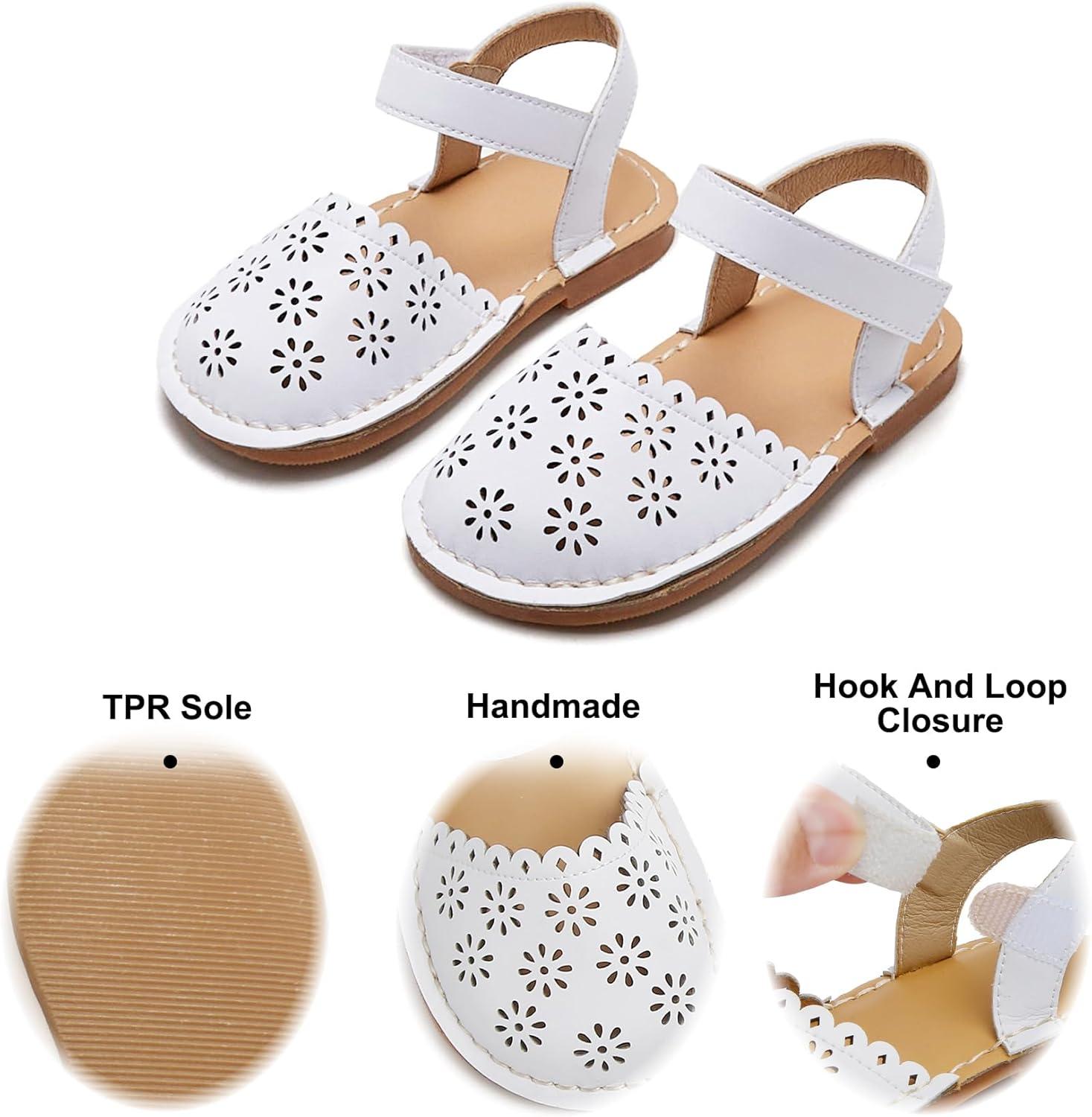Felix & Flora Toddler Girls Sandals Soft Rubber Princess Flat Shoes Summer Flower Girl Shoes(Bc299-white)