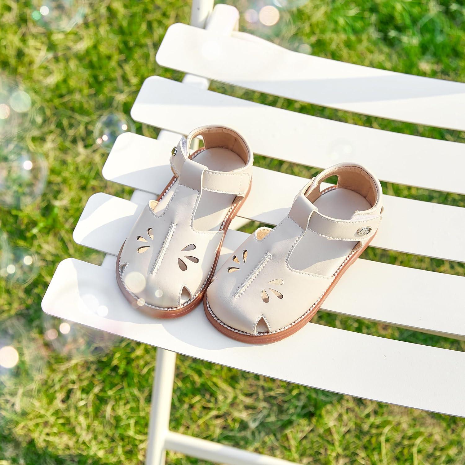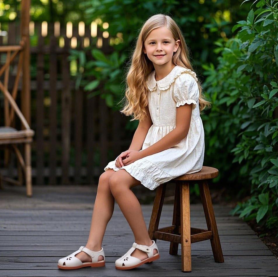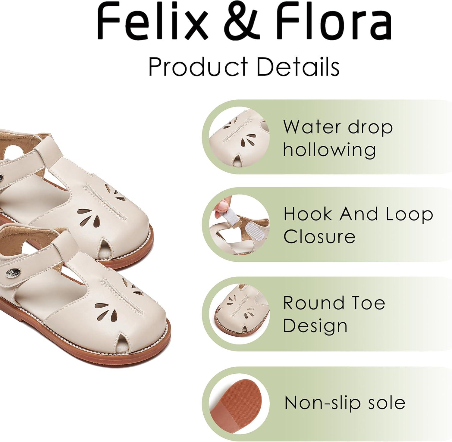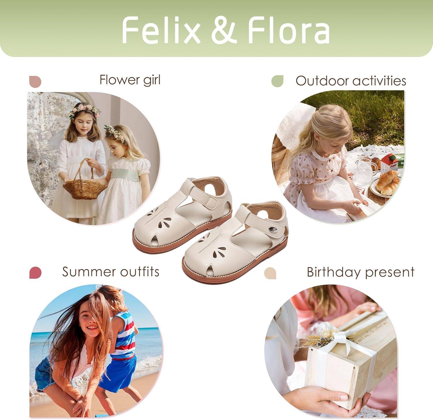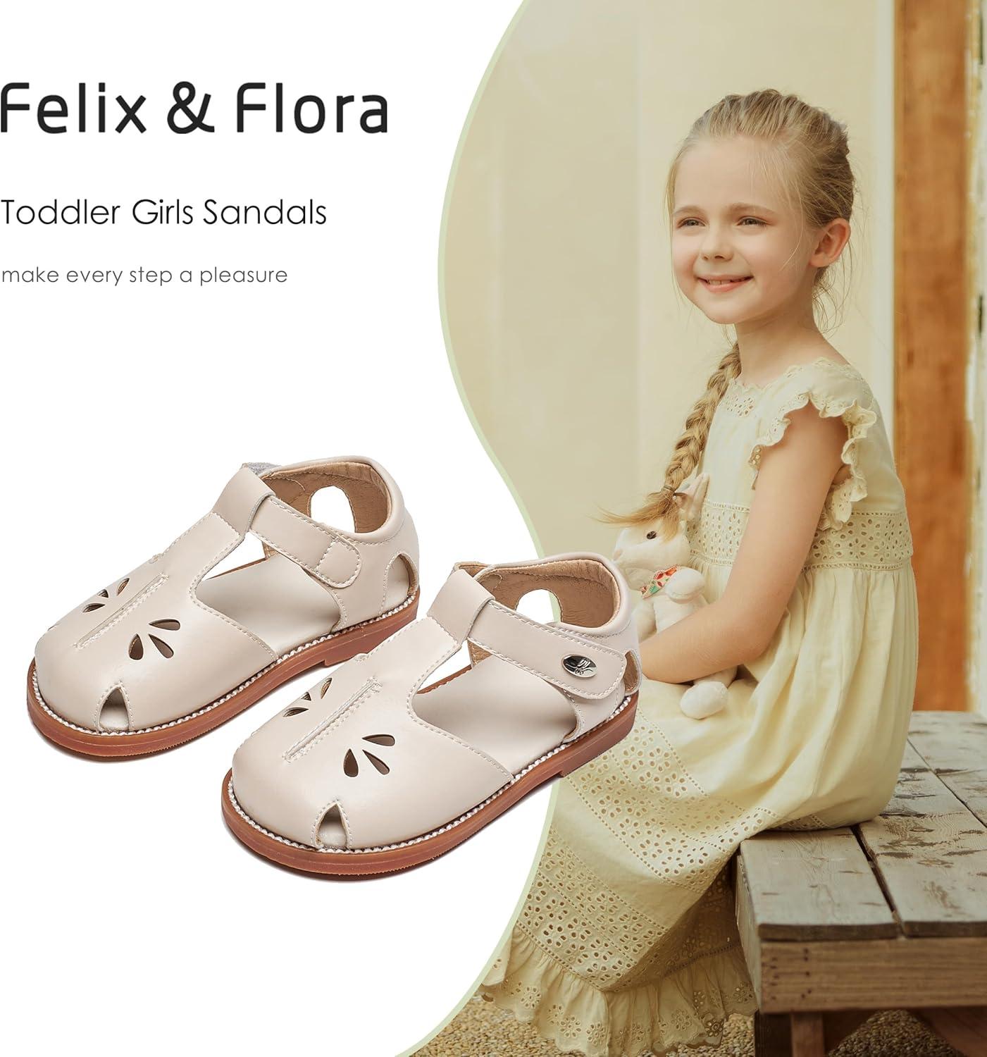 Felix & Flora Toddler Girls Sandals Soft Rubber Princess Flat Shoes Summer Flower Girl Shoes(Bc311-beige)
