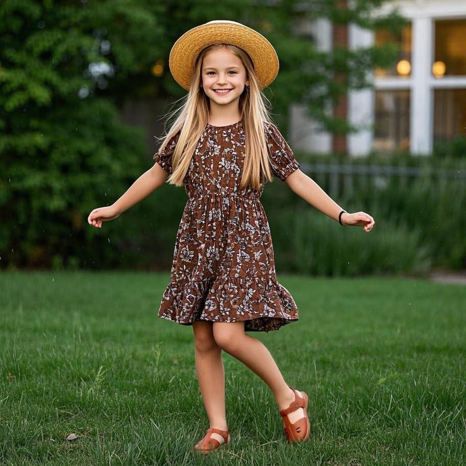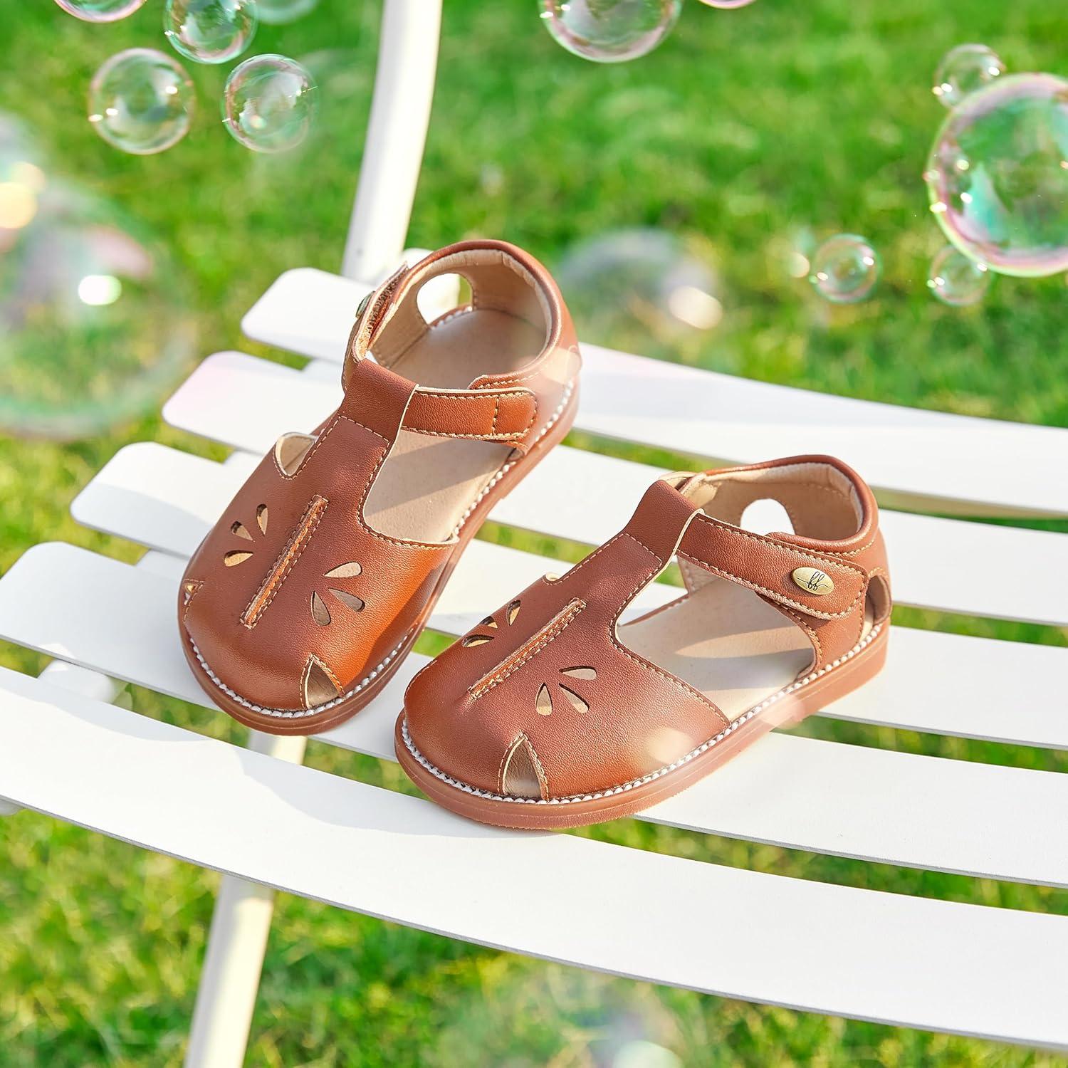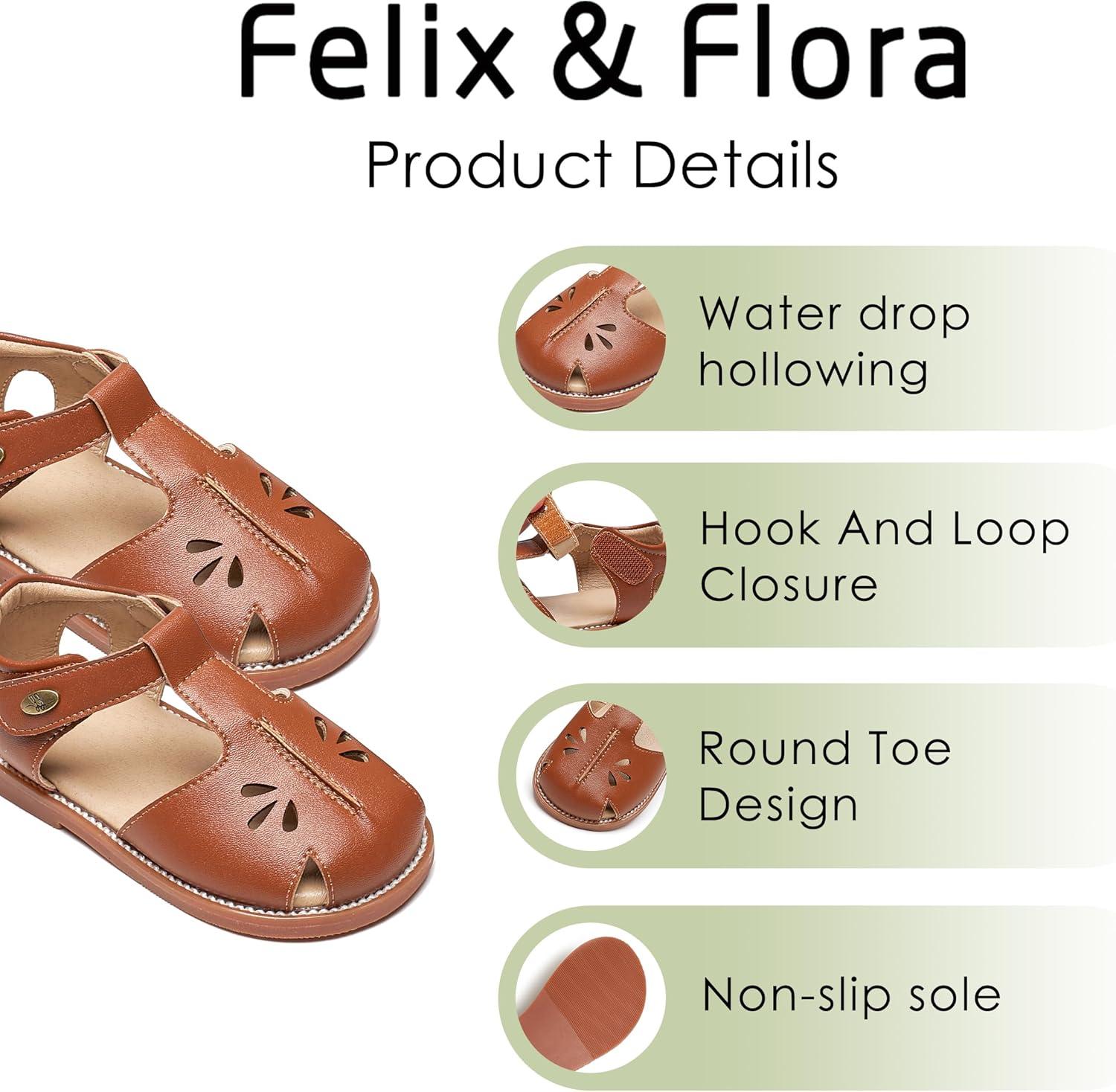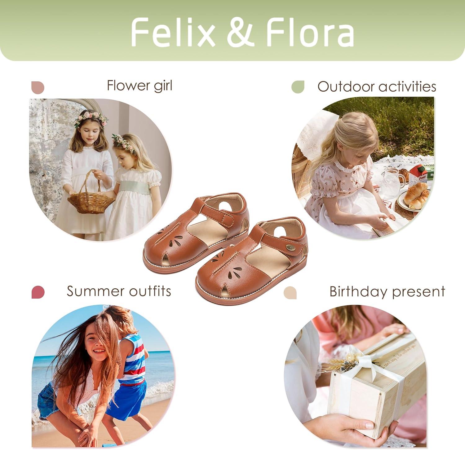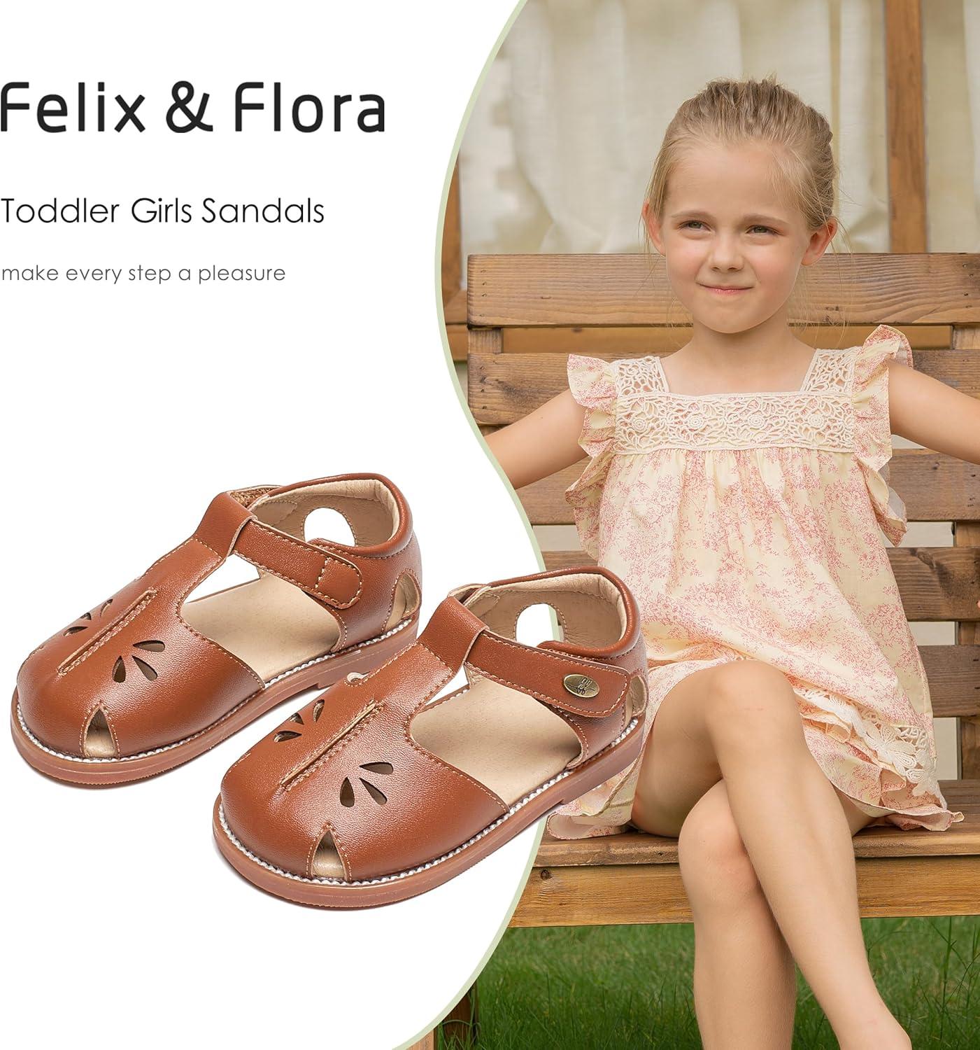 Felix & Flora Toddler Girls Sandals Soft Rubber Princess Flat Shoes Summer Flower Girl Shoes(Bc311-brown)