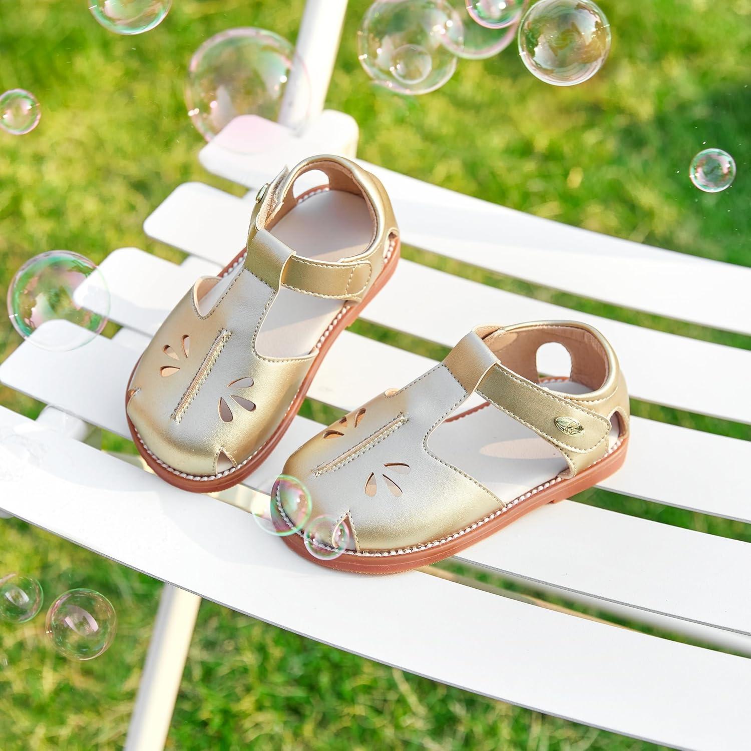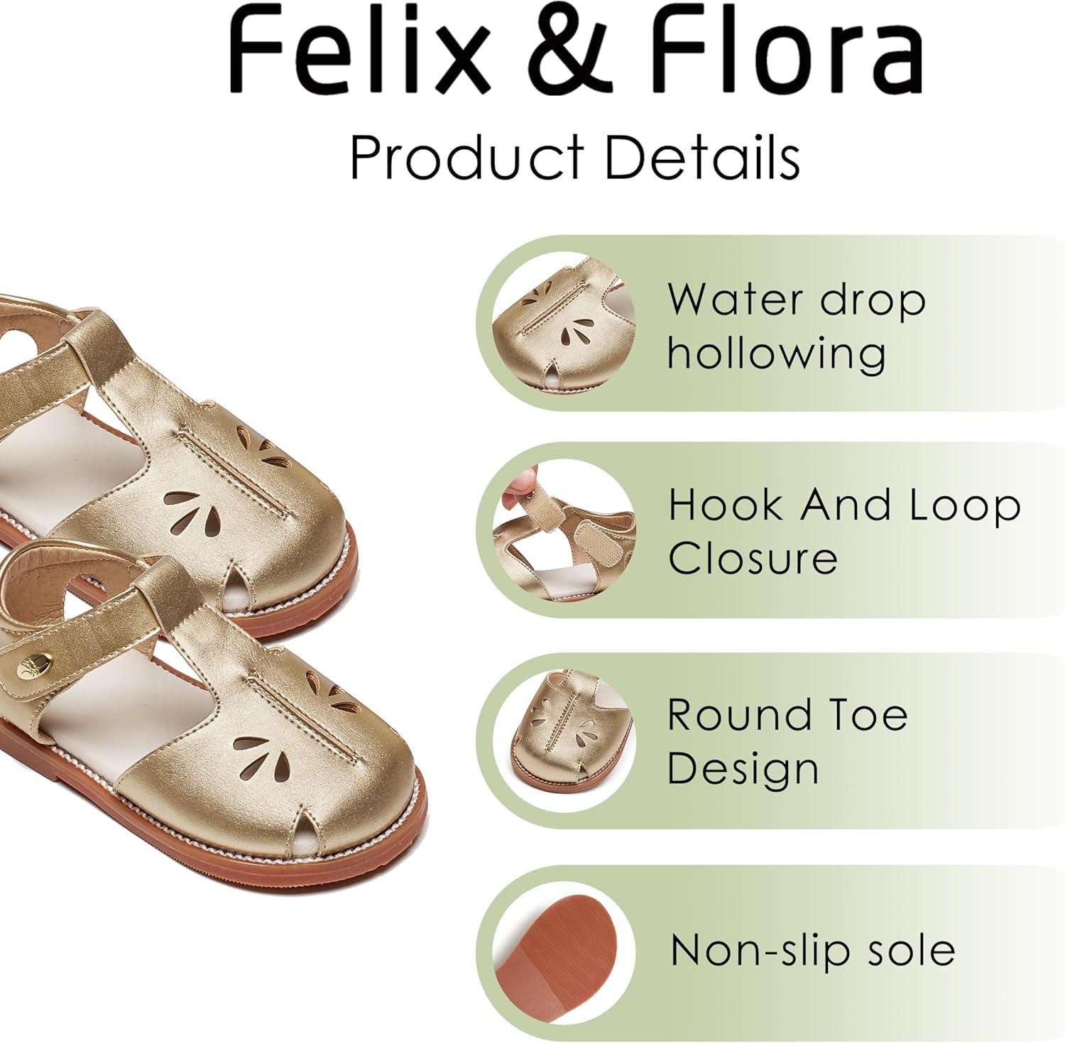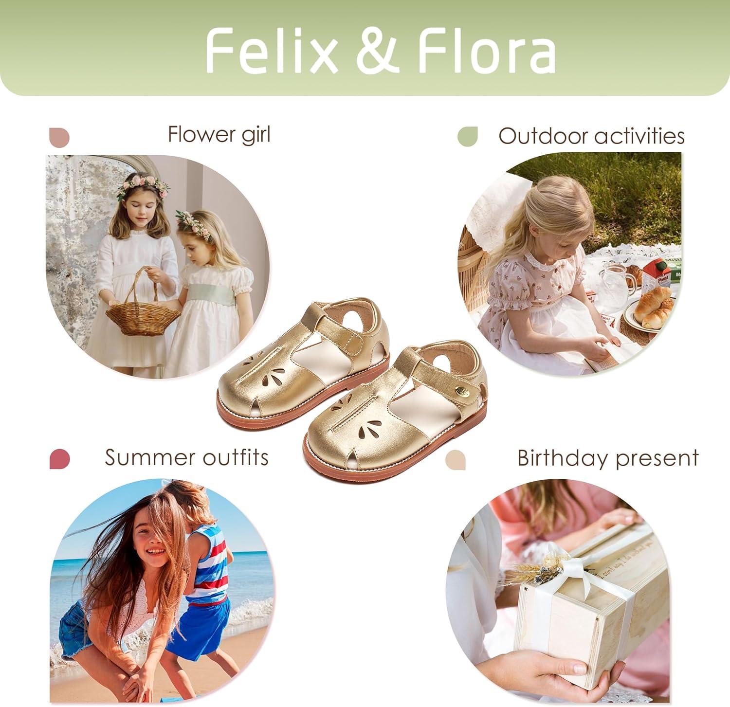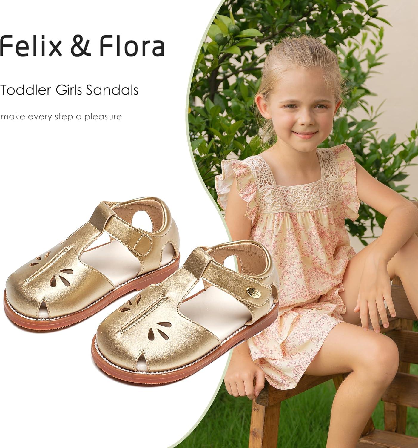 Felix & Flora Toddler Girls Sandals Soft Rubber Princess Flat Shoes Summer Flower Girl Shoes(Bc311-gold)