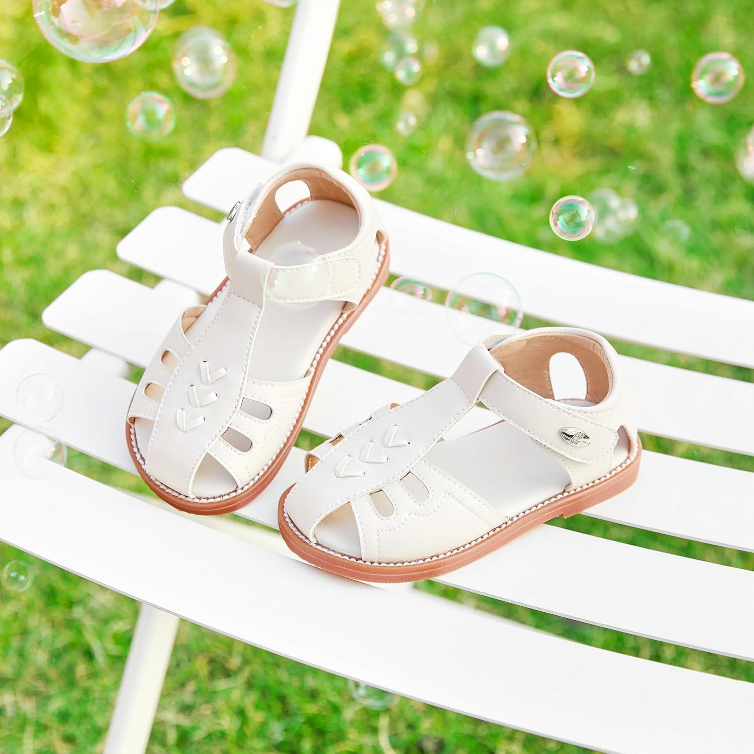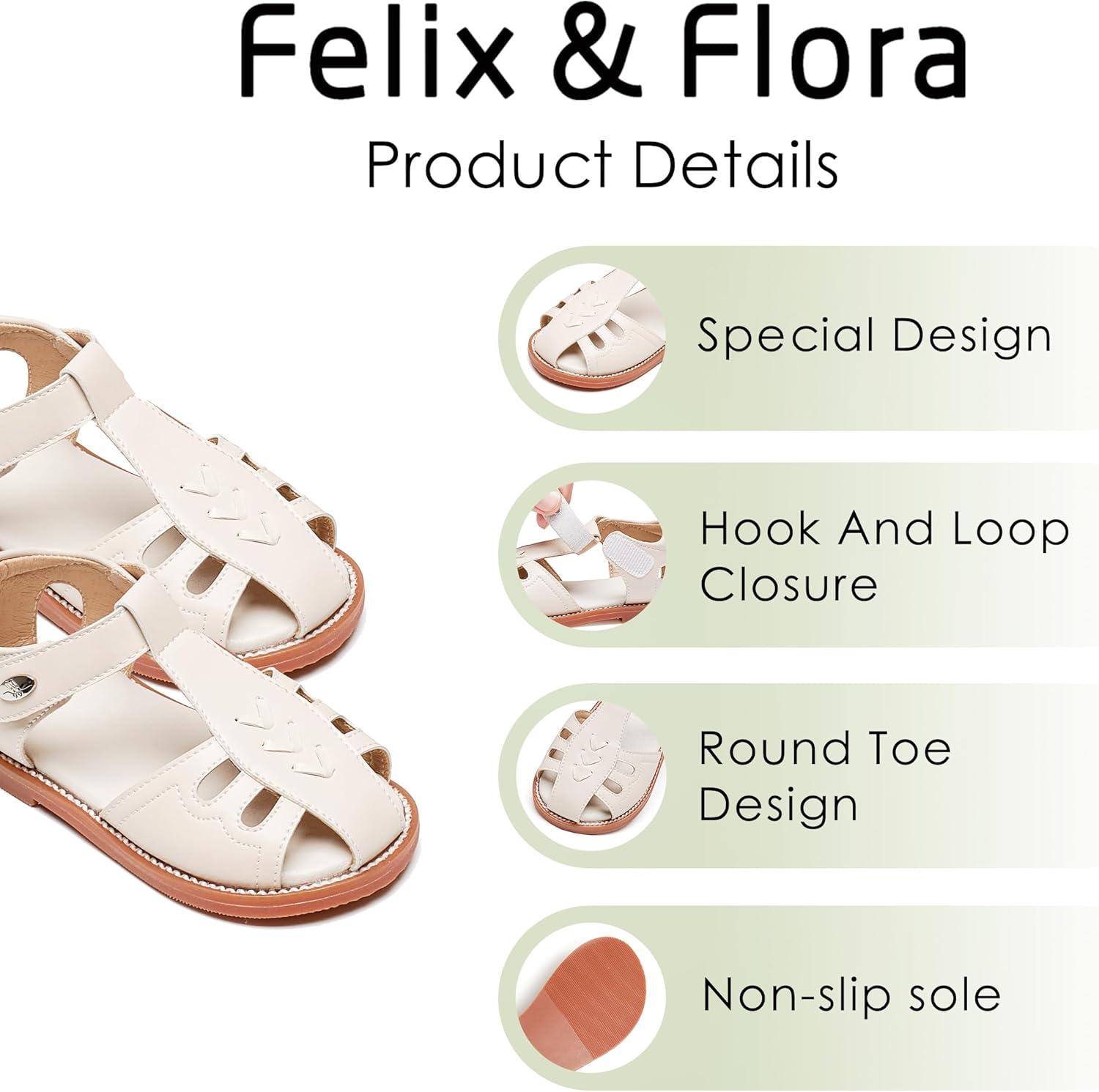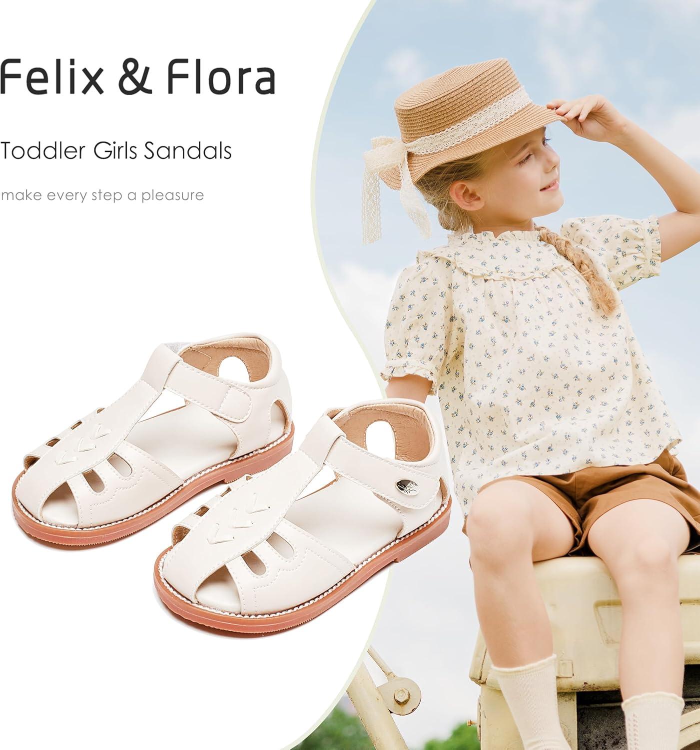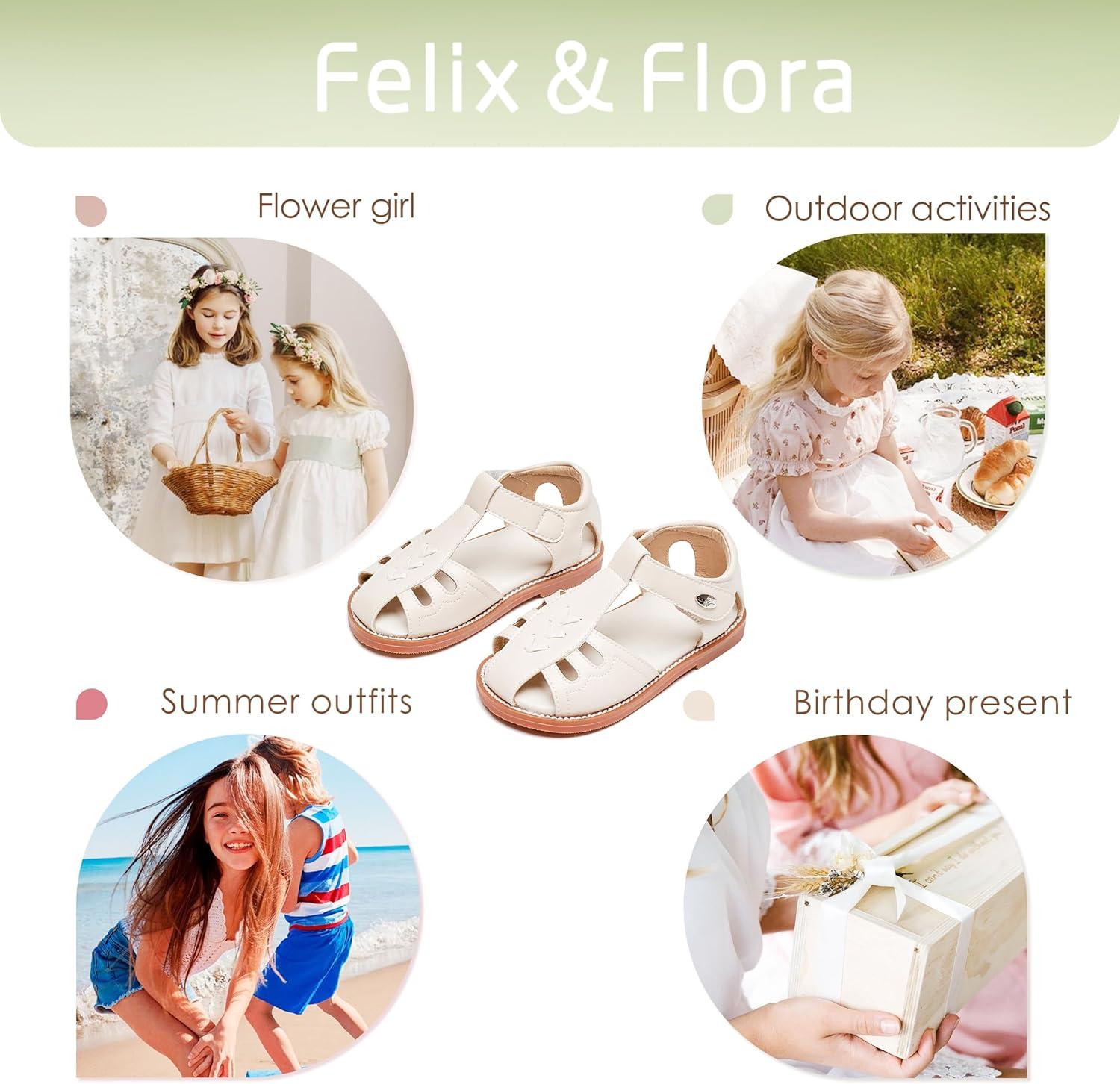 Felix & Flora Toddler Girls Sandals Soft Rubber Princess Flat Shoes Summer Flower Girl Shoes(Bc313-beige)