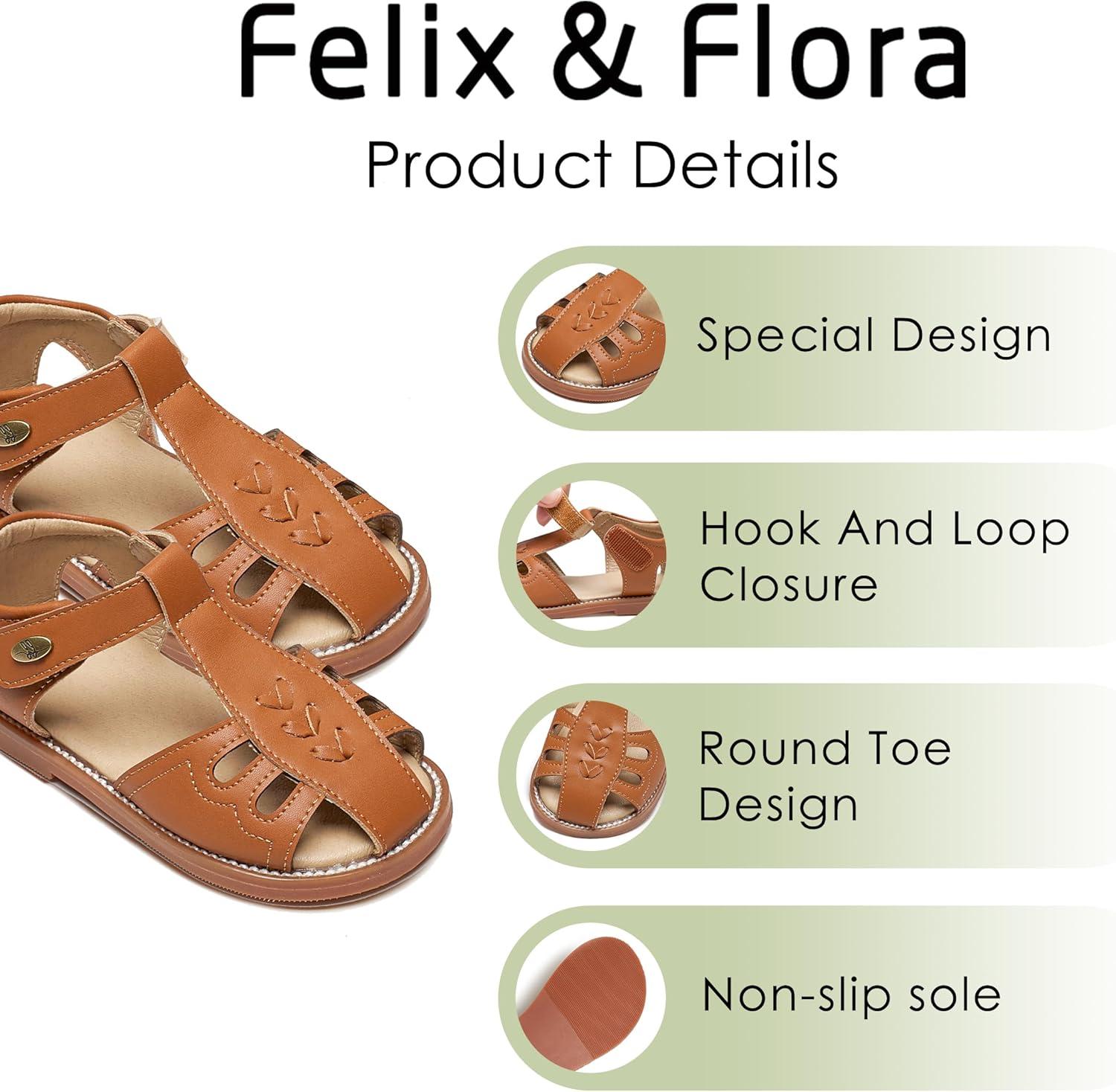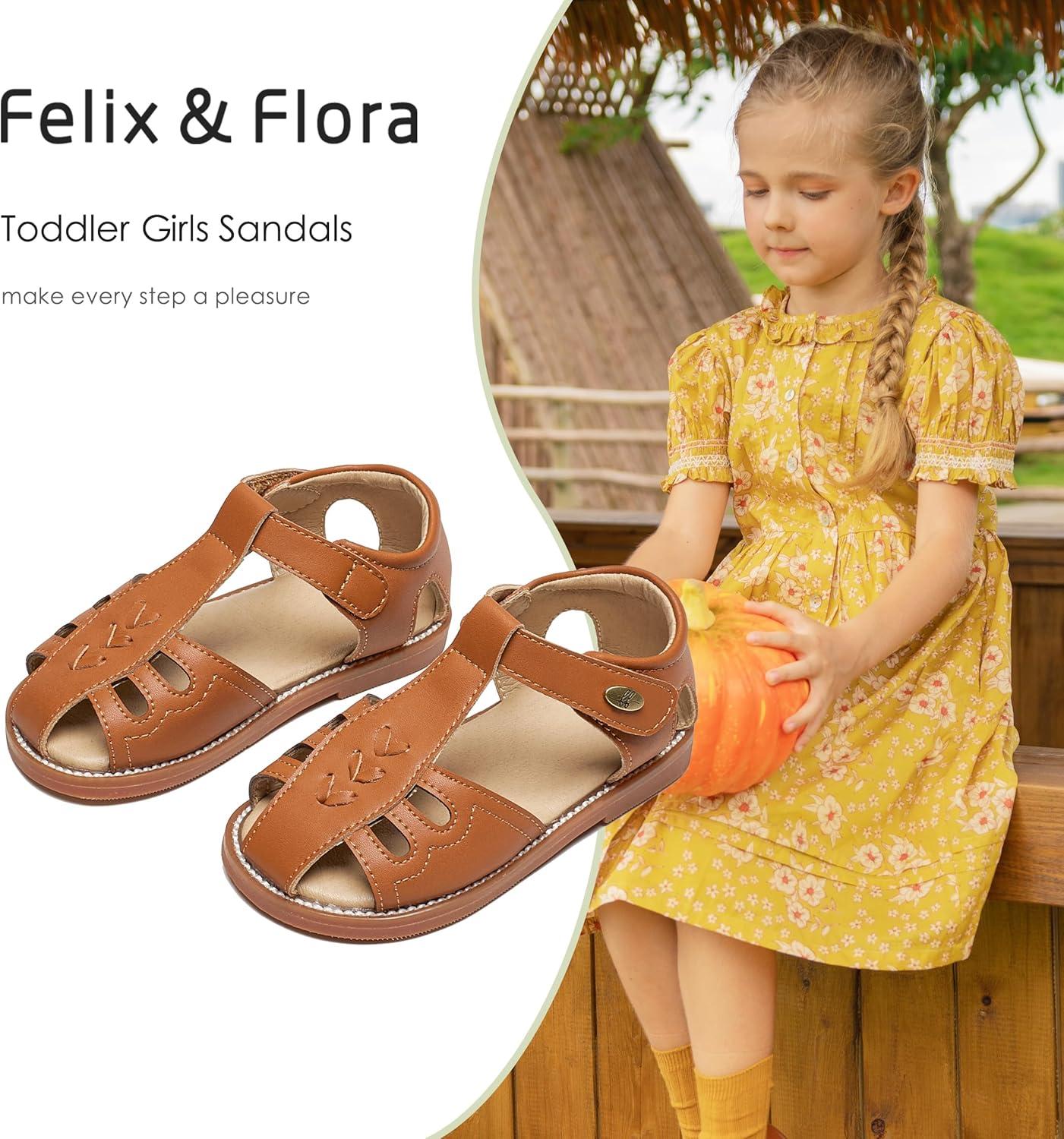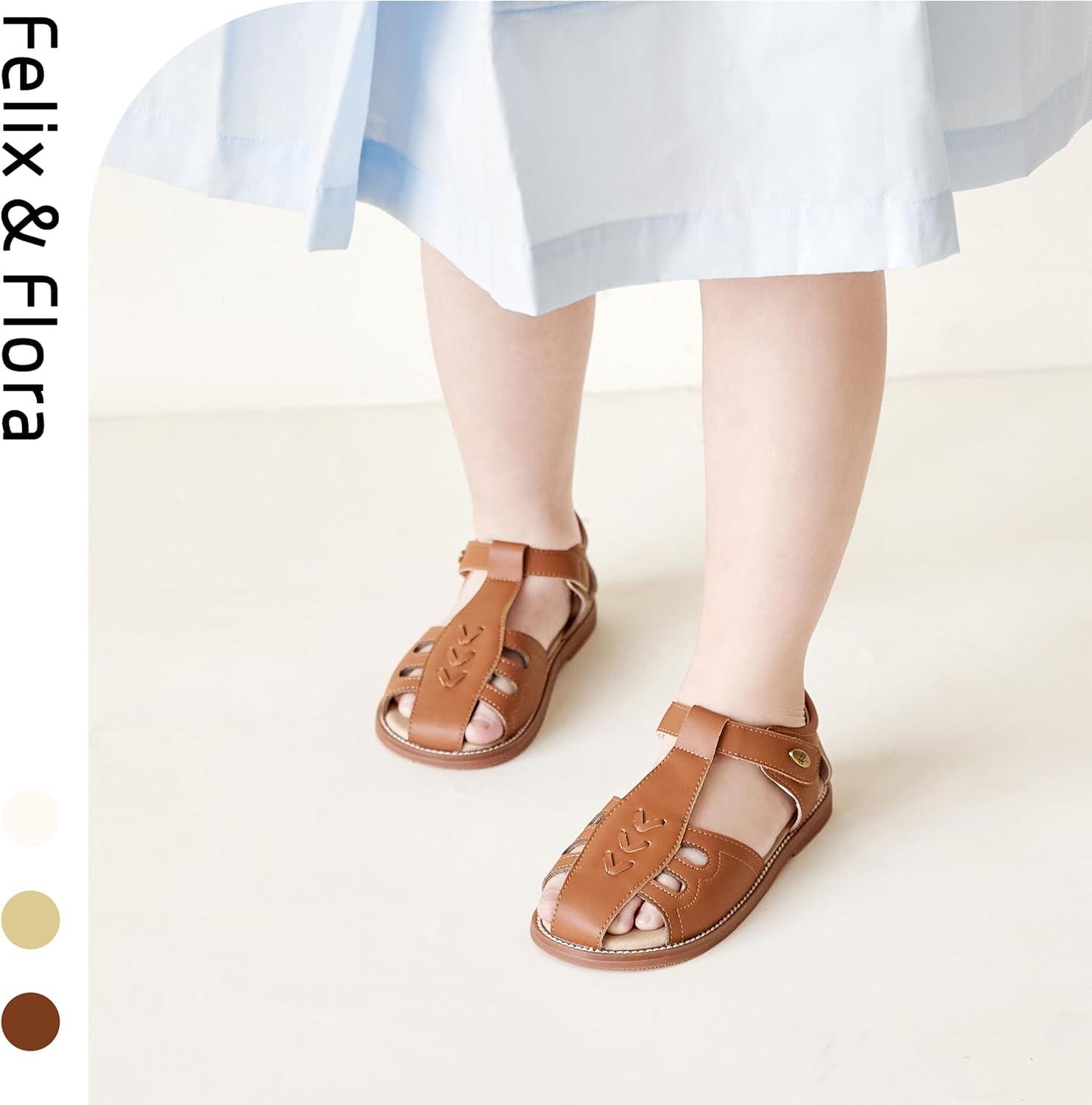 Felix & Flora Toddler Girls Sandals Soft Rubber Princess Flat Shoes Summer Flower Girl Shoes(Bc313-brown)