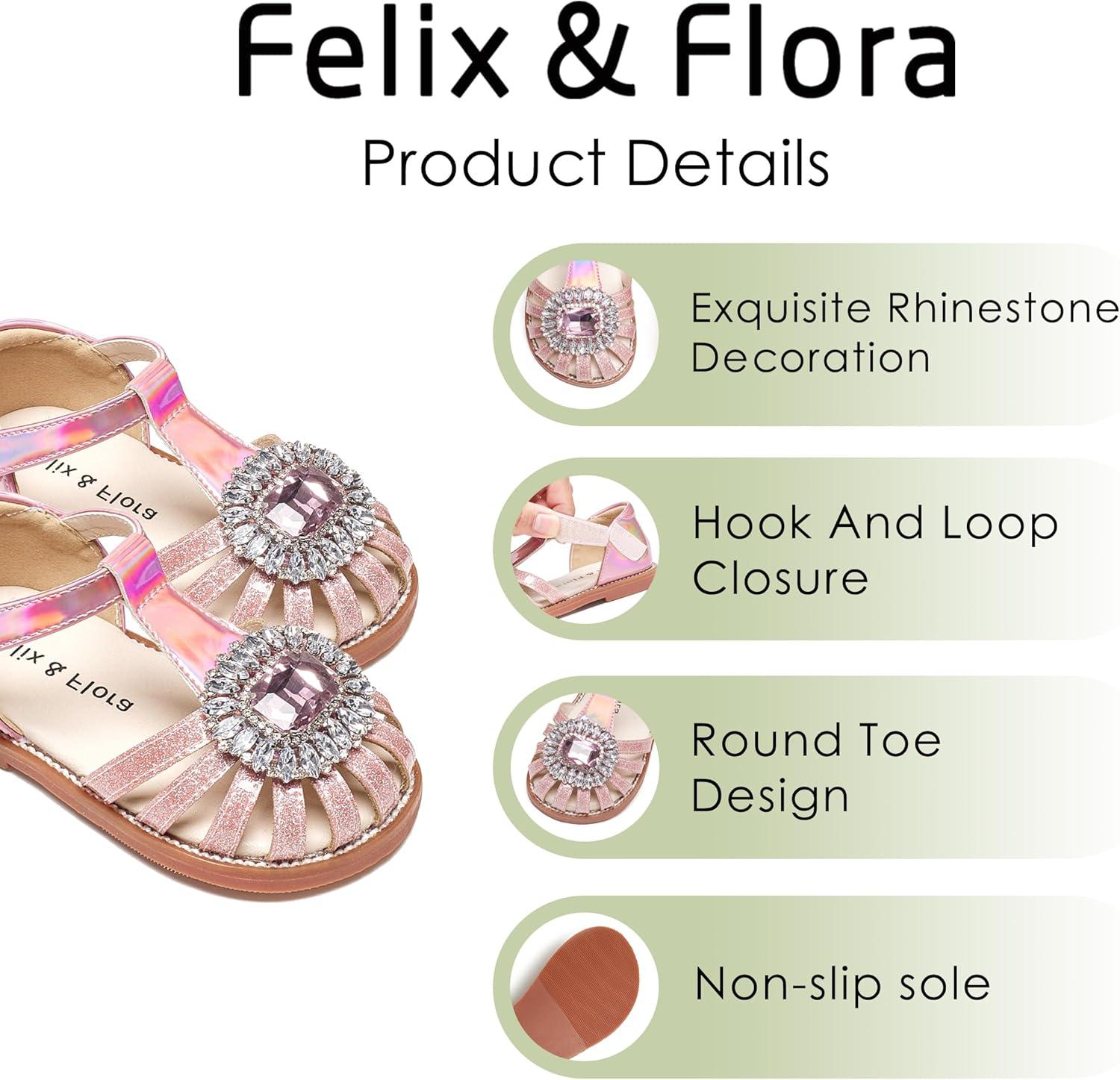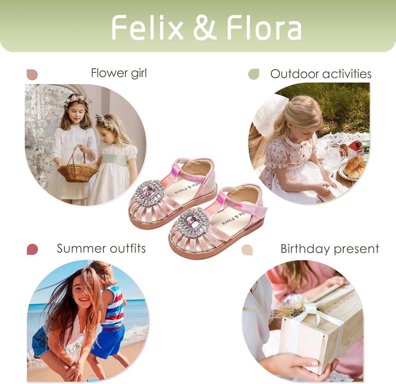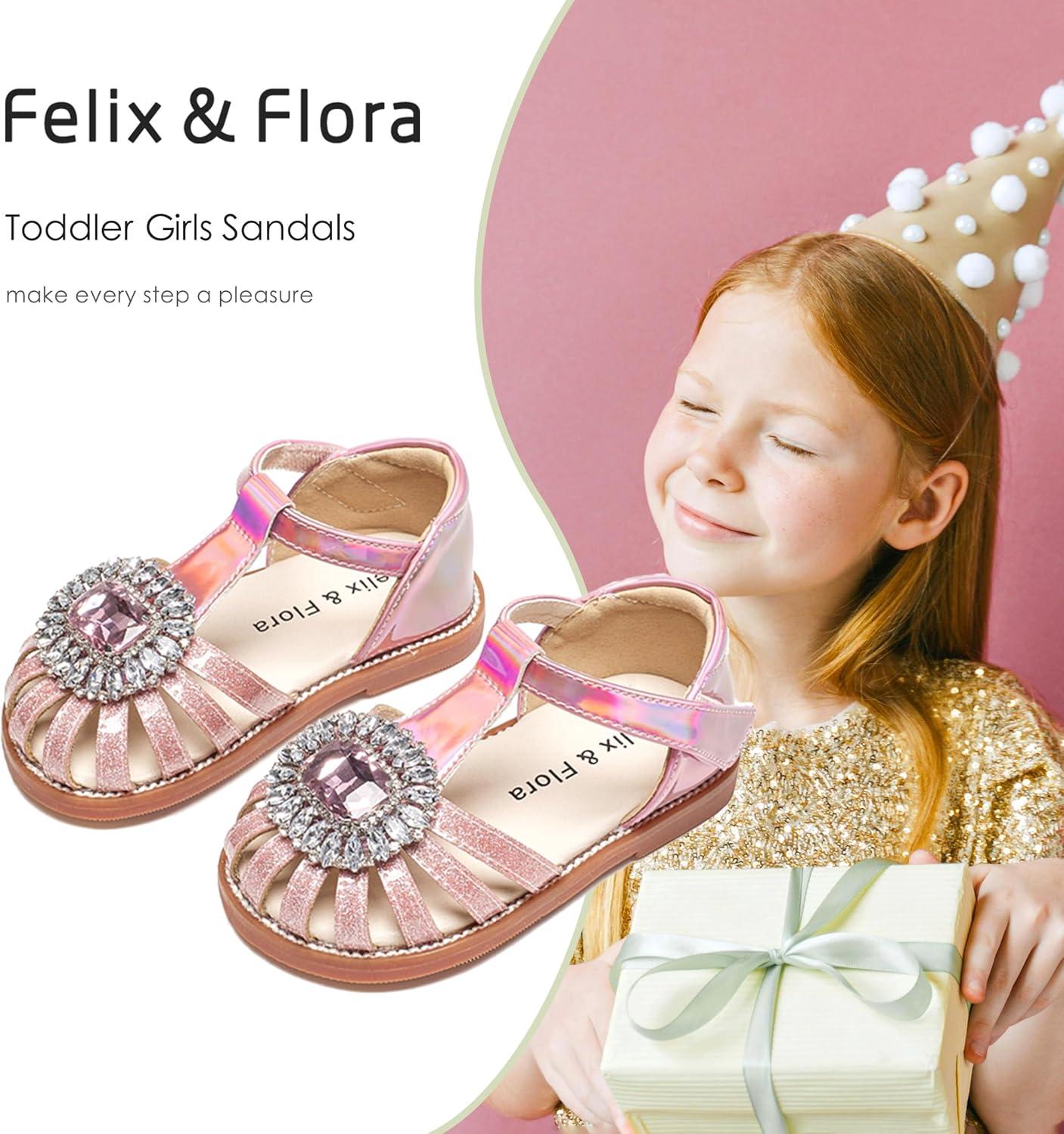 Felix & Flora Toddler Girls Sandals Soft Rubber Princess Flat Shoes Summer Flower Girl Shoes(Bc321-pink)