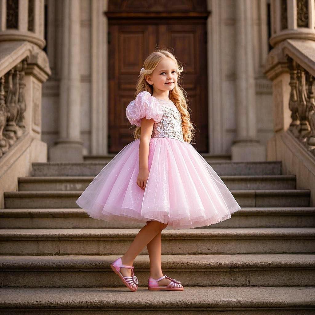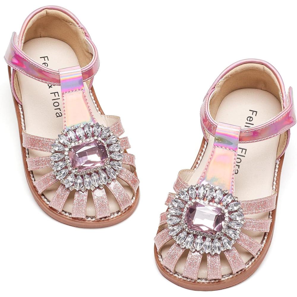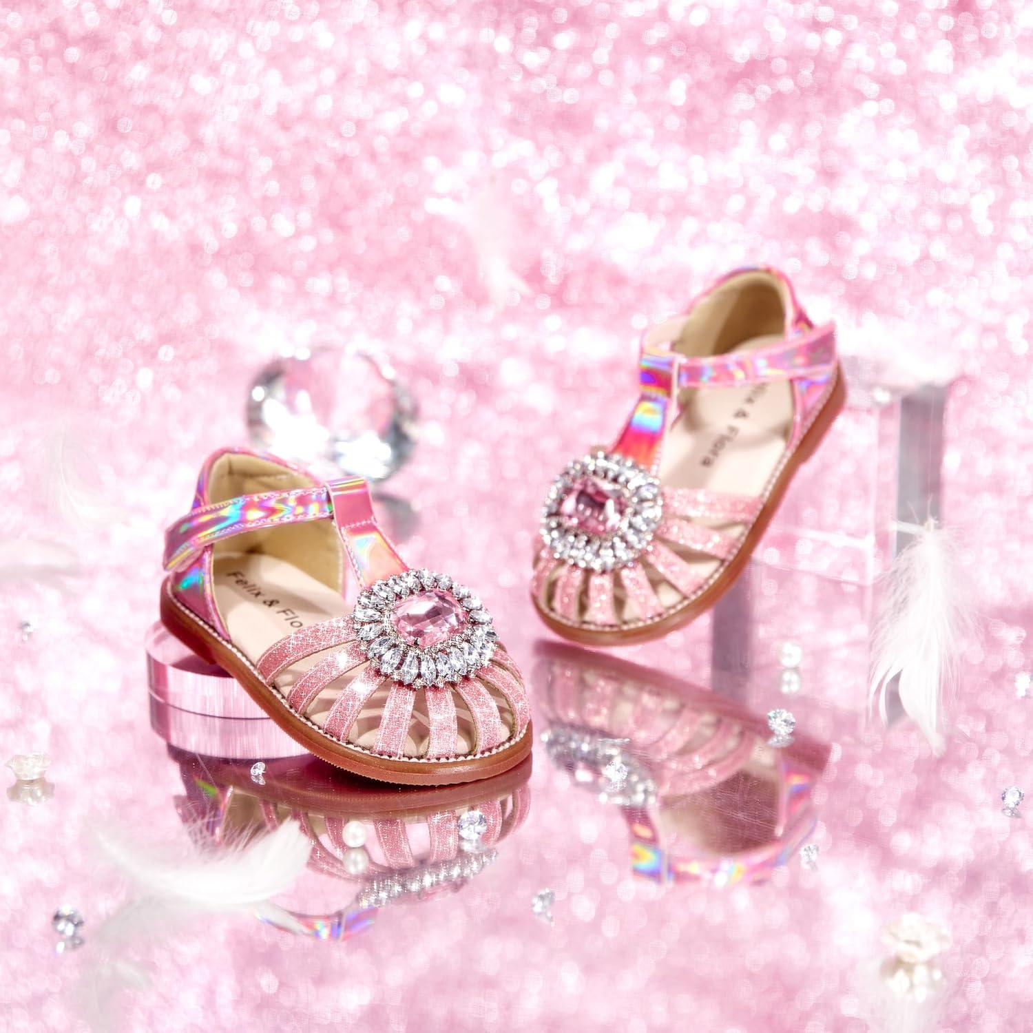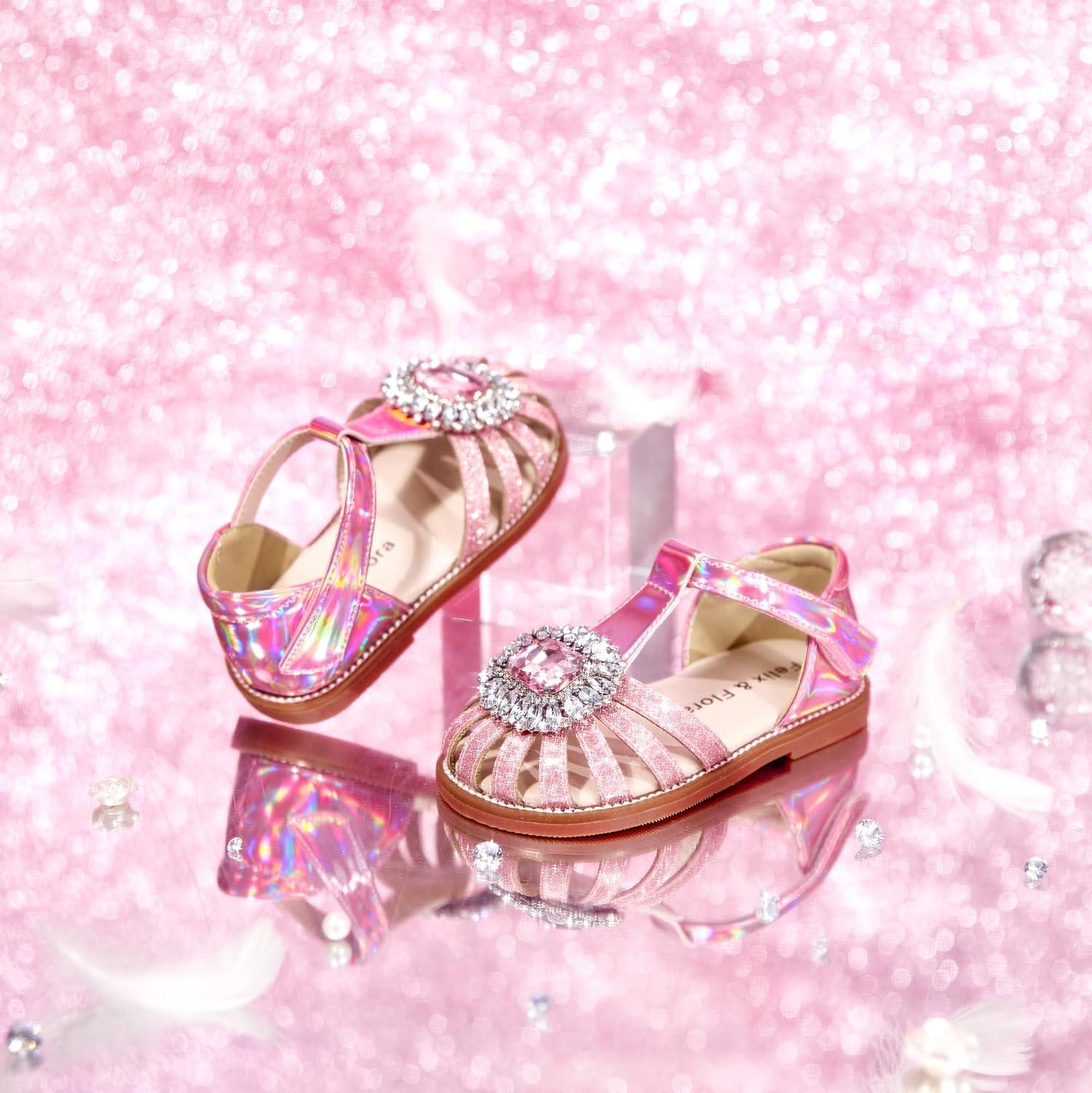 Felix & Flora Toddler Girls Sandals Soft Rubber Princess Flat Shoes Summer Flower Girl Shoes(Bc321-pink)