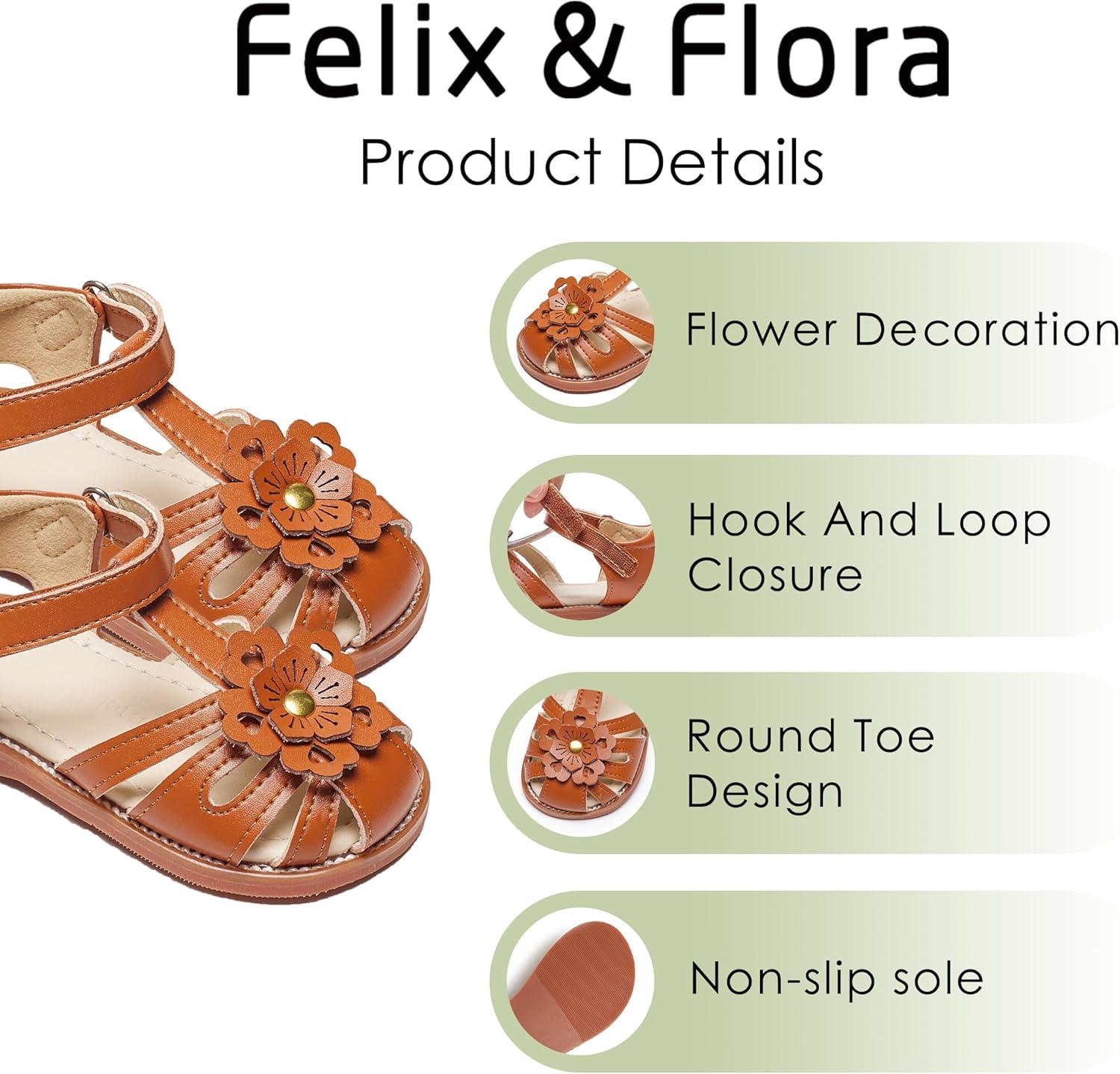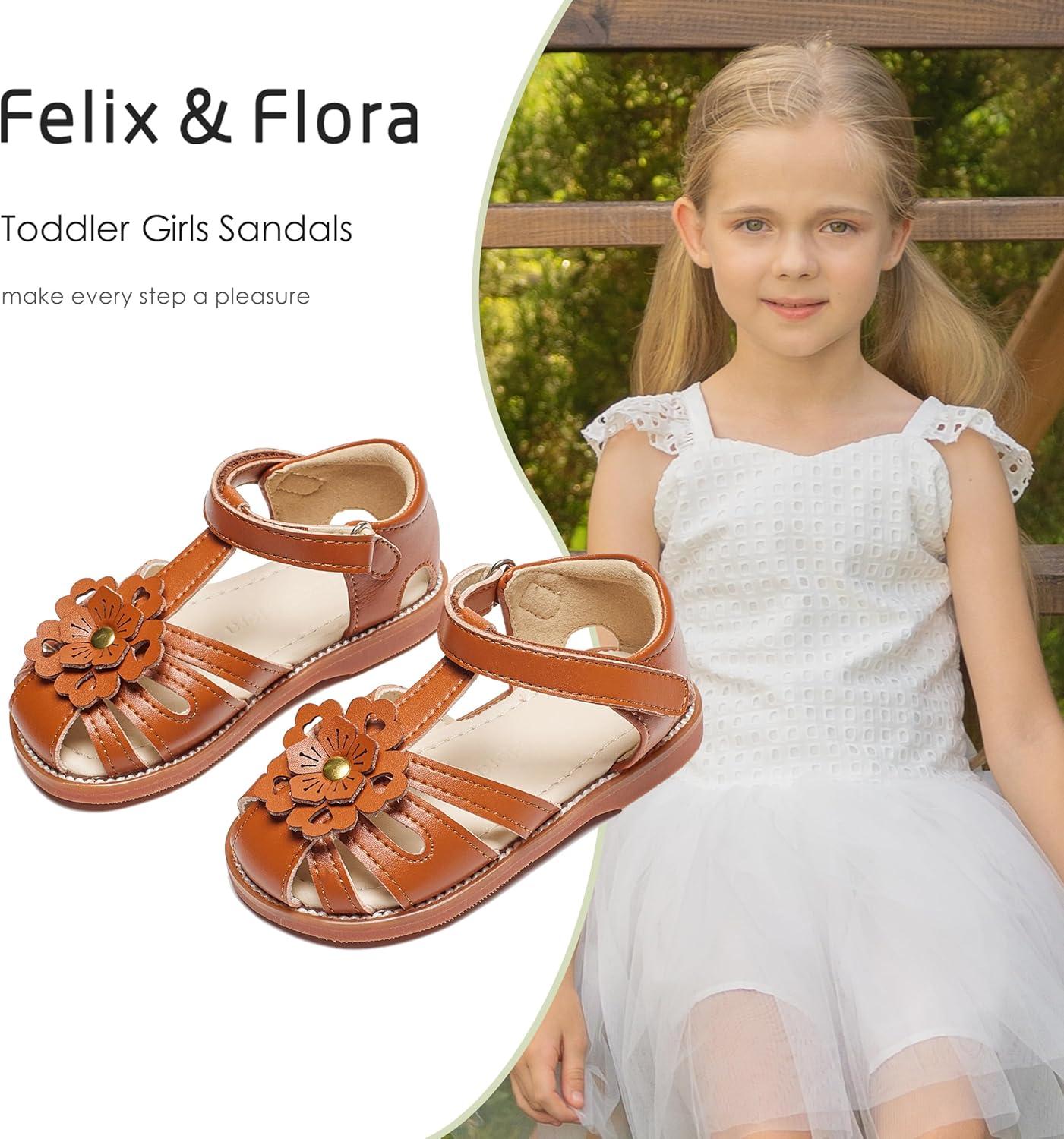 Felix & Flora Toddler Girls Sandals Soft Rubber Princess Flat Shoes Summer Flower Girl Shoes(Bc326-brown)
