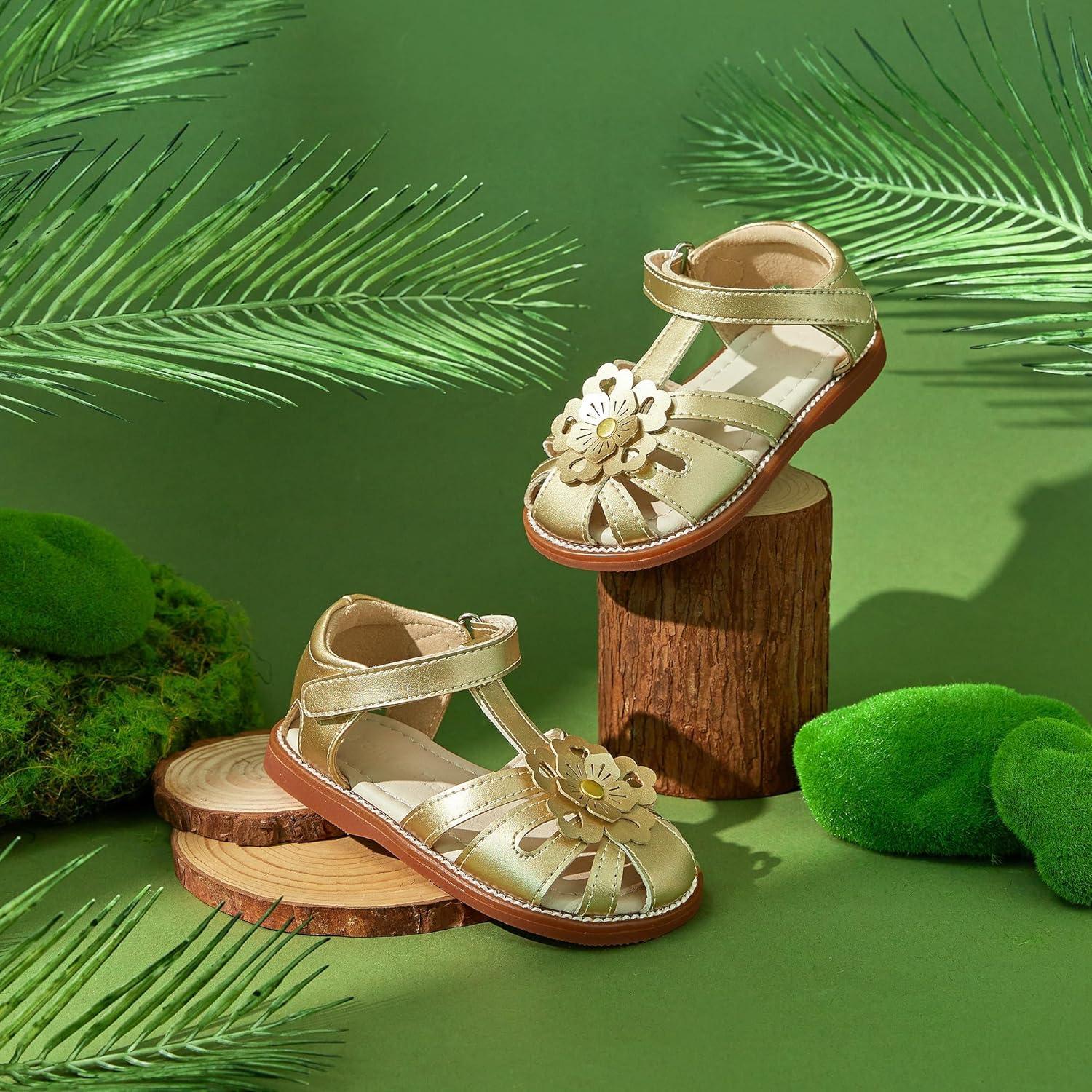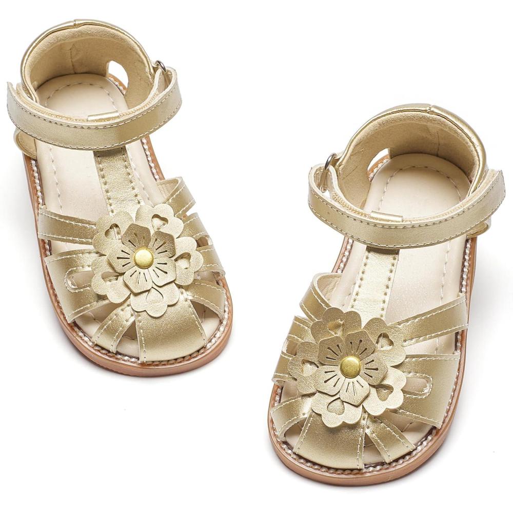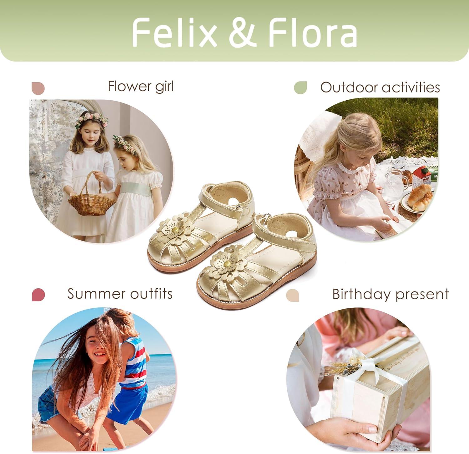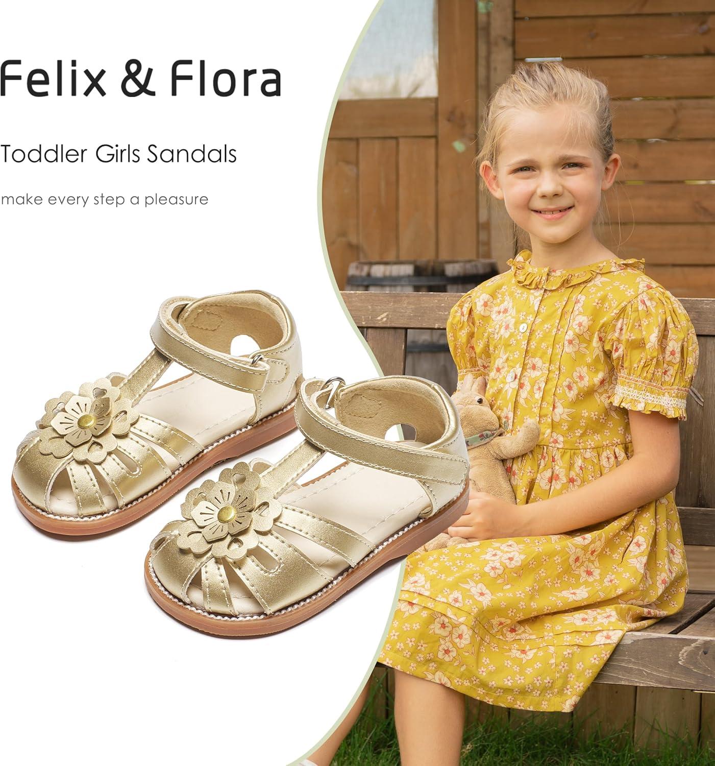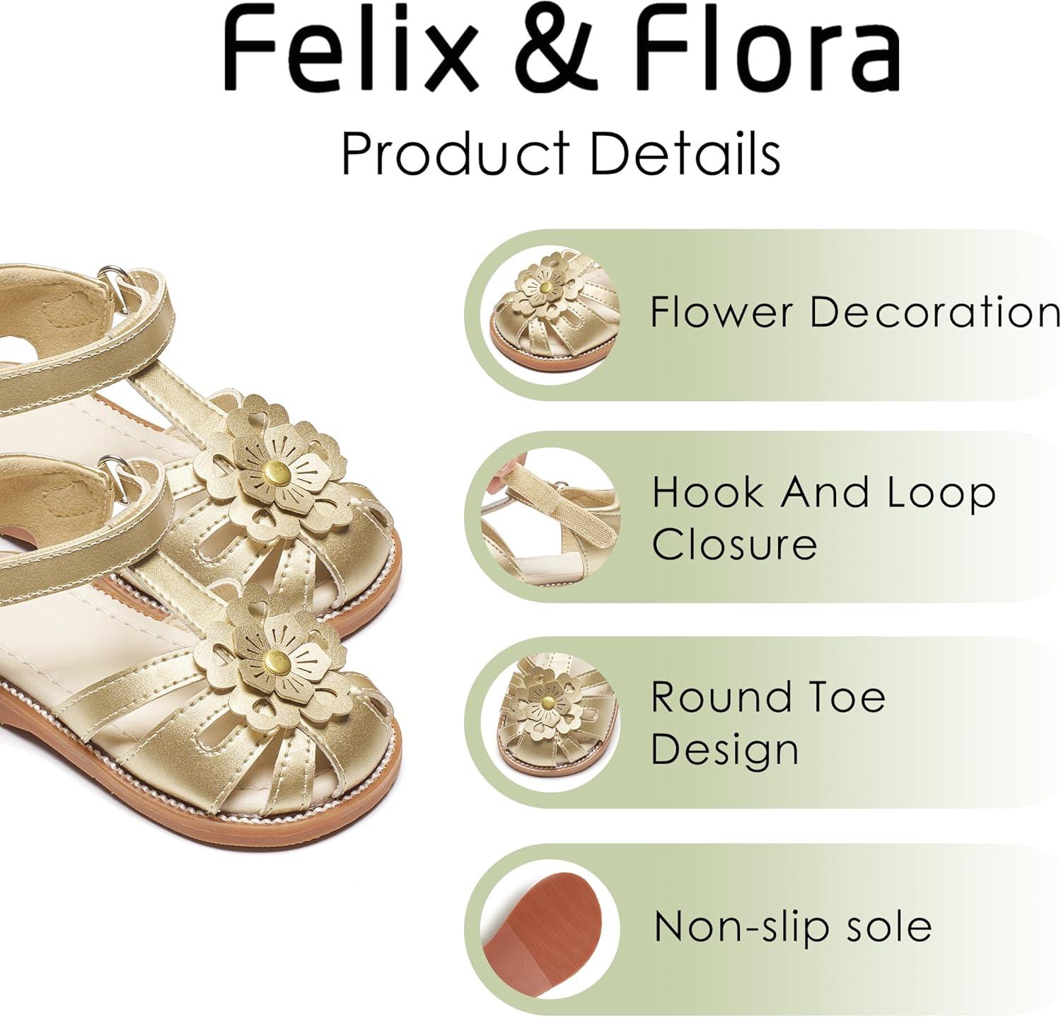 Felix & Flora Toddler Girls Sandals Soft Rubber Princess Flat Shoes Summer Flower Girl Shoes(Bc326-gold)