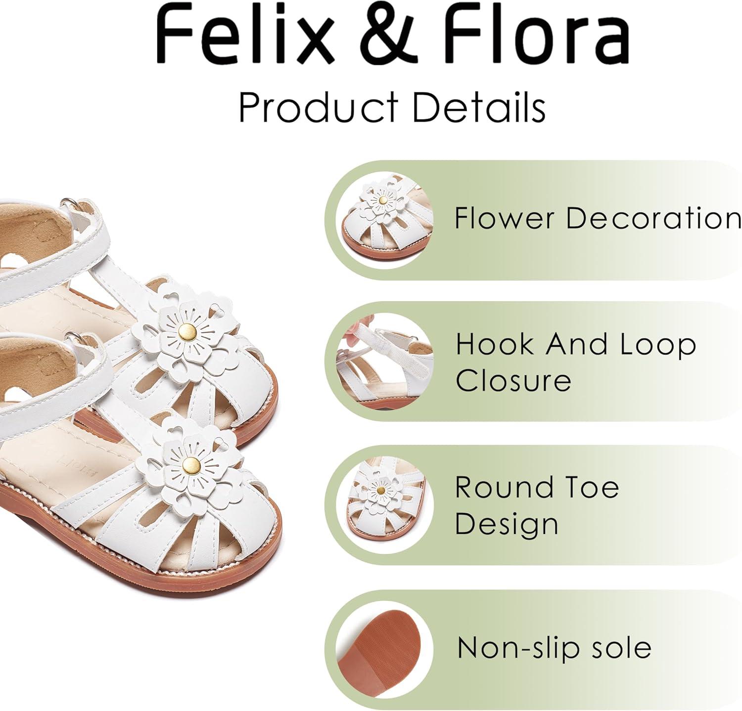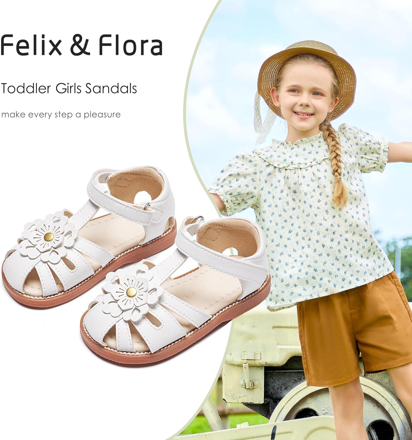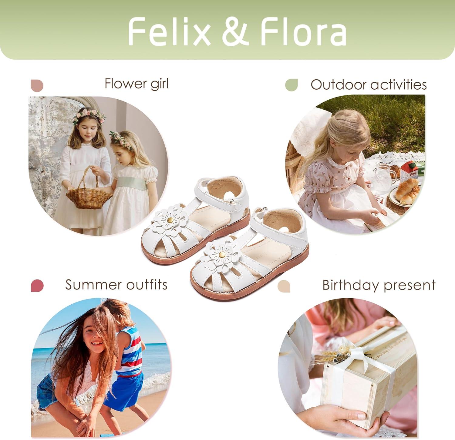 Felix & Flora Toddler Girls Sandals Soft Rubber Princess Flat Shoes Summer Flower Girl Shoes(Bc326-white)