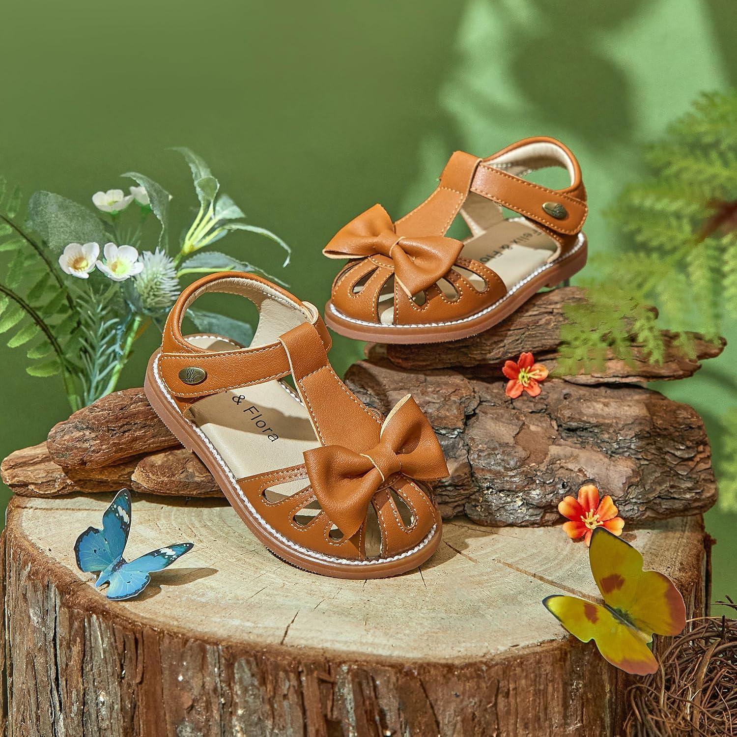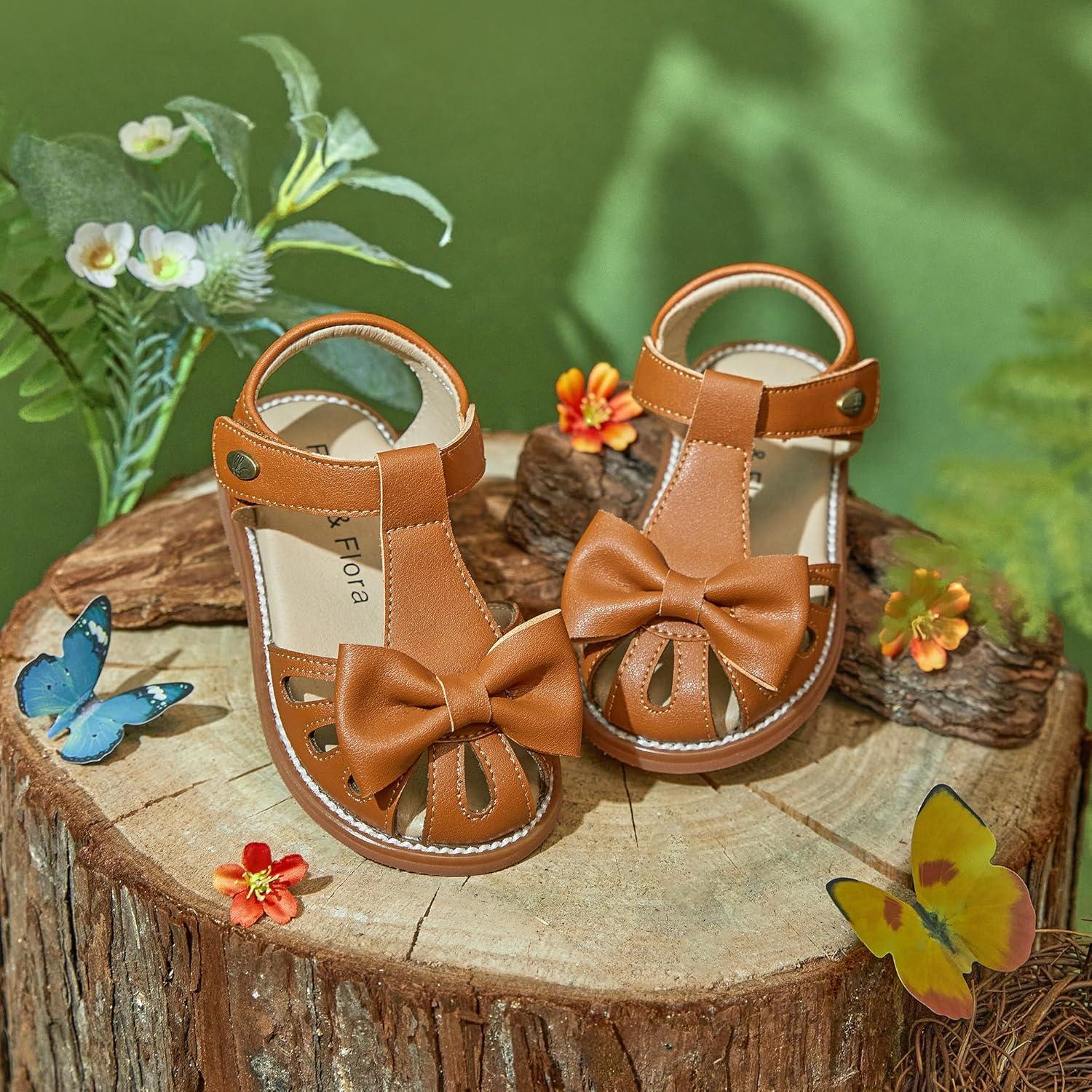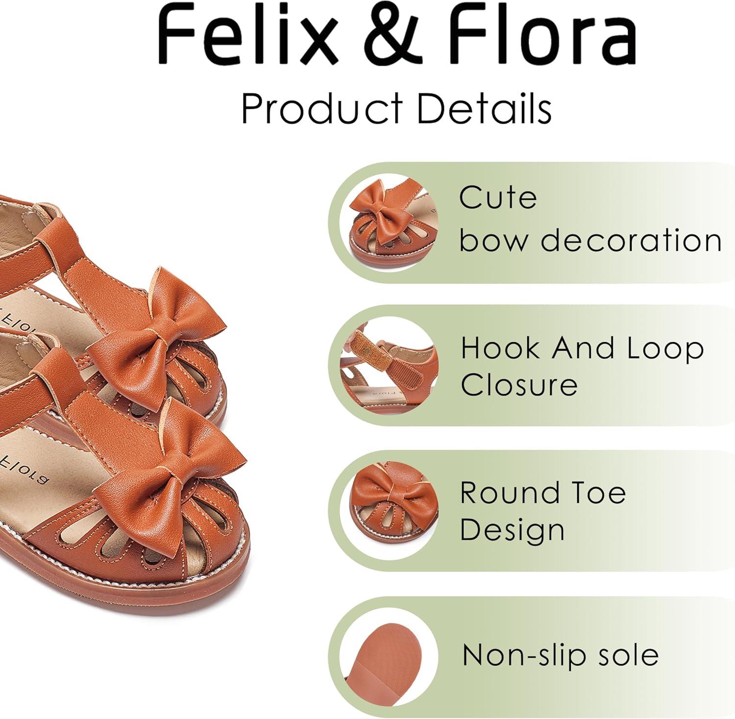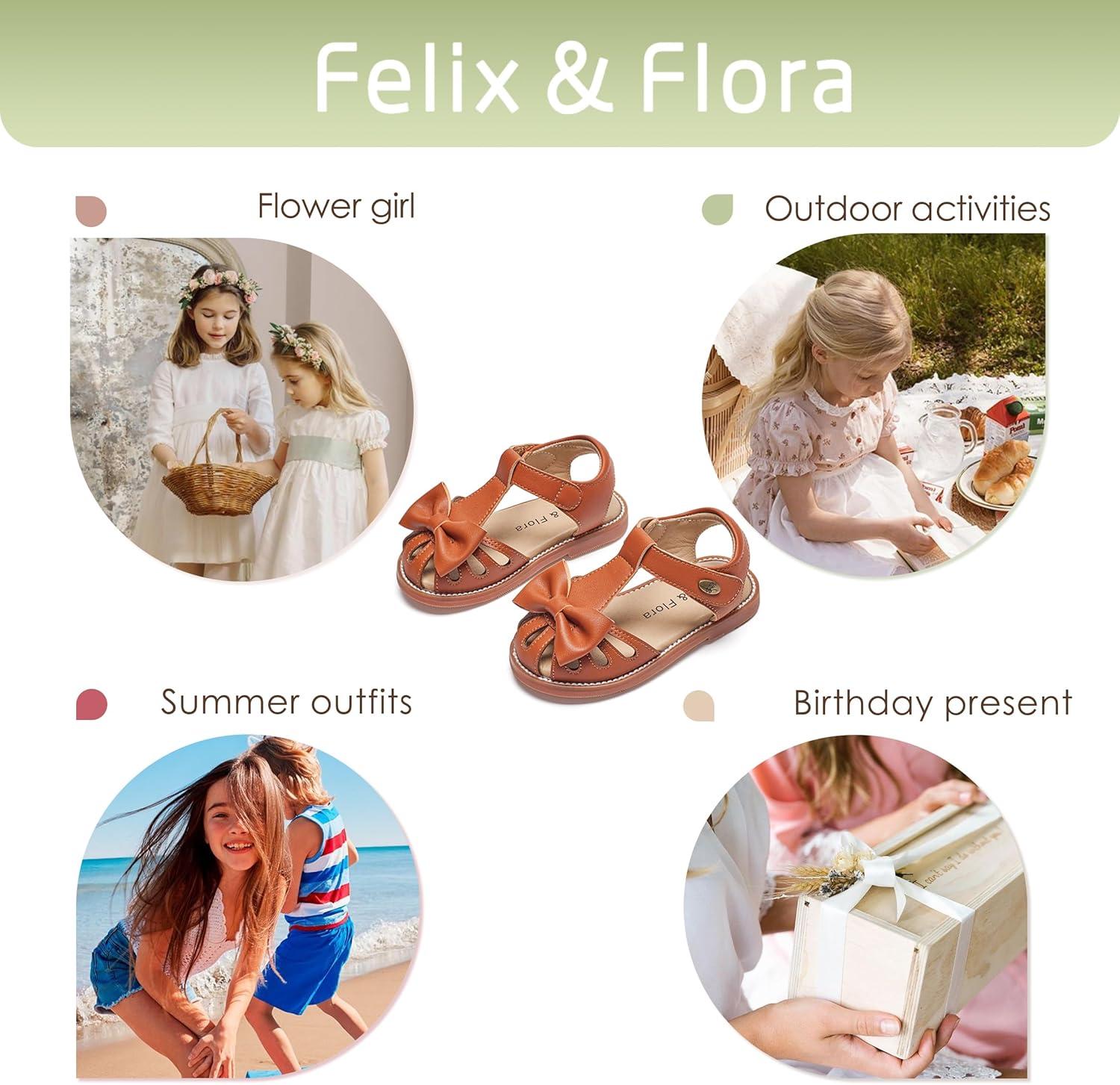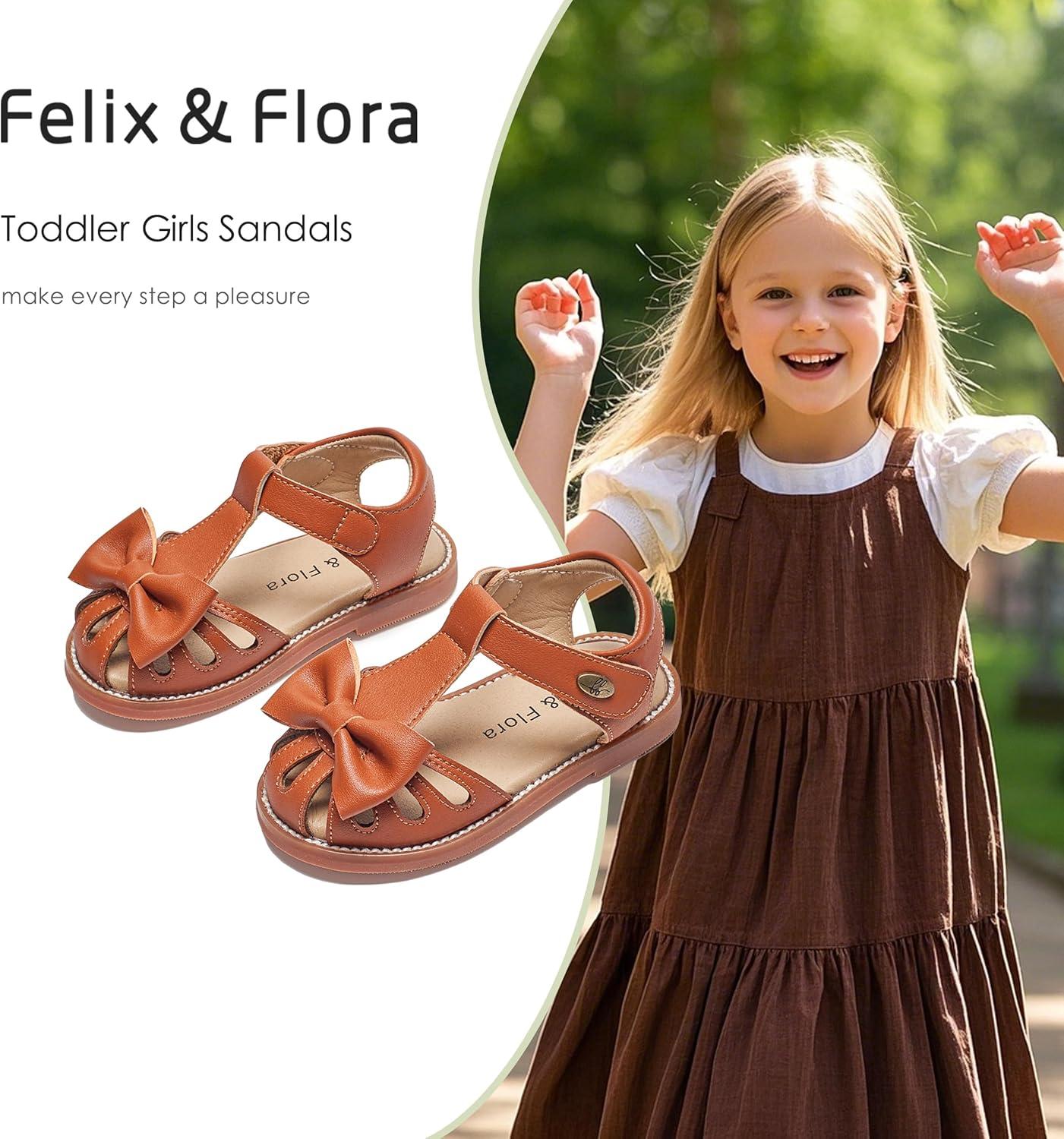 Felix & Flora Toddler Girls Sandals Soft Rubber Princess Flat Shoes Summer Flower Girl Shoes(Bc327-brown)
