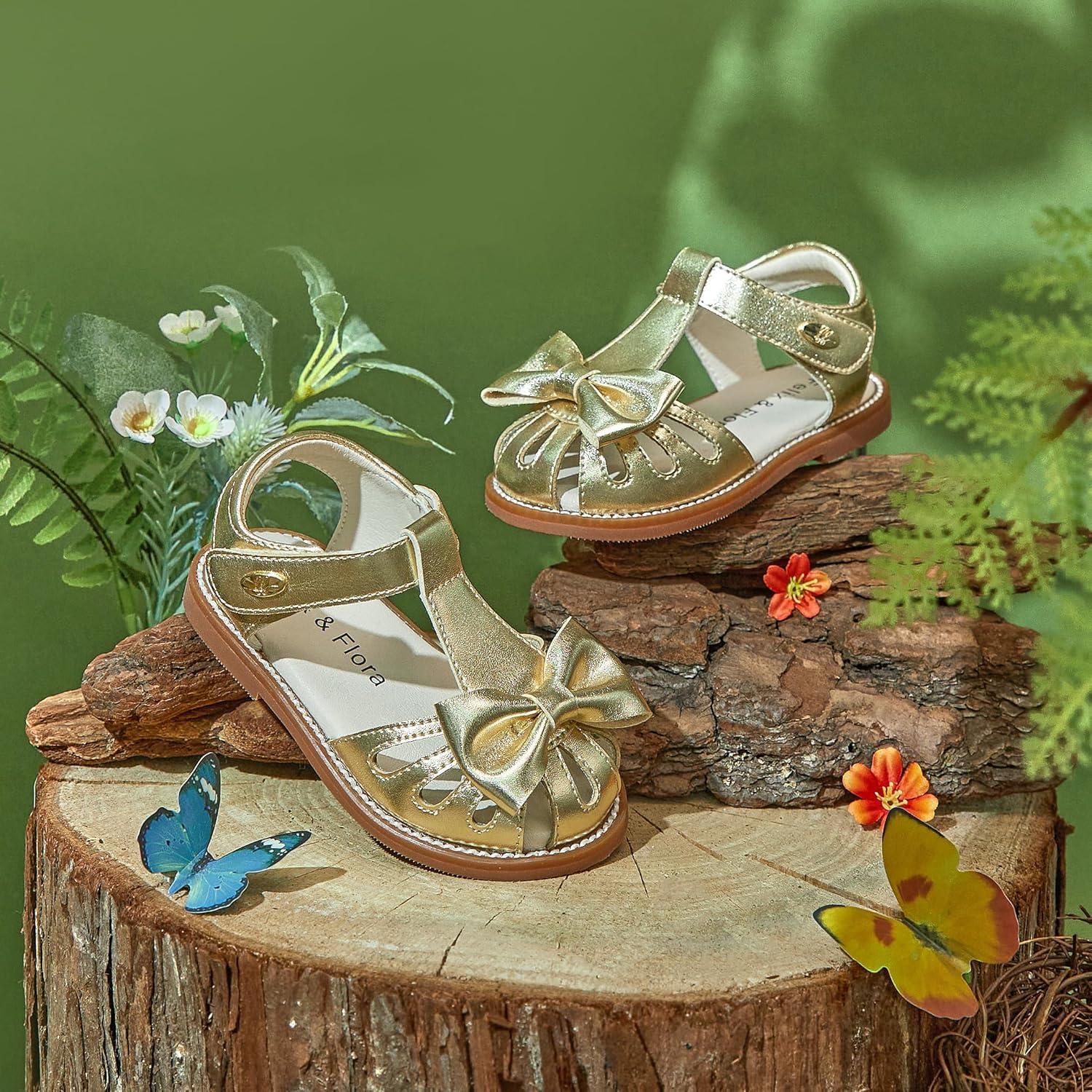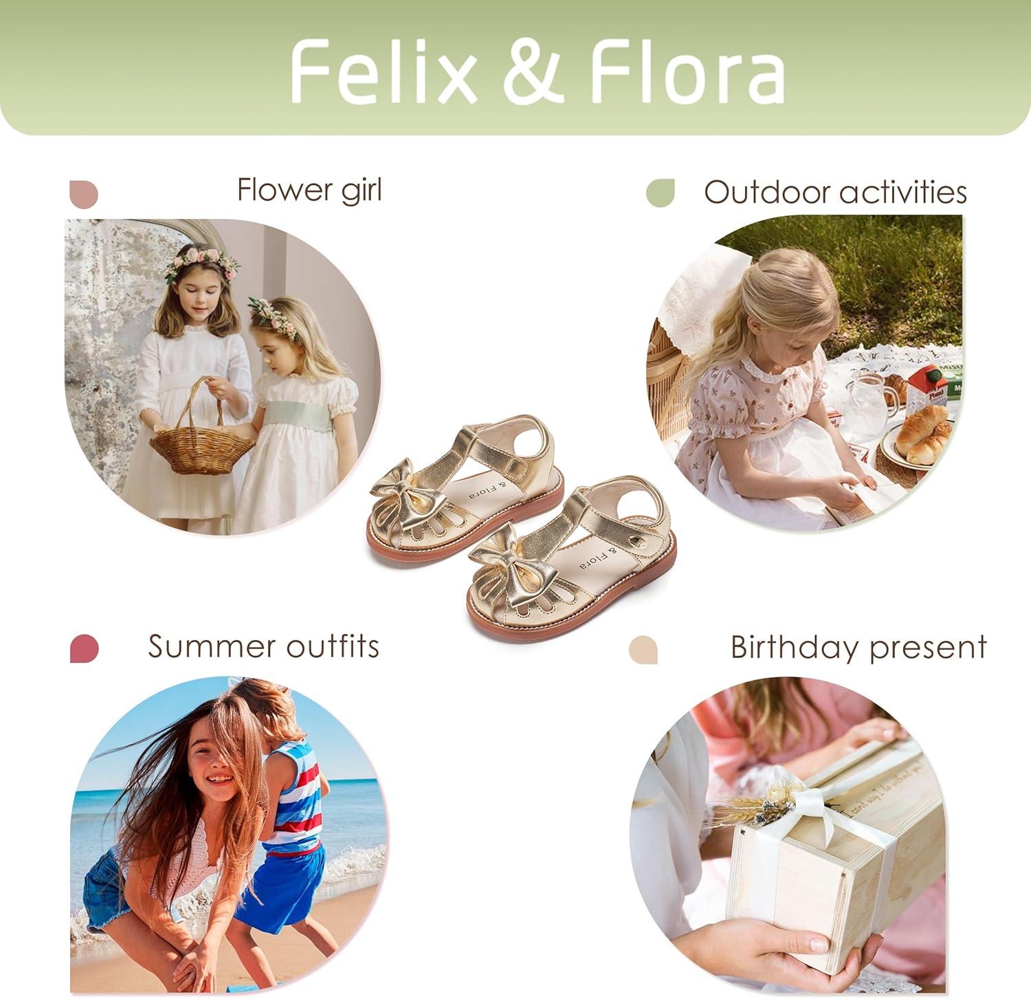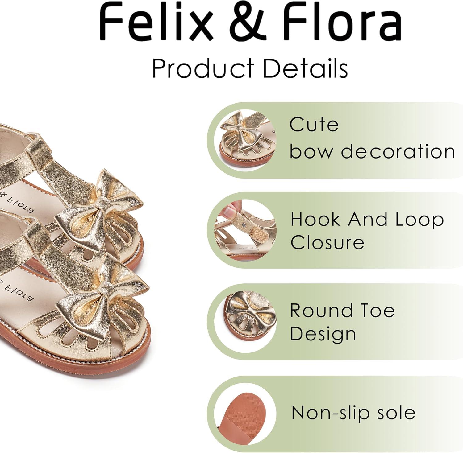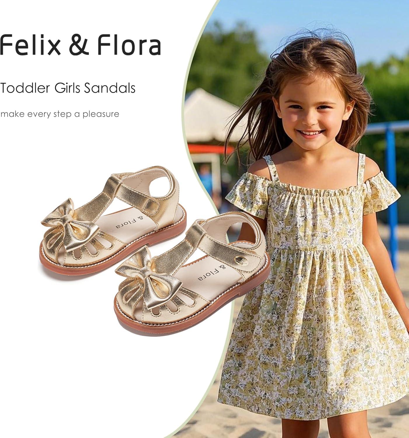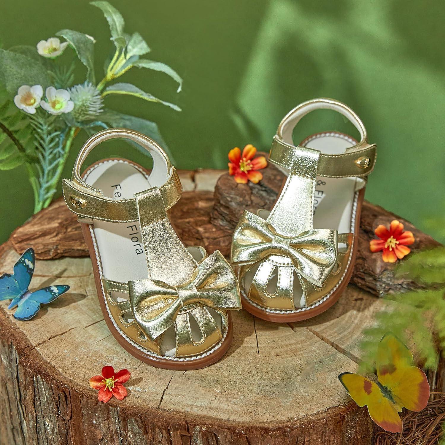 Felix & Flora Toddler Girls Sandals Soft Rubber Princess Flat Shoes Summer Flower Girl Shoes(Bc327-gold)
