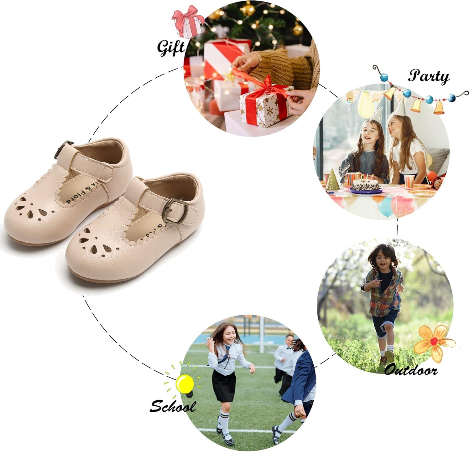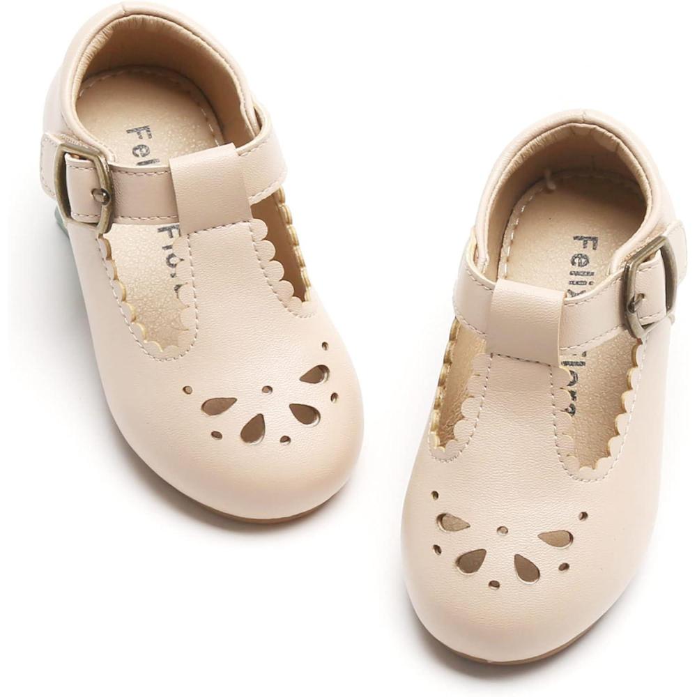 Felix & Flora Toddler Little Girl Flat Oxfords Dress Shoes – Mary Jane Princess for Girl Party School Shoes.(B396-nude)