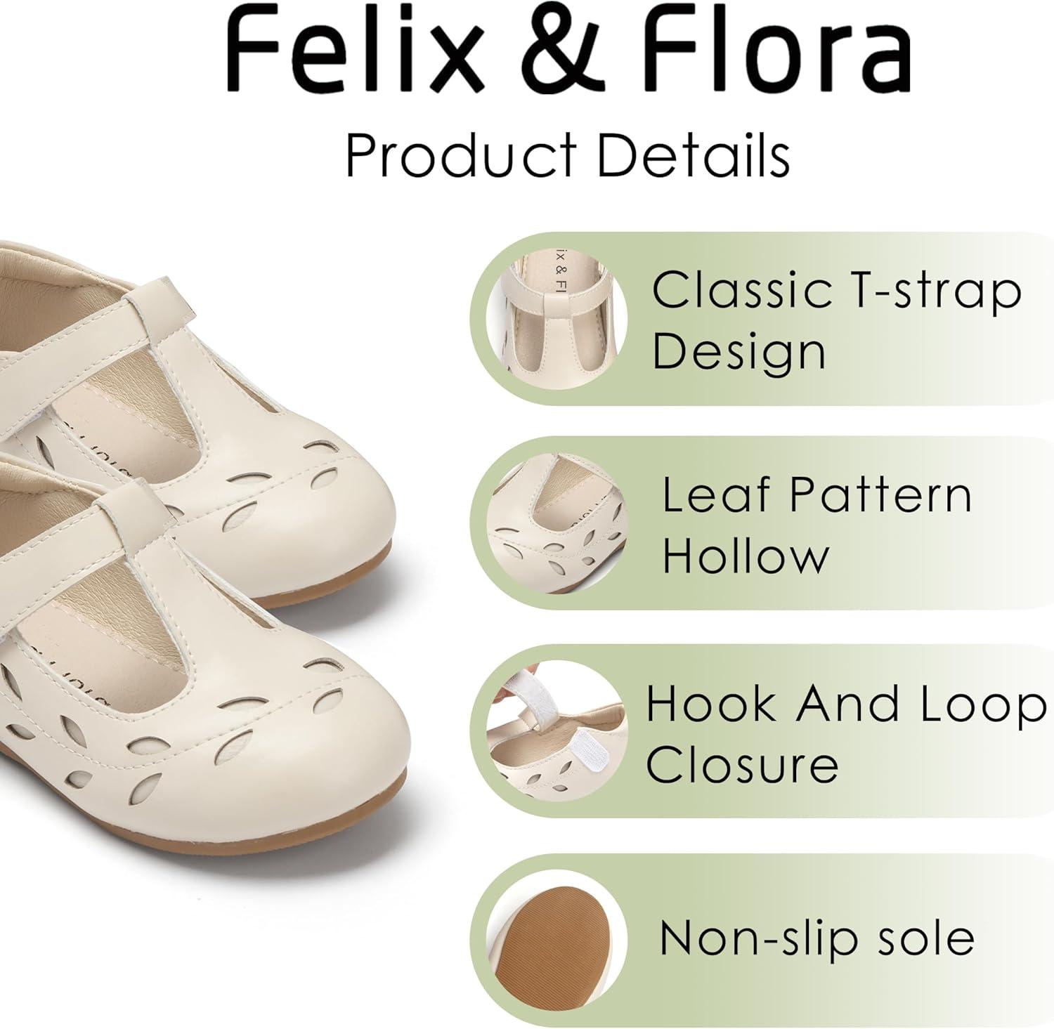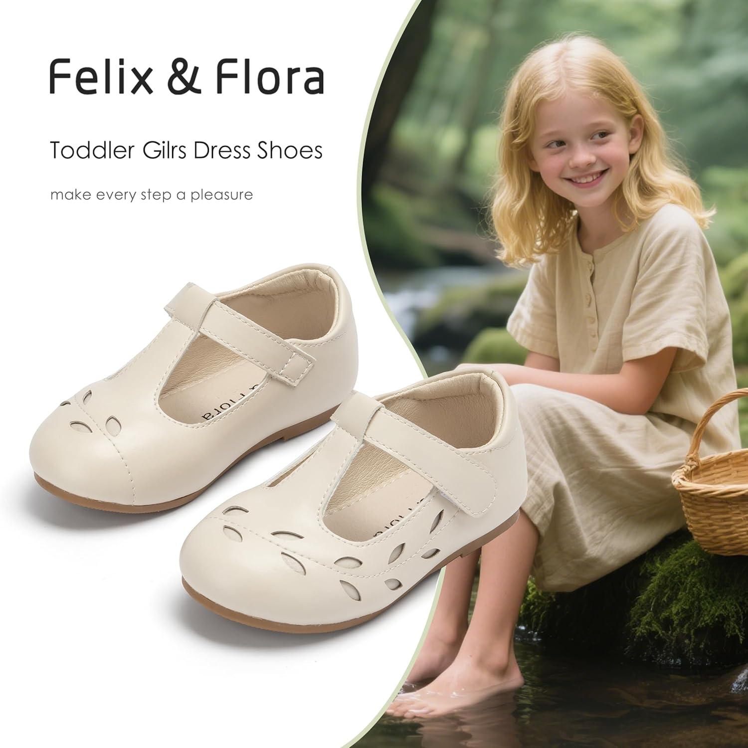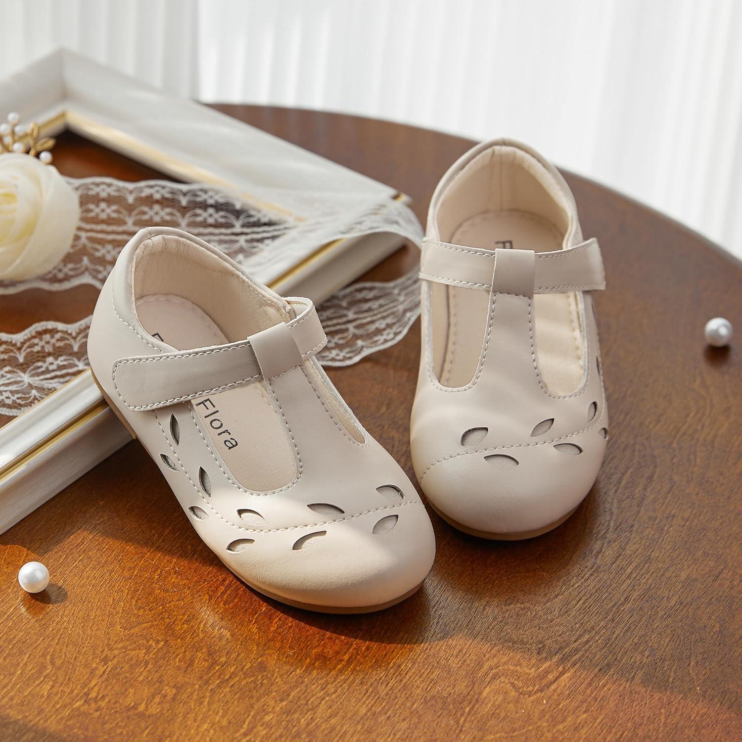 Felix & Flora Toddler Little Girl Flat Oxfords Dress Shoes – Mary Jane Princess for Girl Party School Shoes.(B414-beige)
