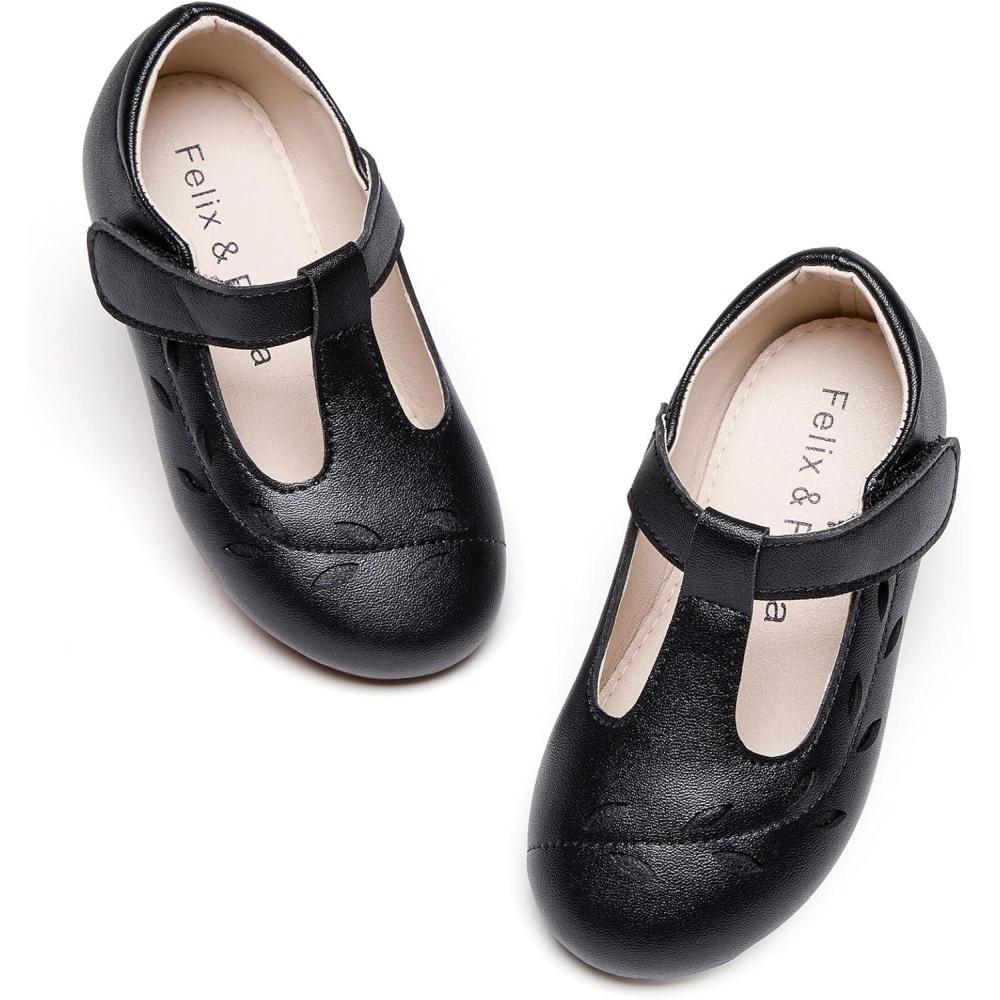 Felix & Flora Toddler Little Girl Flat Oxfords Dress Shoes – Mary Jane Princess for Girl Party School Shoes.(B414-black)