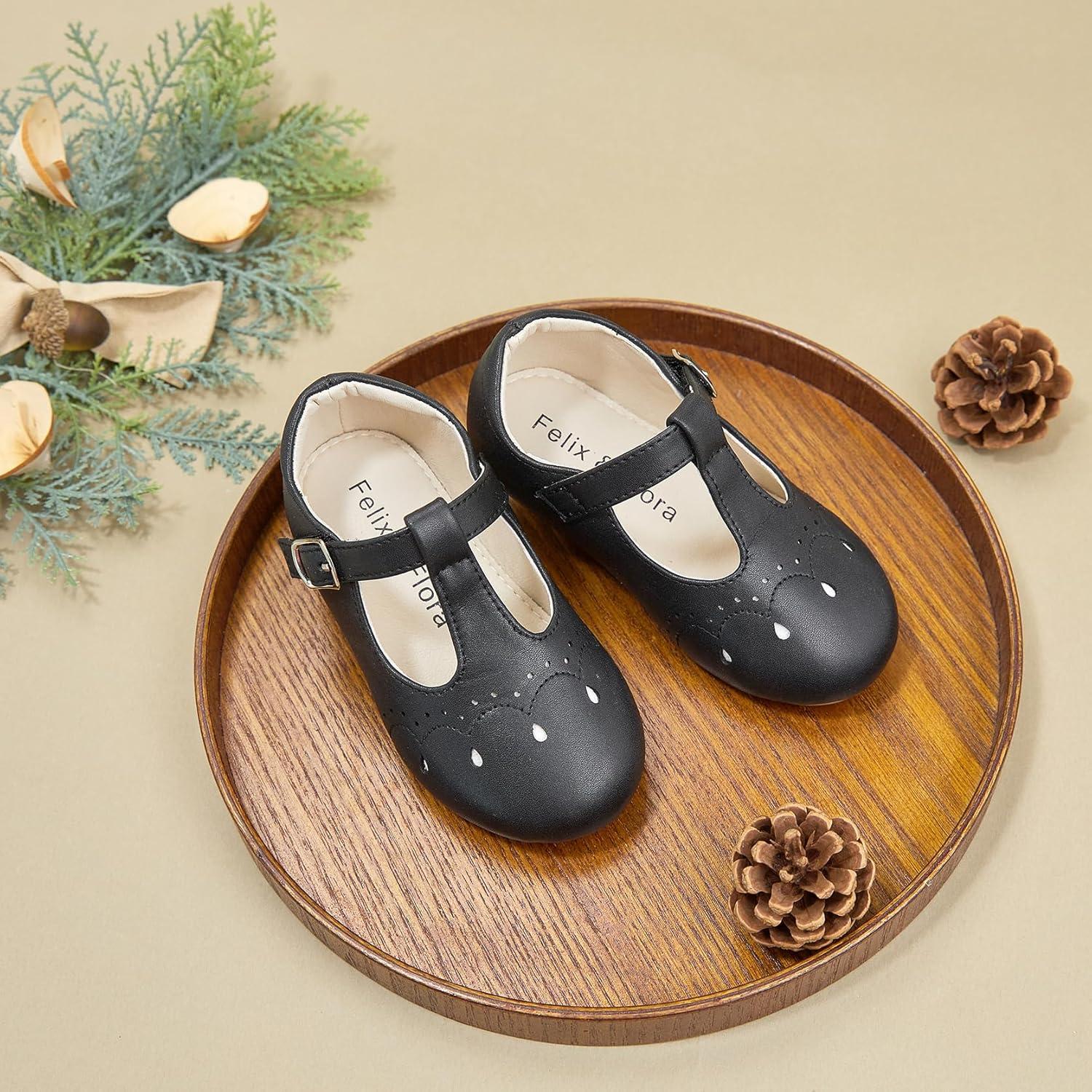 Felix & Flora Toddler Little Girl Flat Oxfords Dress Shoes – Mary Jane Princess for Girl Party School Shoes.(B415-black)